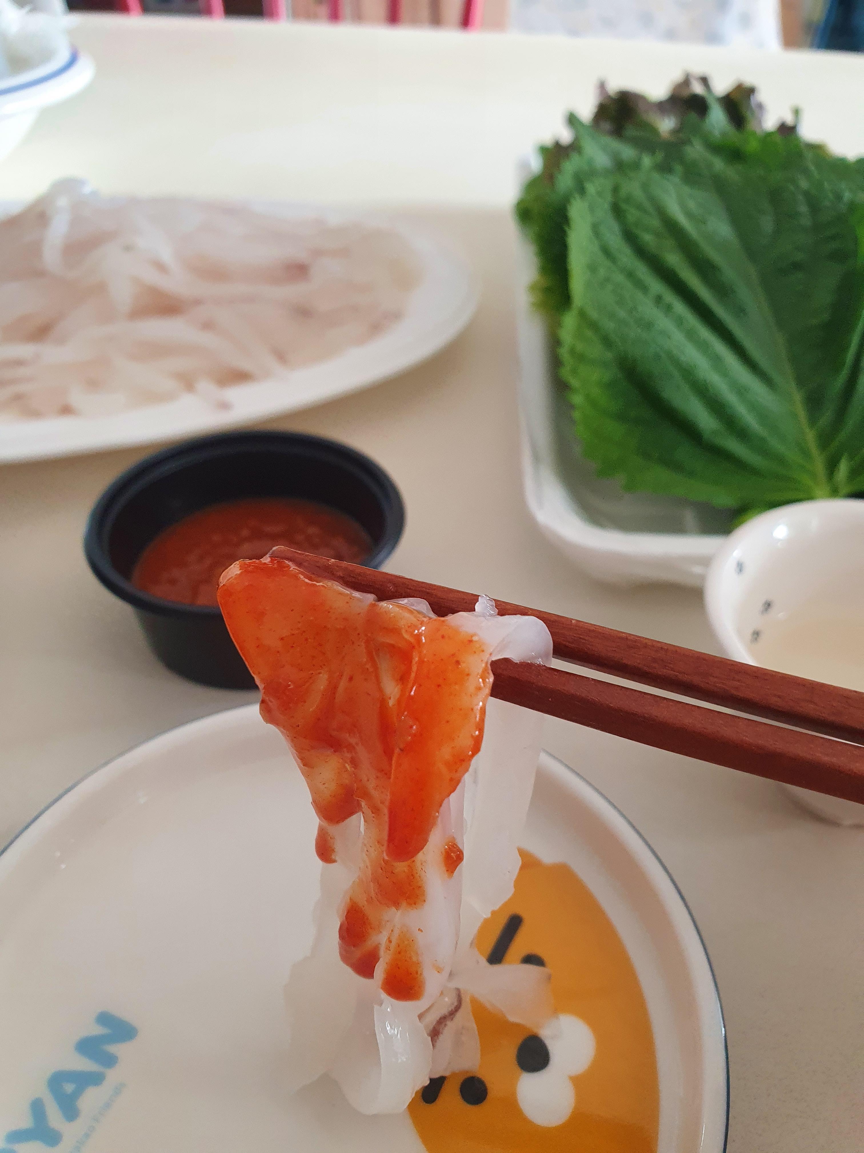 너무 얇지 않은 그 적정선으로 손질된 한치