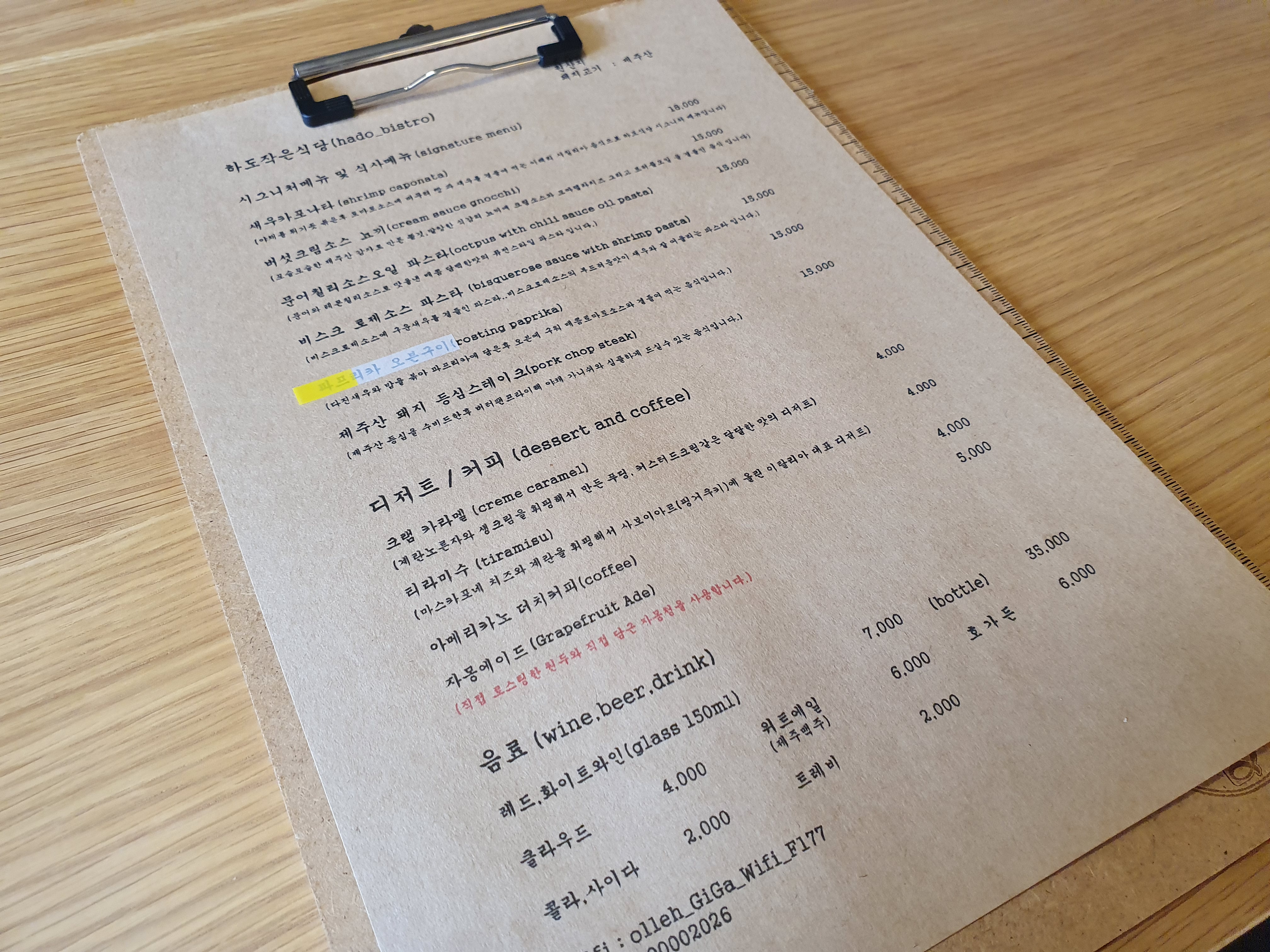 메뉴판에 나와있는 설명대로라면