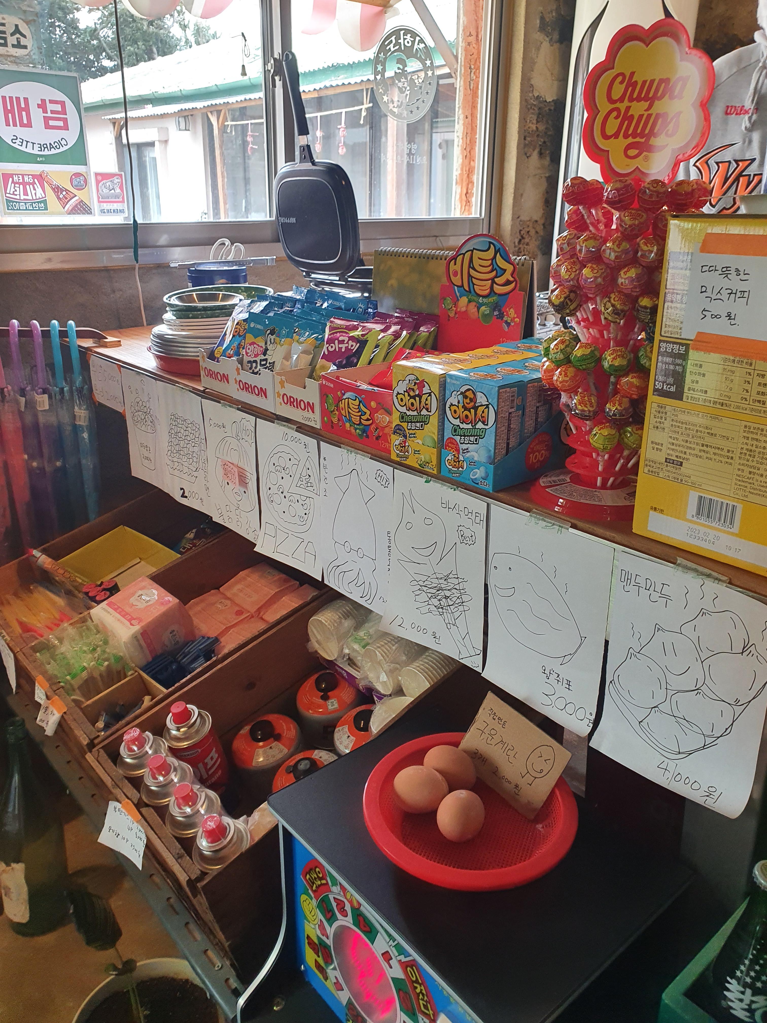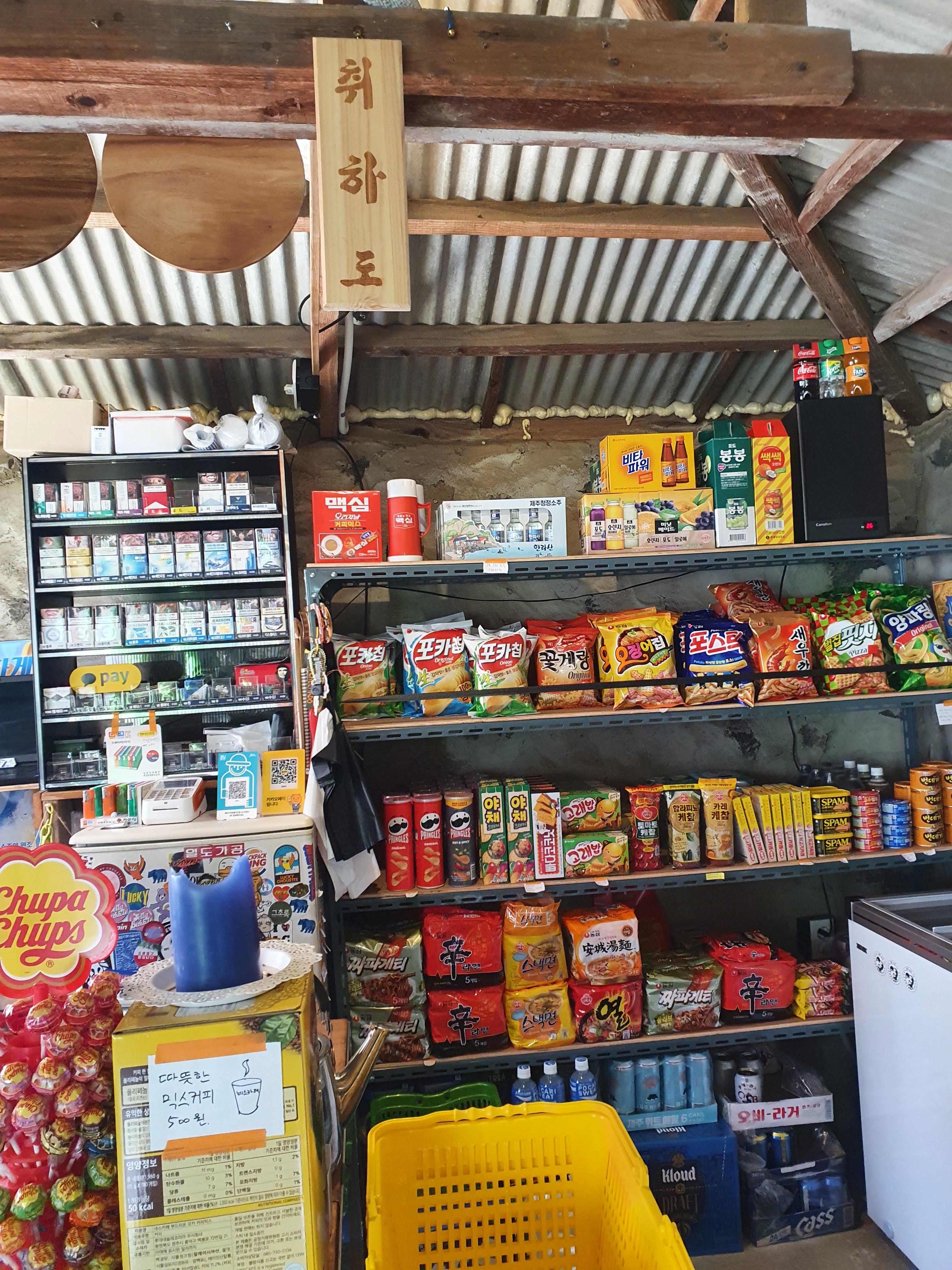 군것질 거리들이 진열되어있고