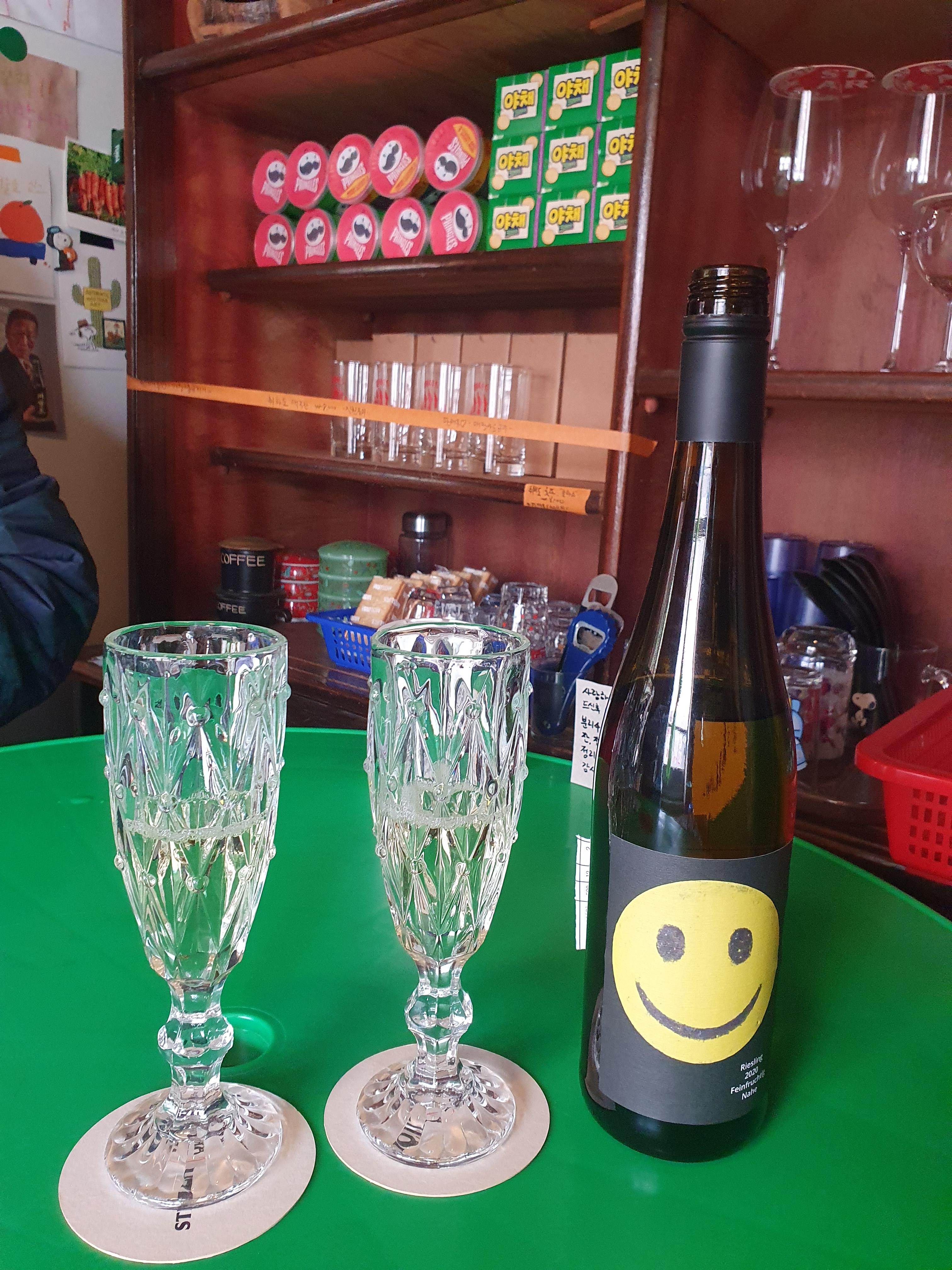 우리는 스마일 와인을 한병 주문했다.