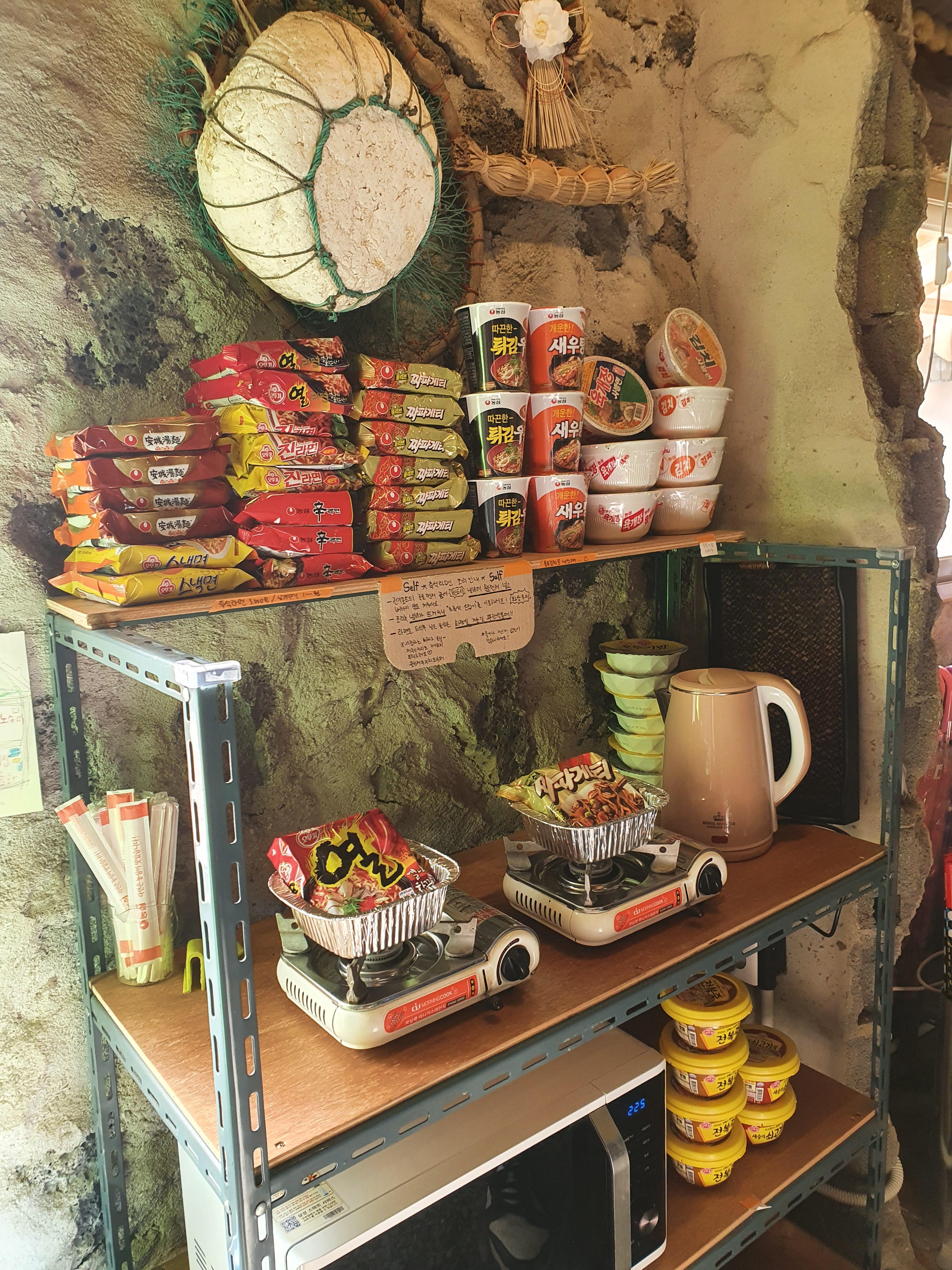 봉지라면도 직접 조리해서 먹을 수 있다.