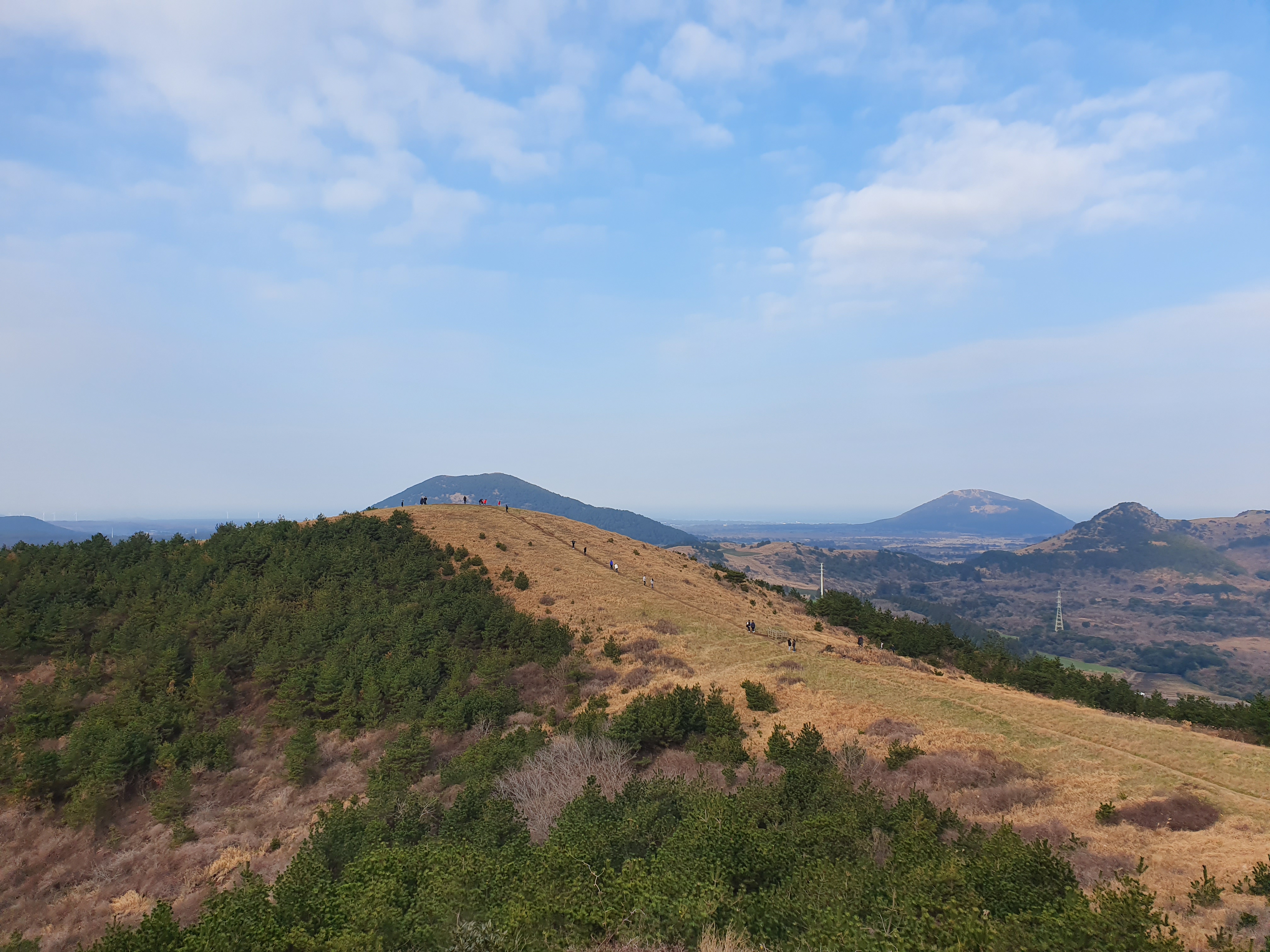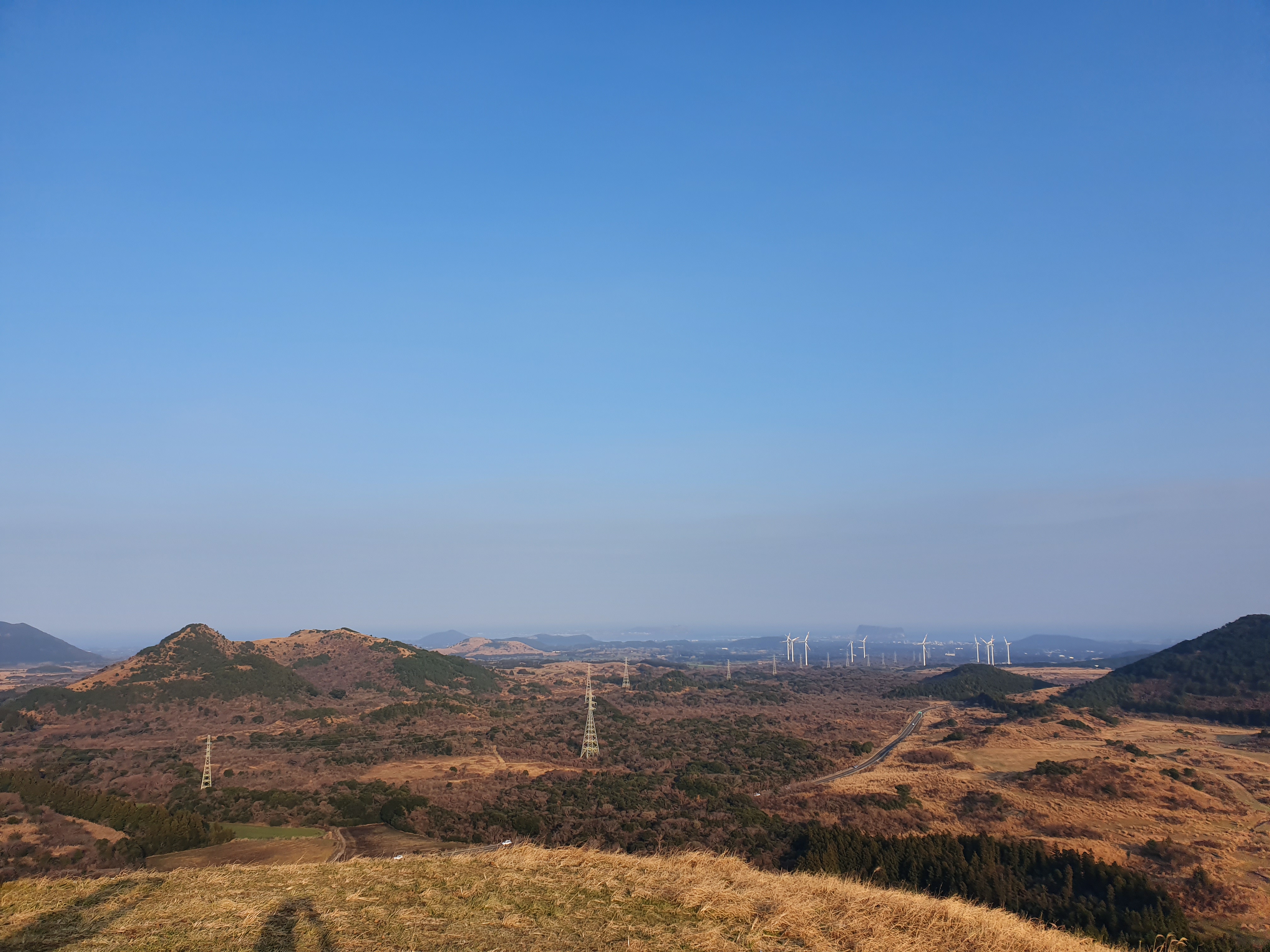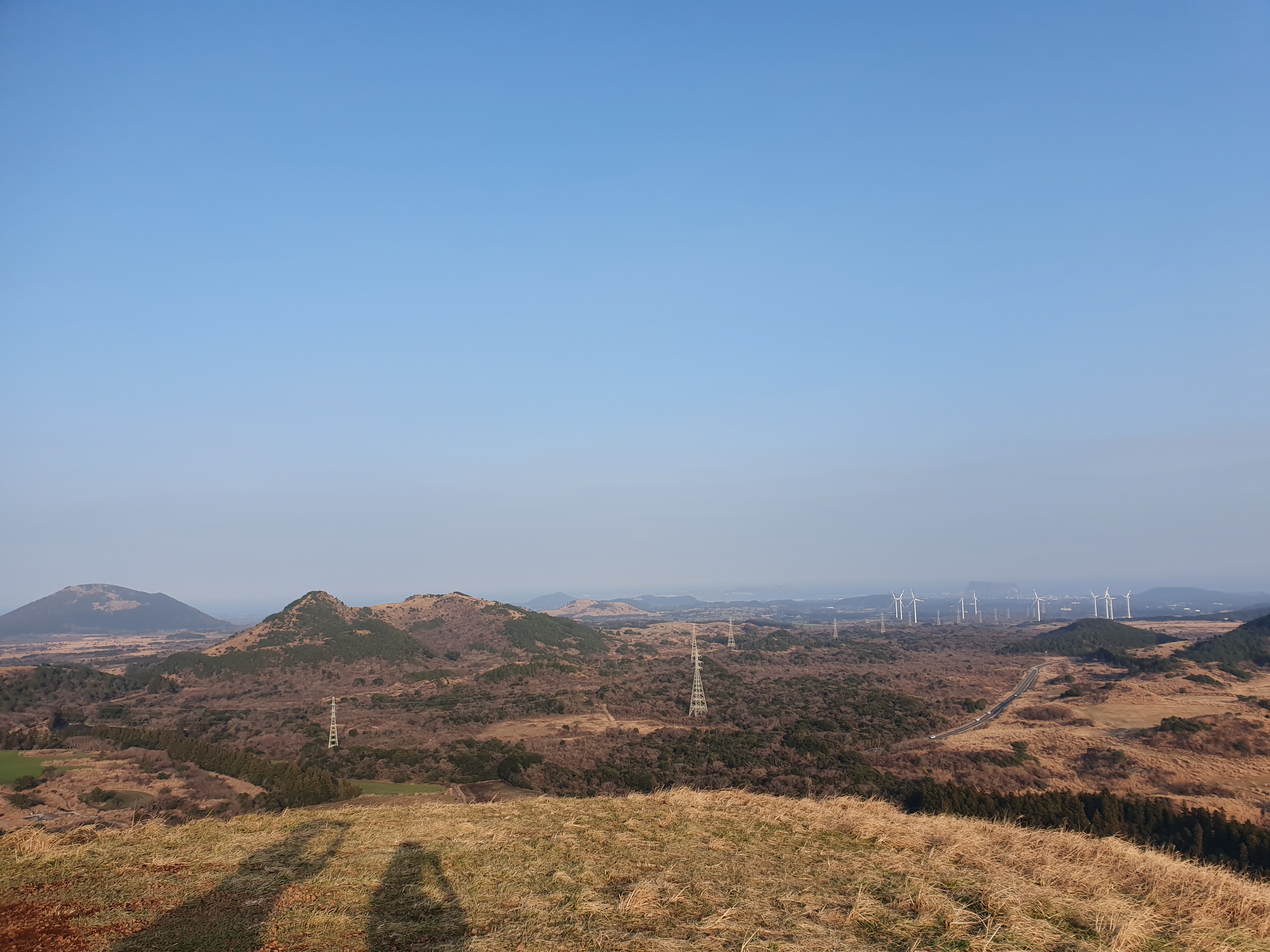 오름 꼭대기에 올라 내려다본