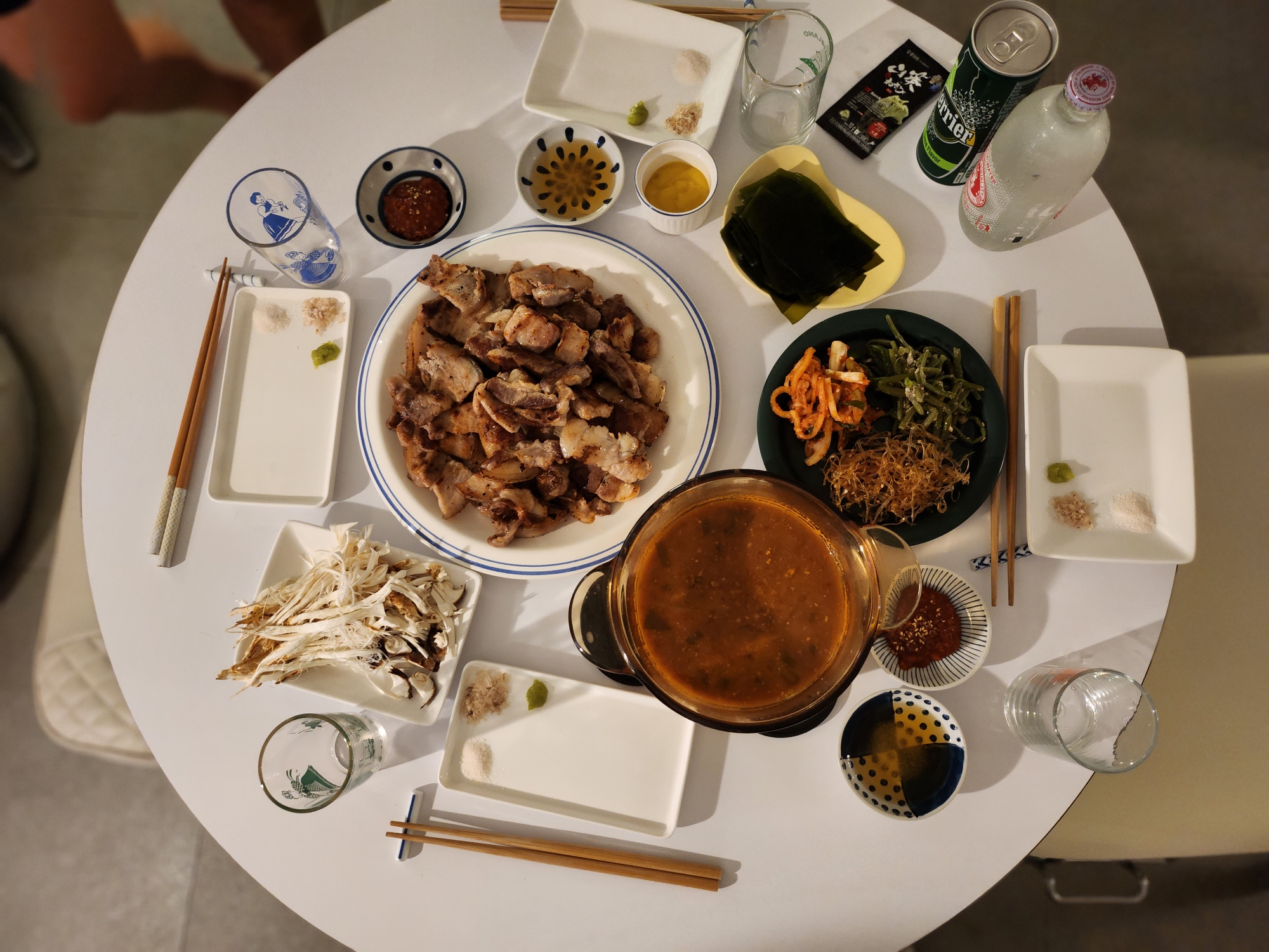 찌개와 말돈 소금까지 세팅해서