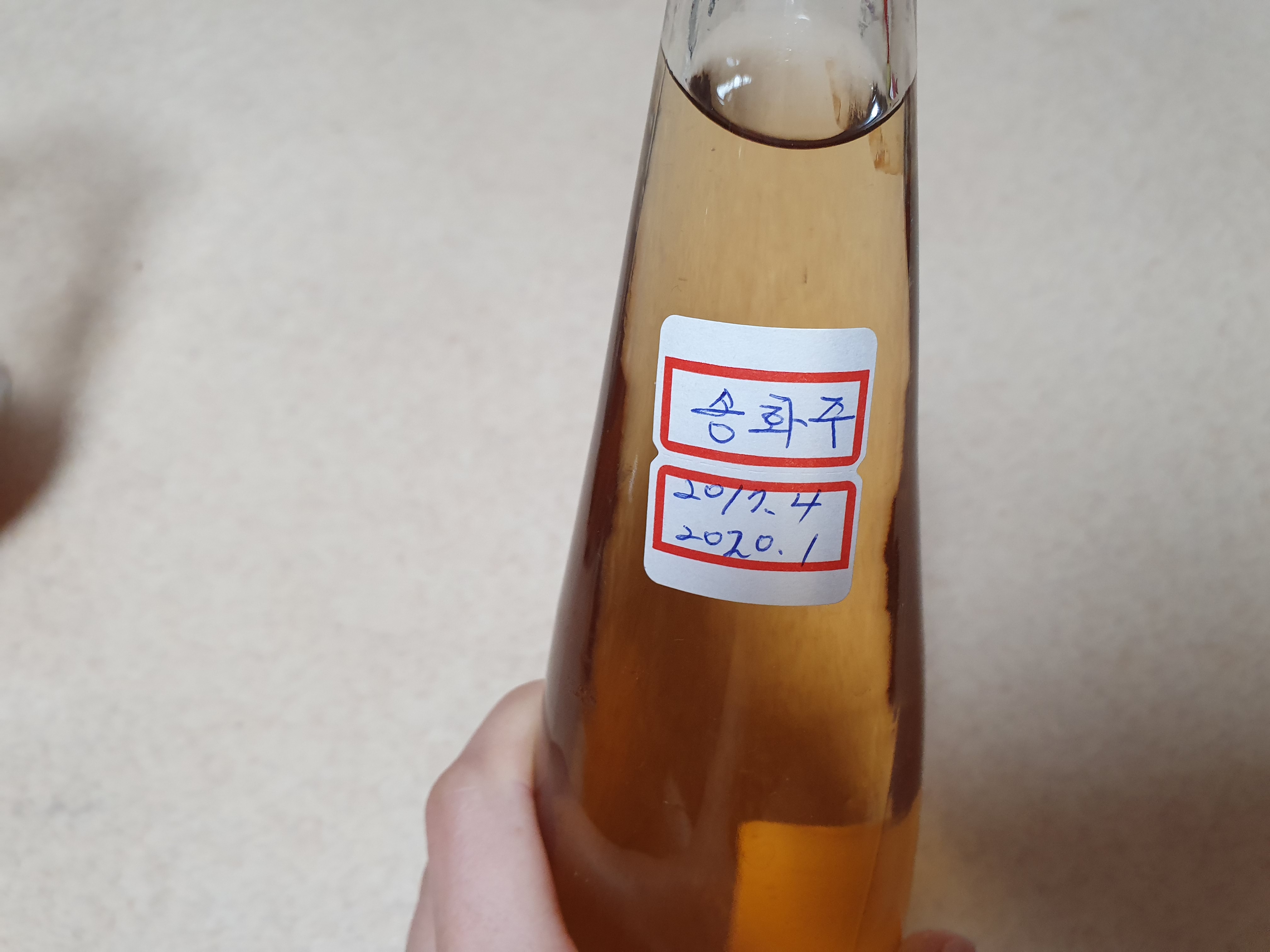 엄마가 직점 담근 송화주를 한병 챙겨주셨다