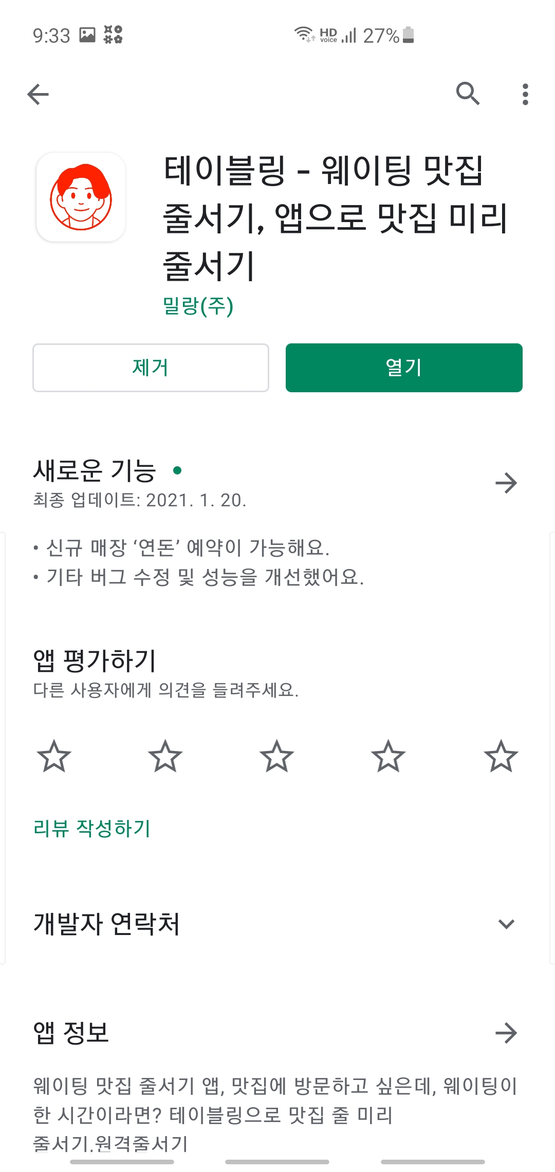 테이블링 앱을 통해 익일(다음날) 이용분에 대해