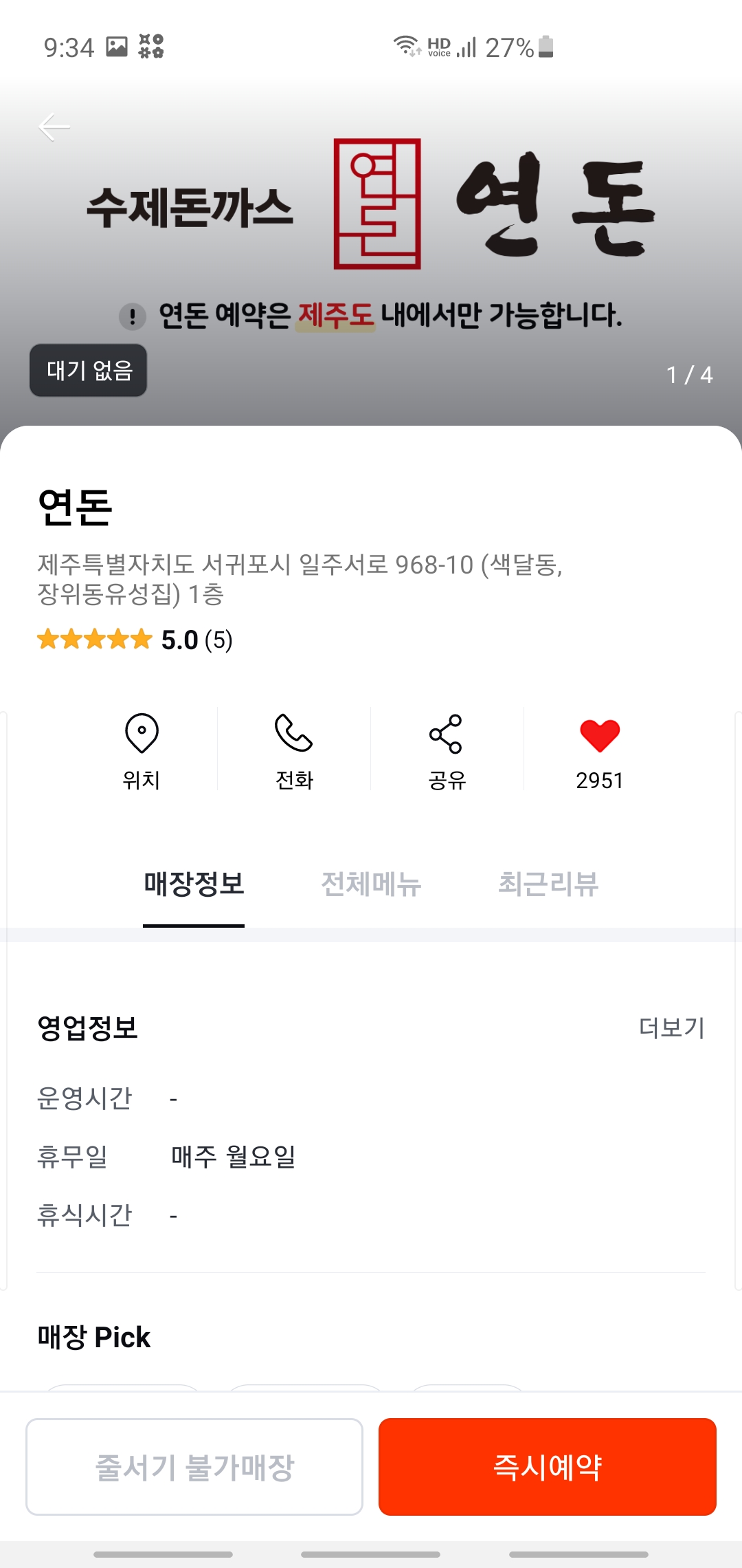 연돈예약은 제주도 내에서만 가능하다는 점!!!