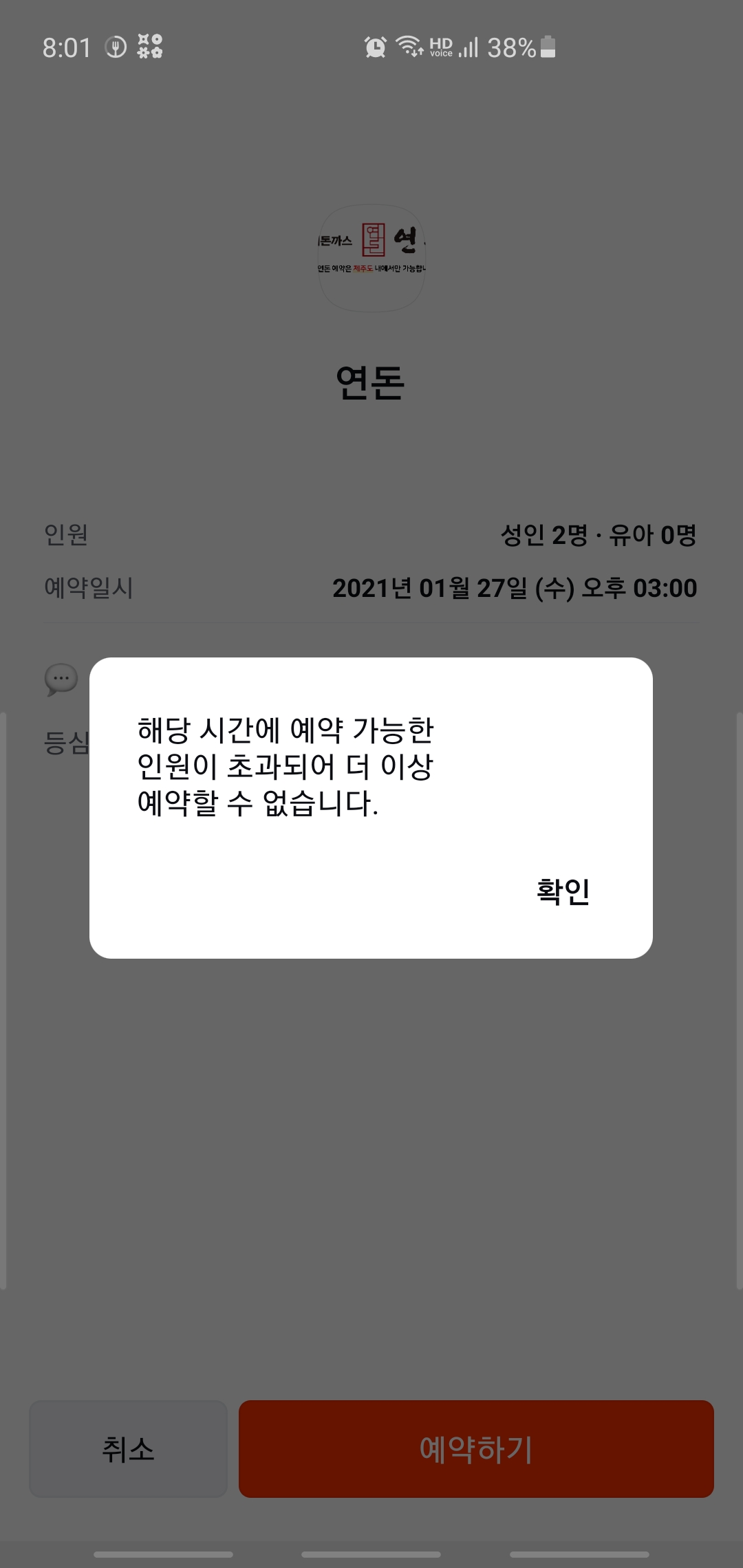 내일 연돈을 가려는 사람들만 예약이 가능하다는 것이다.