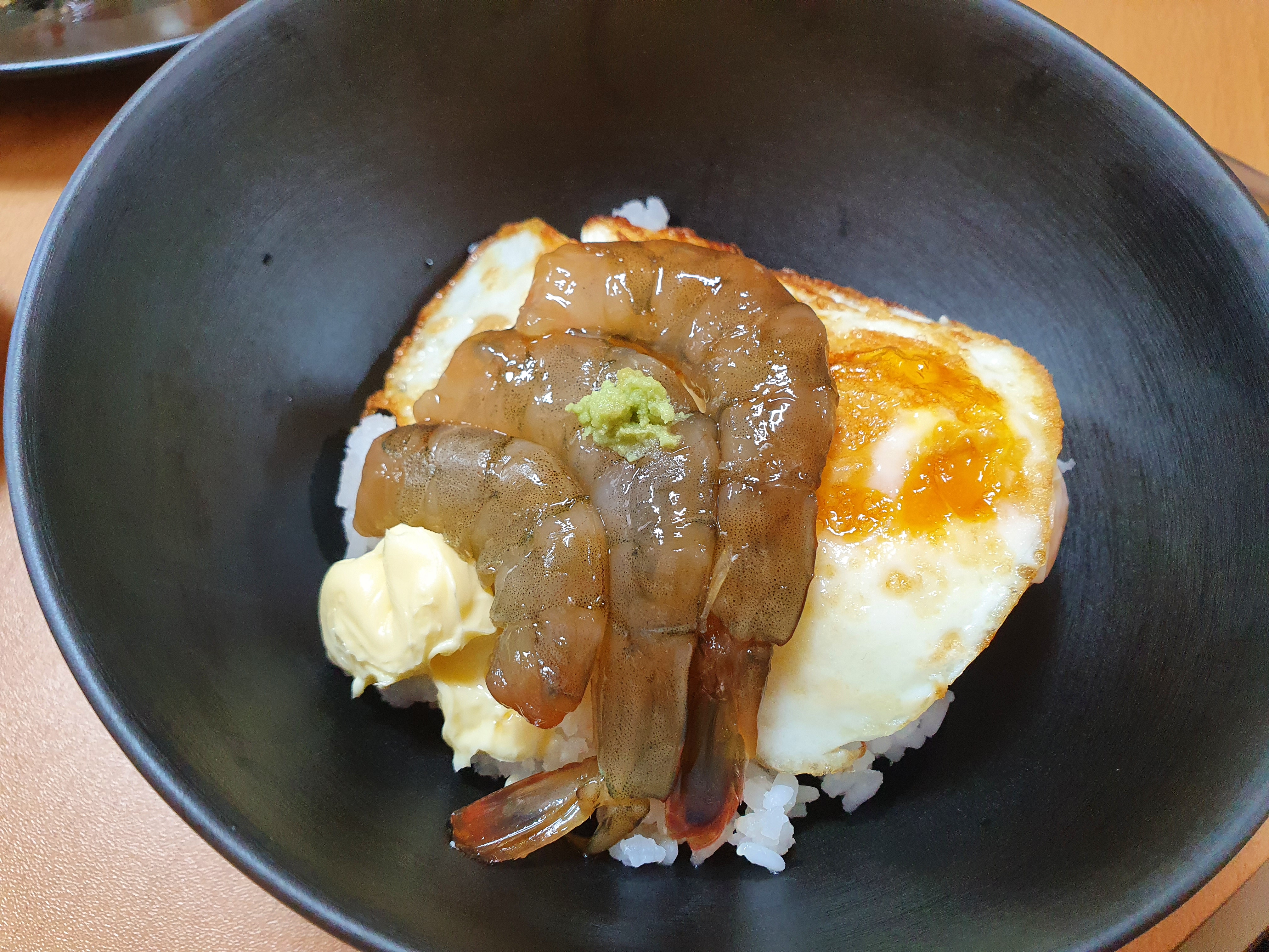 따끈한 밥에 버터와 새우장, 계란후라이를 넣고