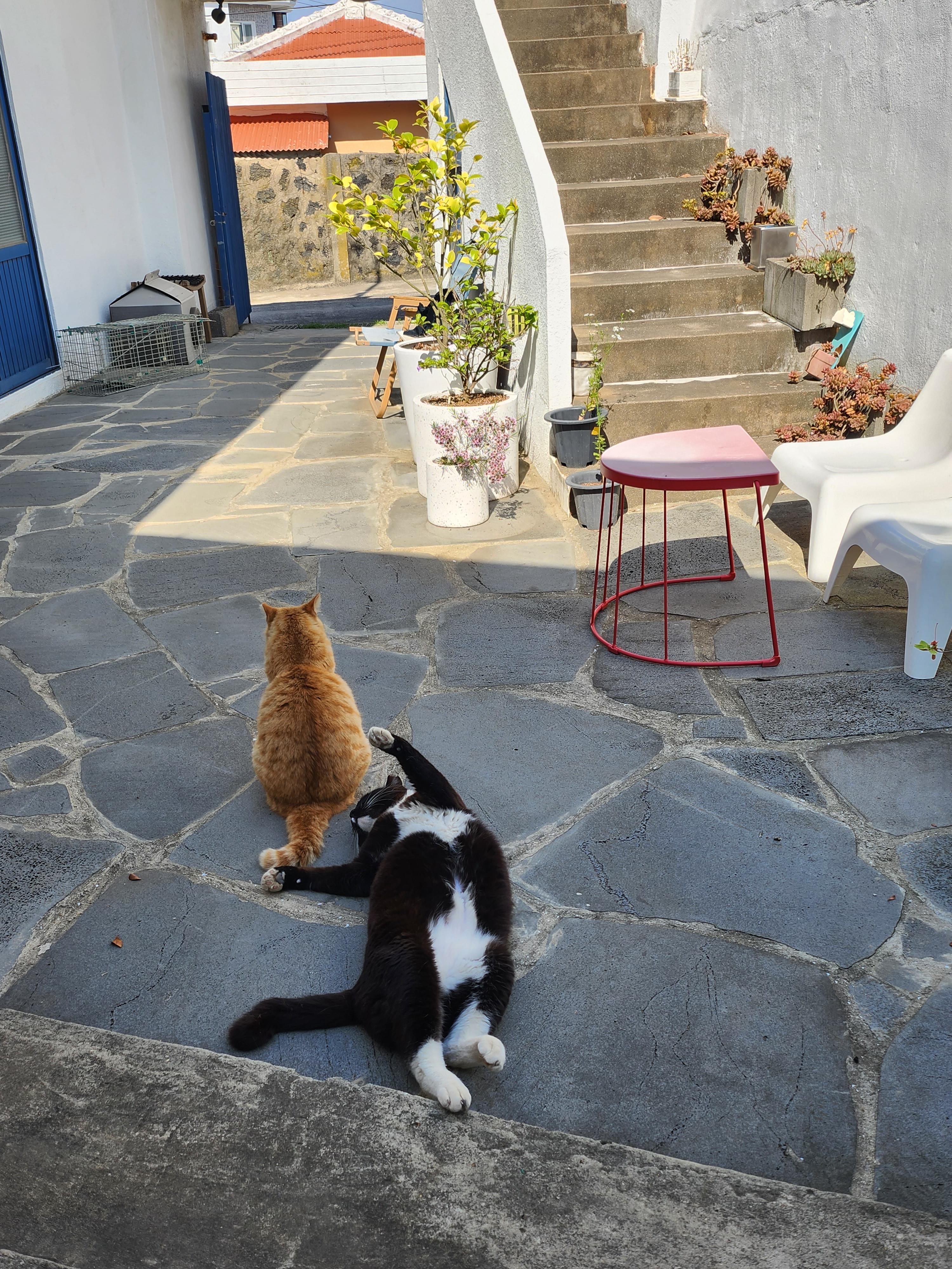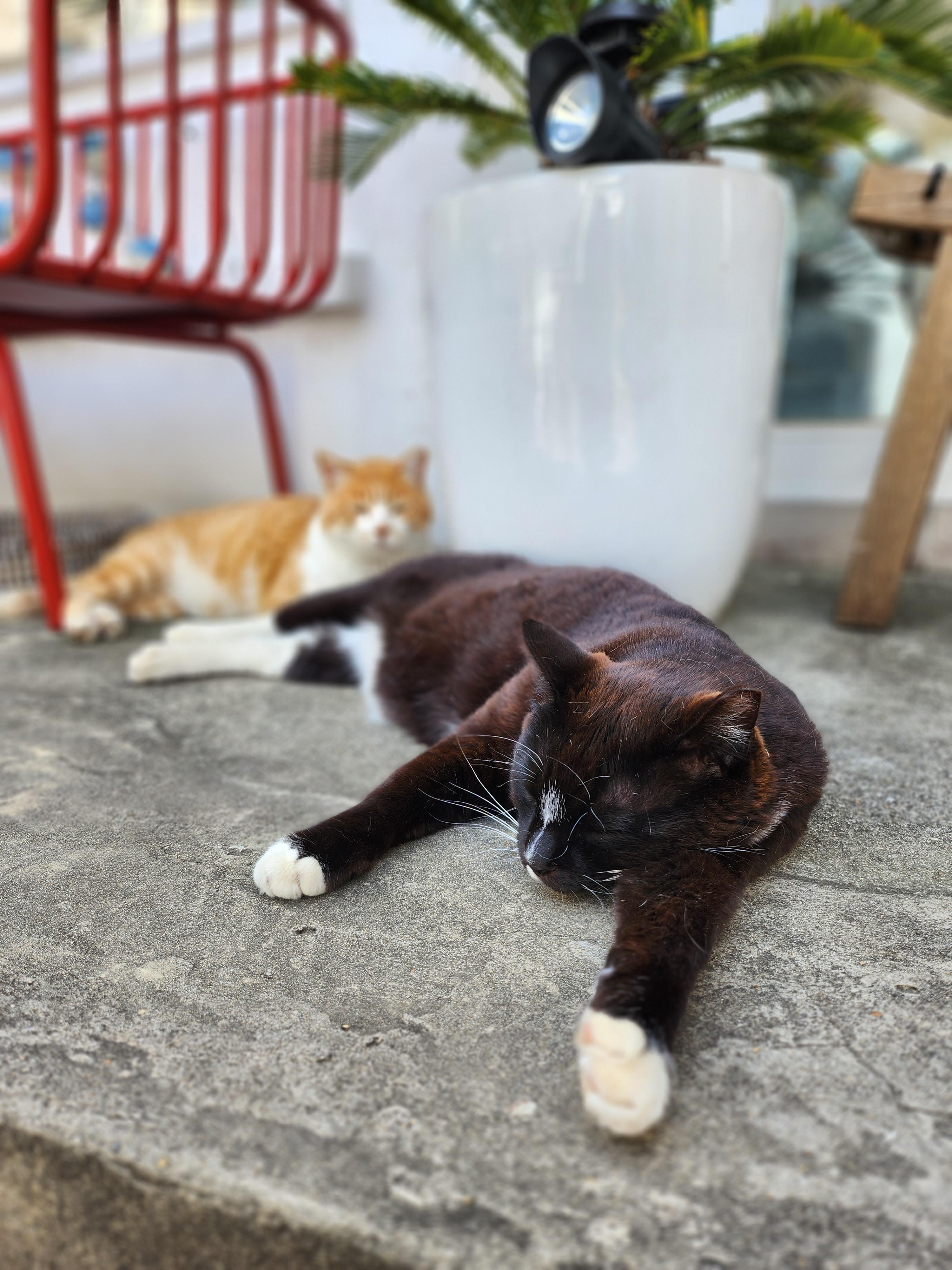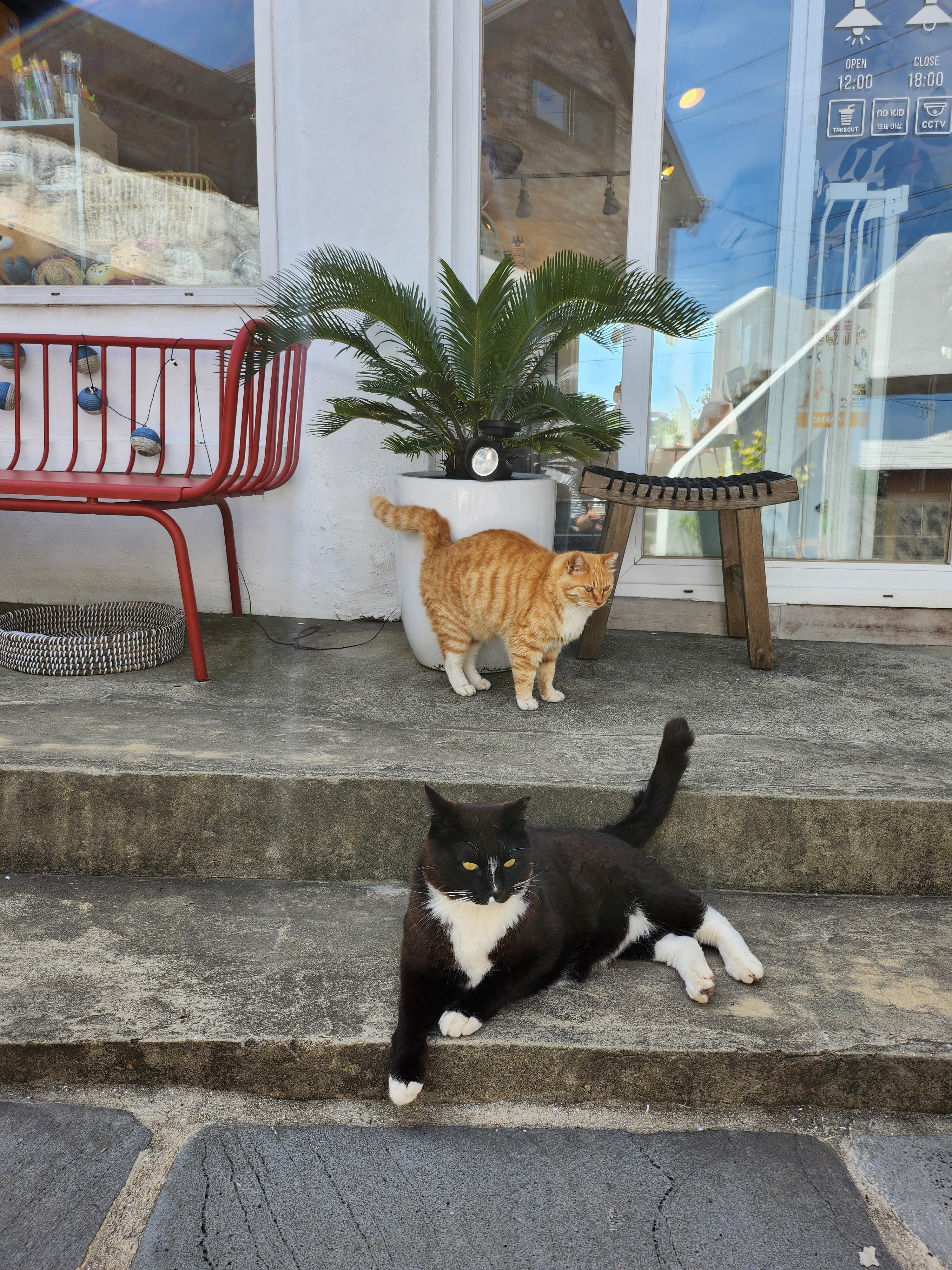 파란 대문을 지나 안으로 들어가면 귀여운 고양이들이 반겨준다. 편안한 모습으로 누워있는게 손님을 한두번 맞이해본 솜씨가 아니다.