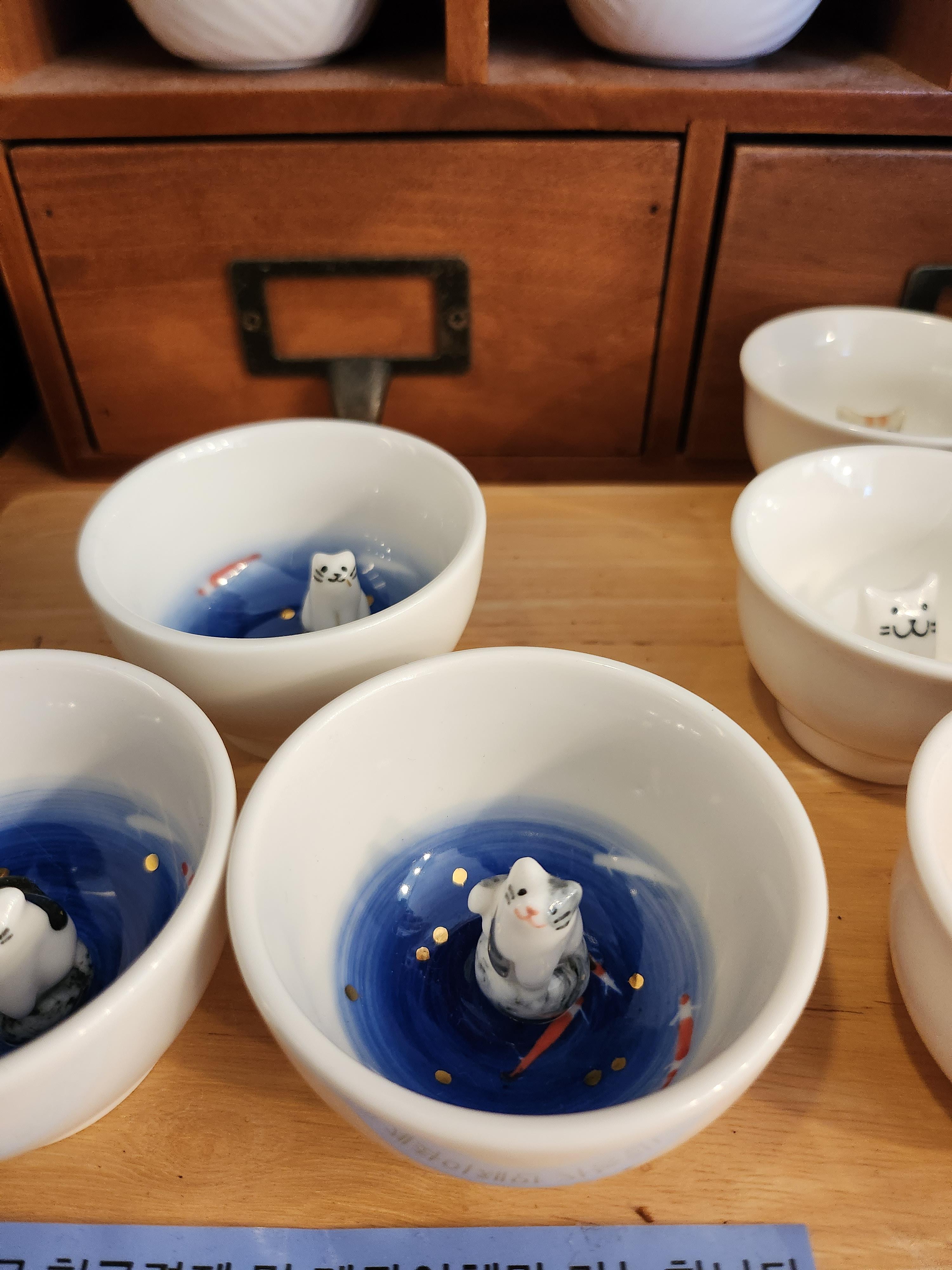 고양이 도자기 술잔과 고양이 도자기 피규어는 도예가분이 직접 만드는 제품이다.