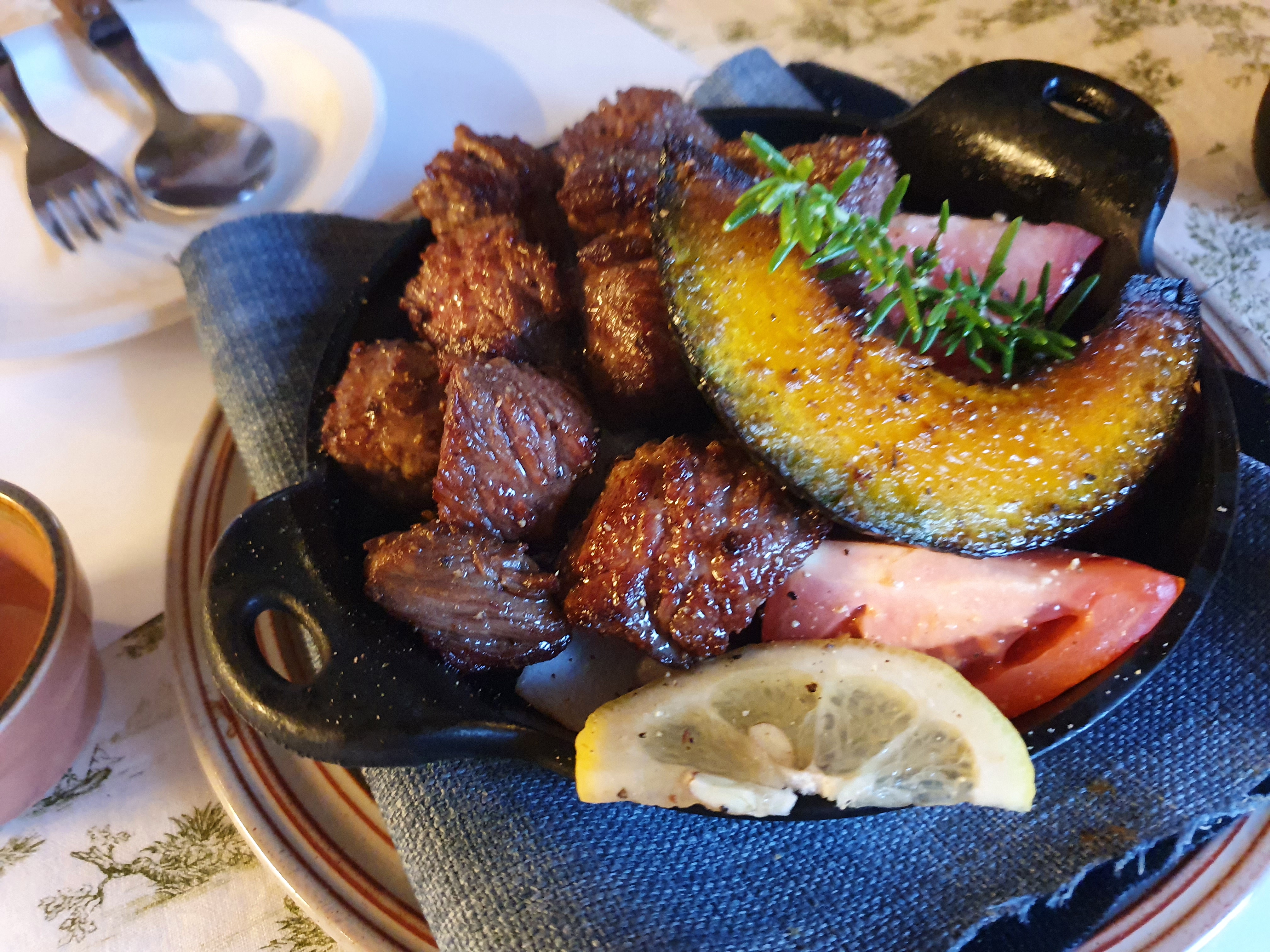 먼저 주문한 큐브 스테이크가 나왔다