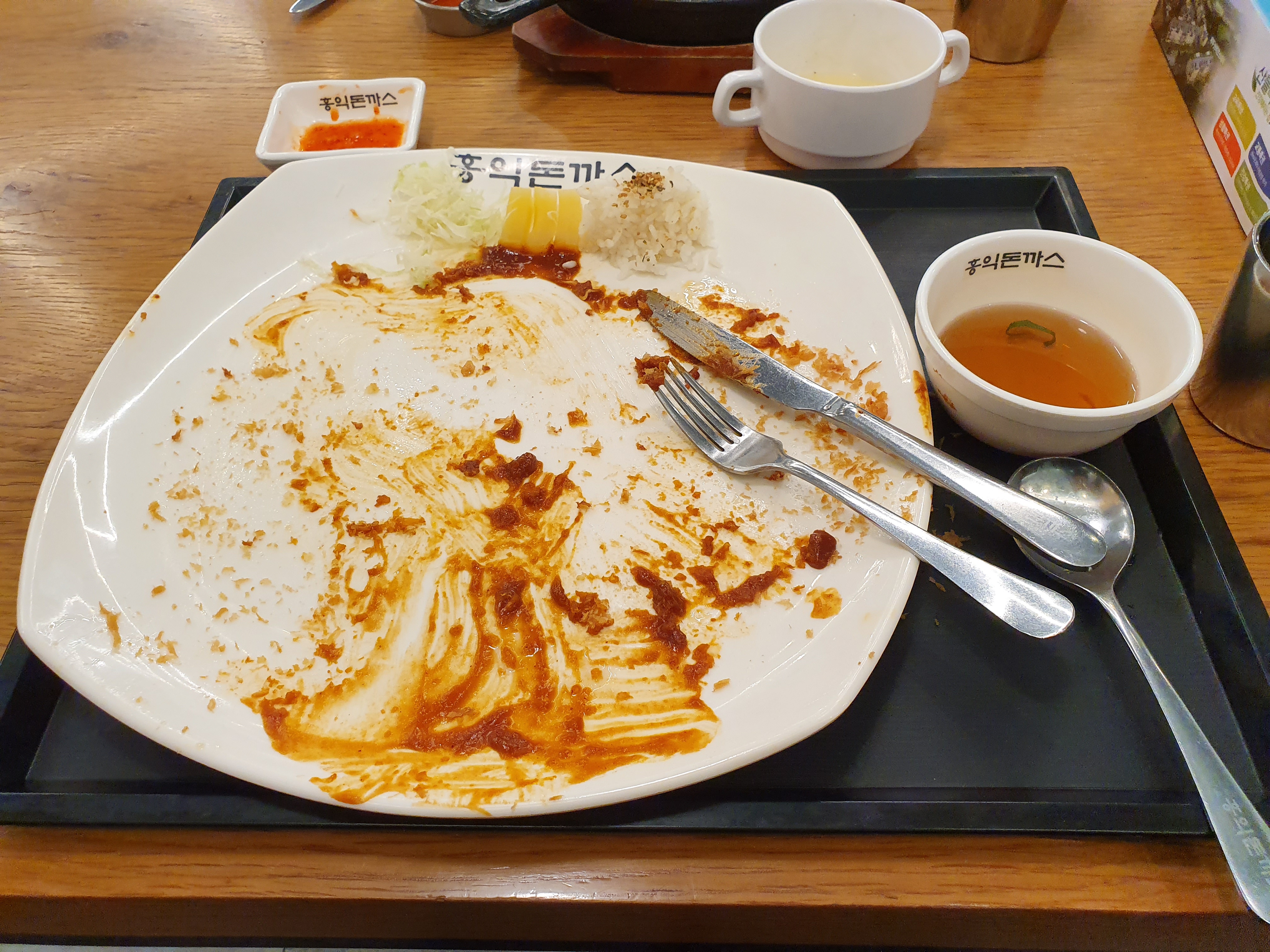 돈까스에서 냄새가 나지 않았다