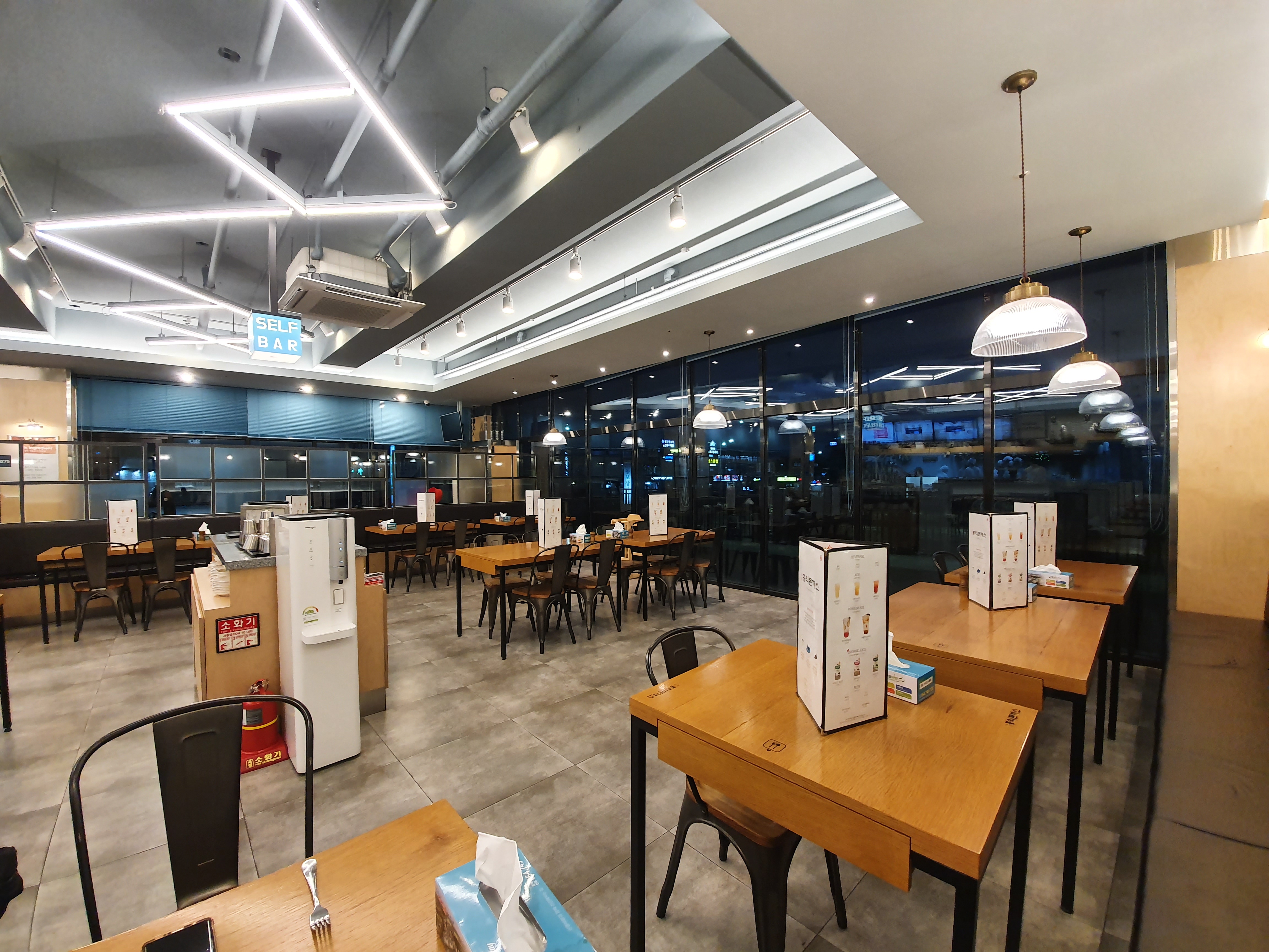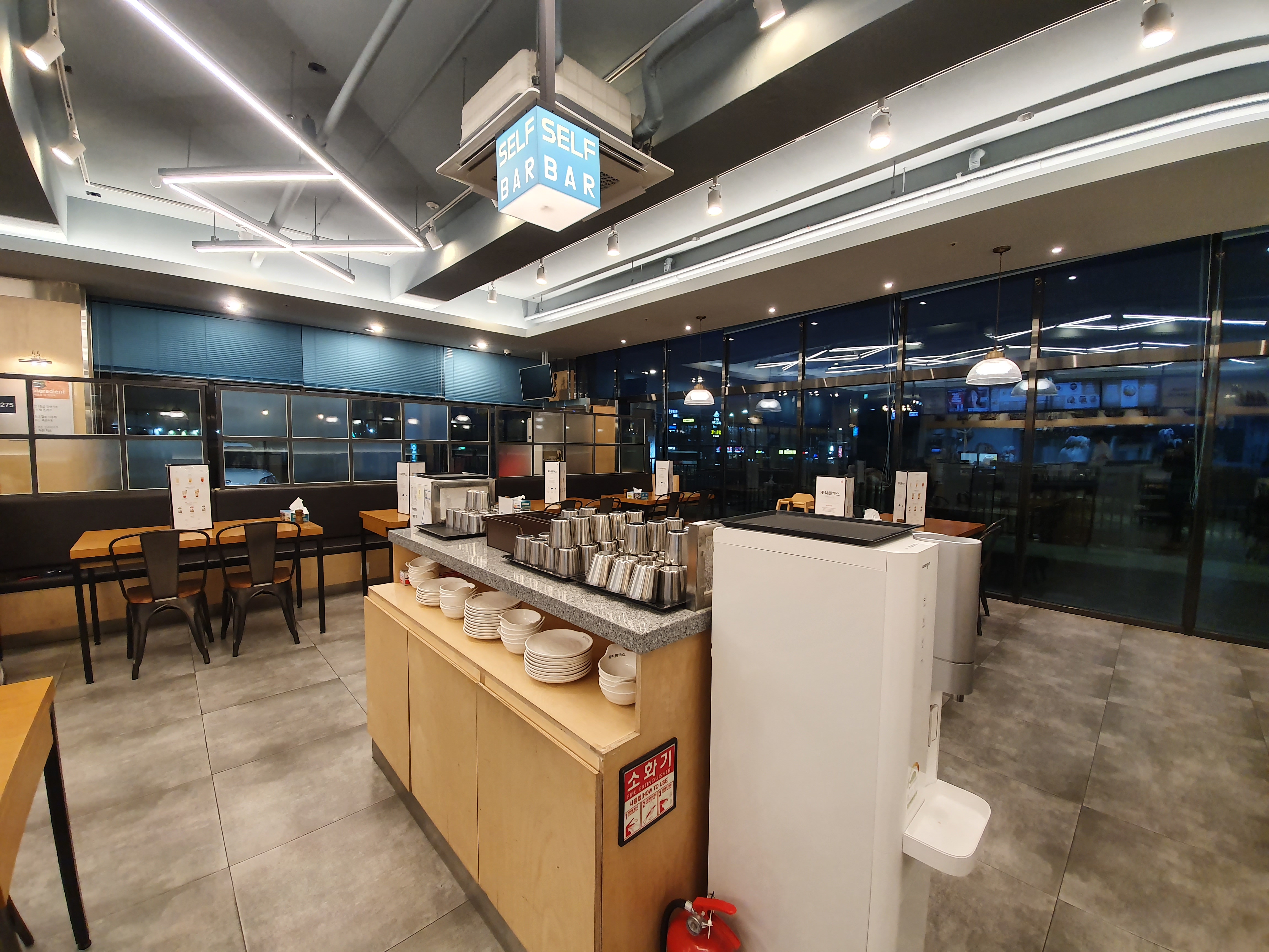 셀프바엔 식기와 물컵등이 있었고