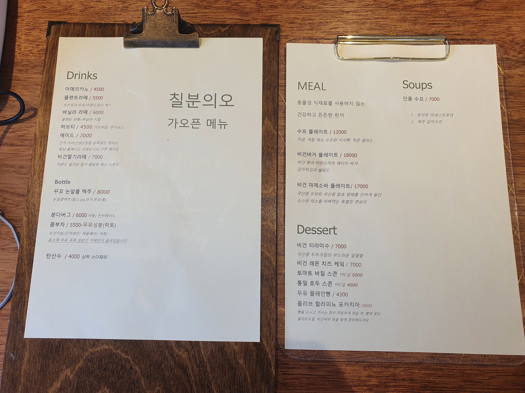 종달항에 있던 채식 레스토랑 칠분의 오가