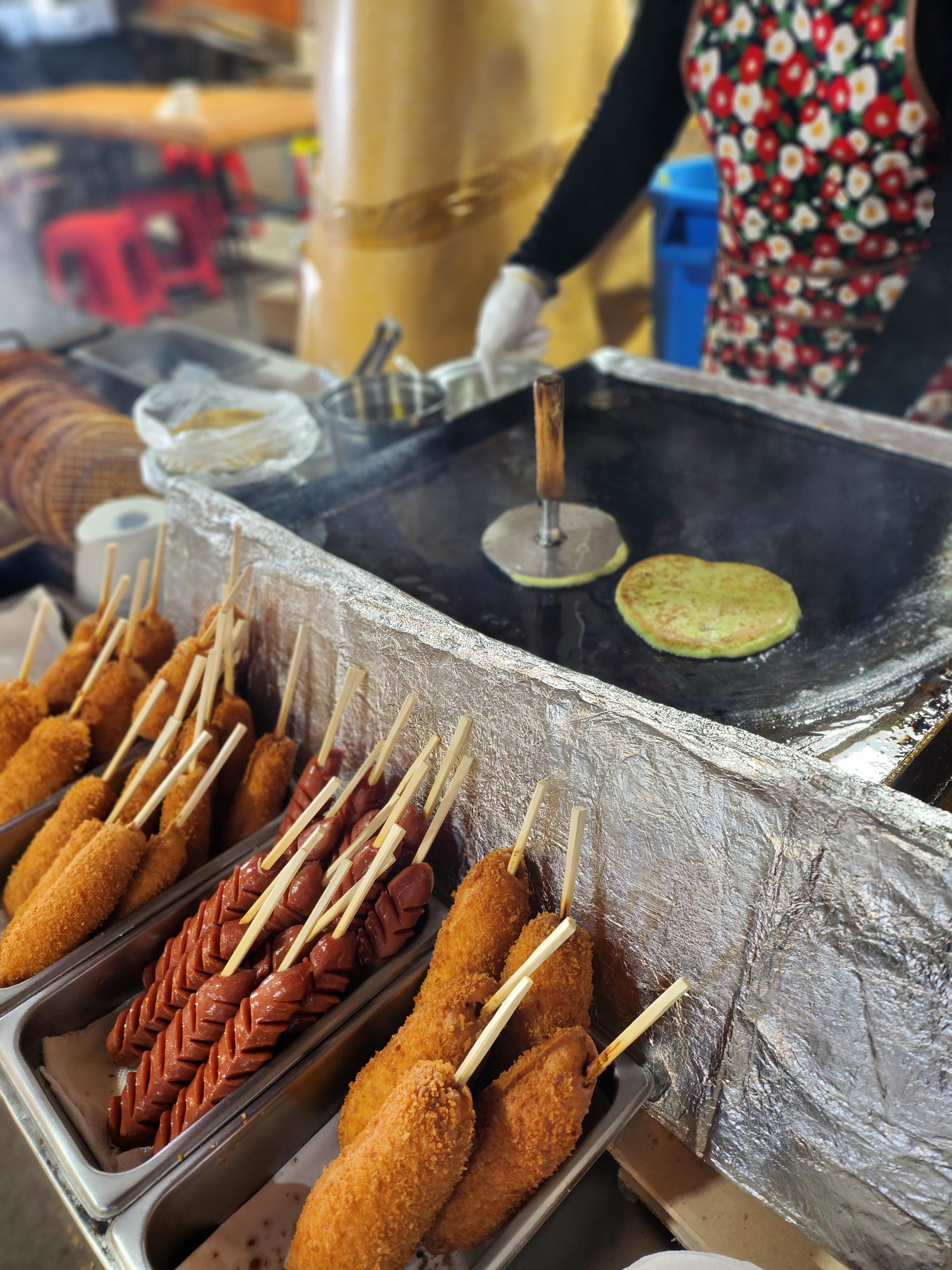 녹색을 띄는 이 집 호떡은 강하게 달군 철판에 기름을 두르고 빠르게 구워주시는데, 여태까지 쑥인줄만 알고 먹었던 것이 케일과 브로콜리로 색을 낸것이라고 한다.