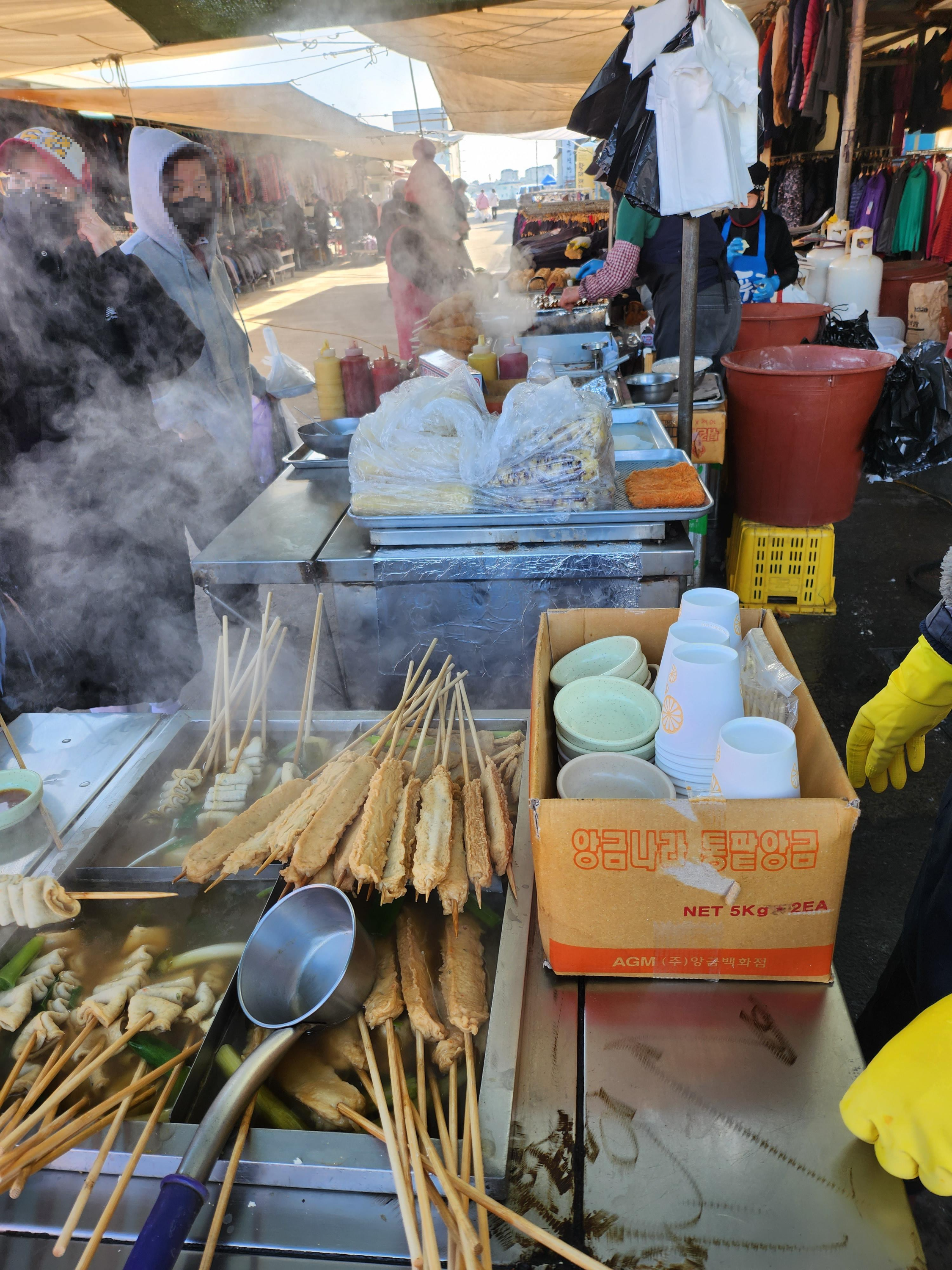 여기서 한명이 어묵을 먹고 있으면 지나가던 사람들이 하나둘 모여든다.