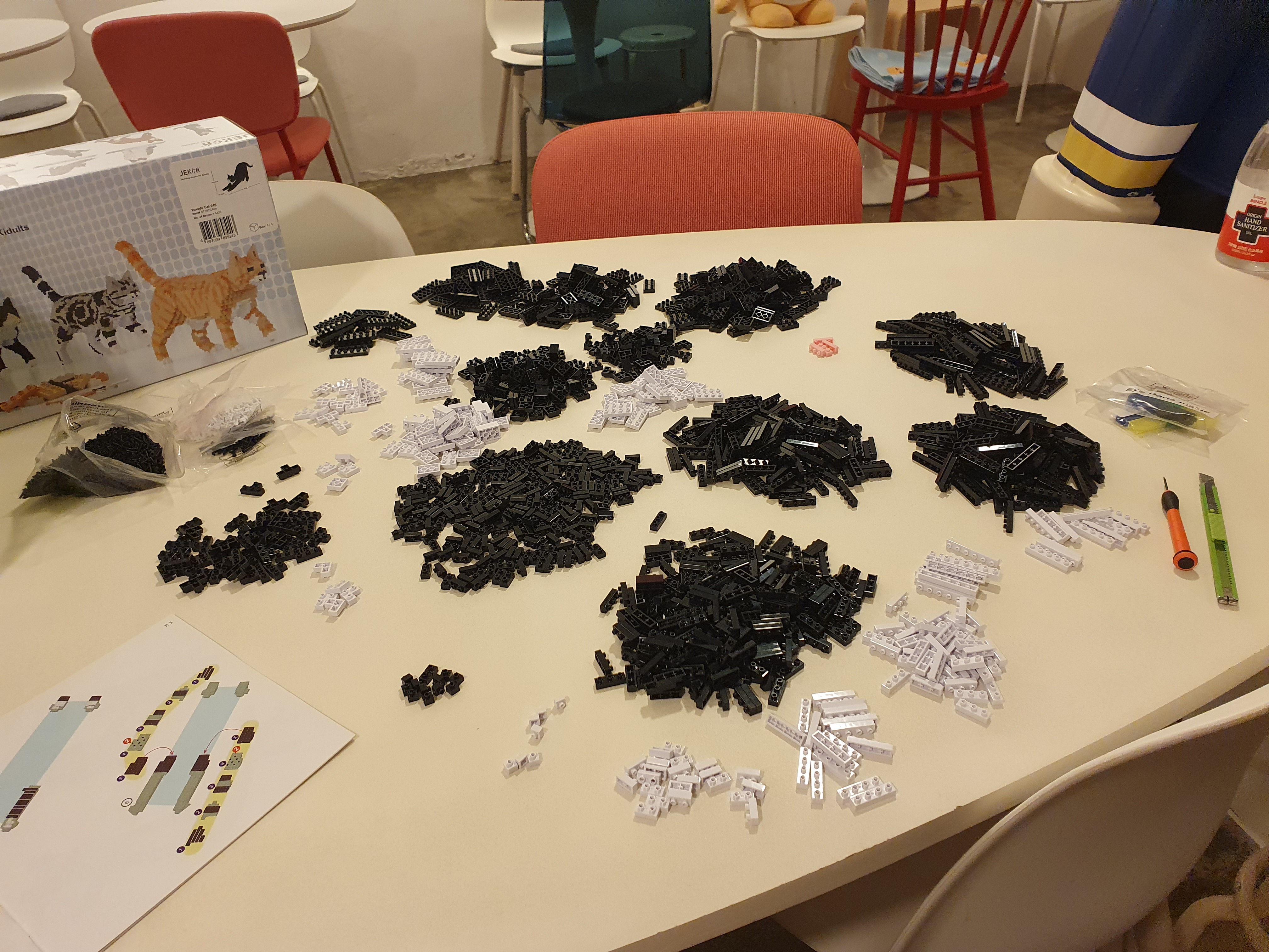 저 나사는 꼭 조립해야하는건가- 레고랑 차별화를 두려고 애쓴건가 싶었는데, 나사 덕분에 엄청 튼튼해져서 실수로 떨어뜨려도 쉽게 망가지지 않았다. 고양이가 발로 툭 쳐서 떨어뜨려도 레고처럼 분해되지 않아서 오히려 좋다.