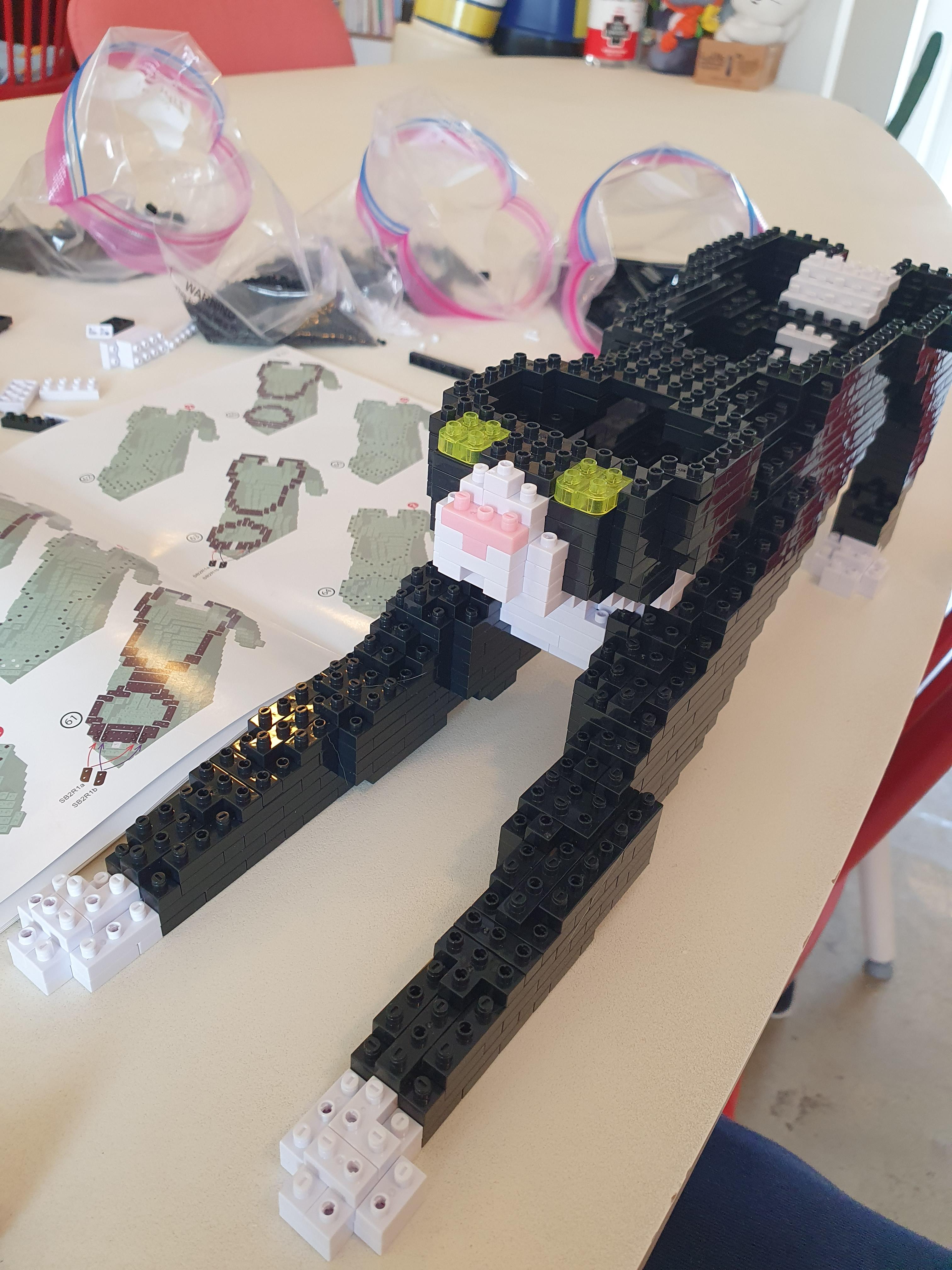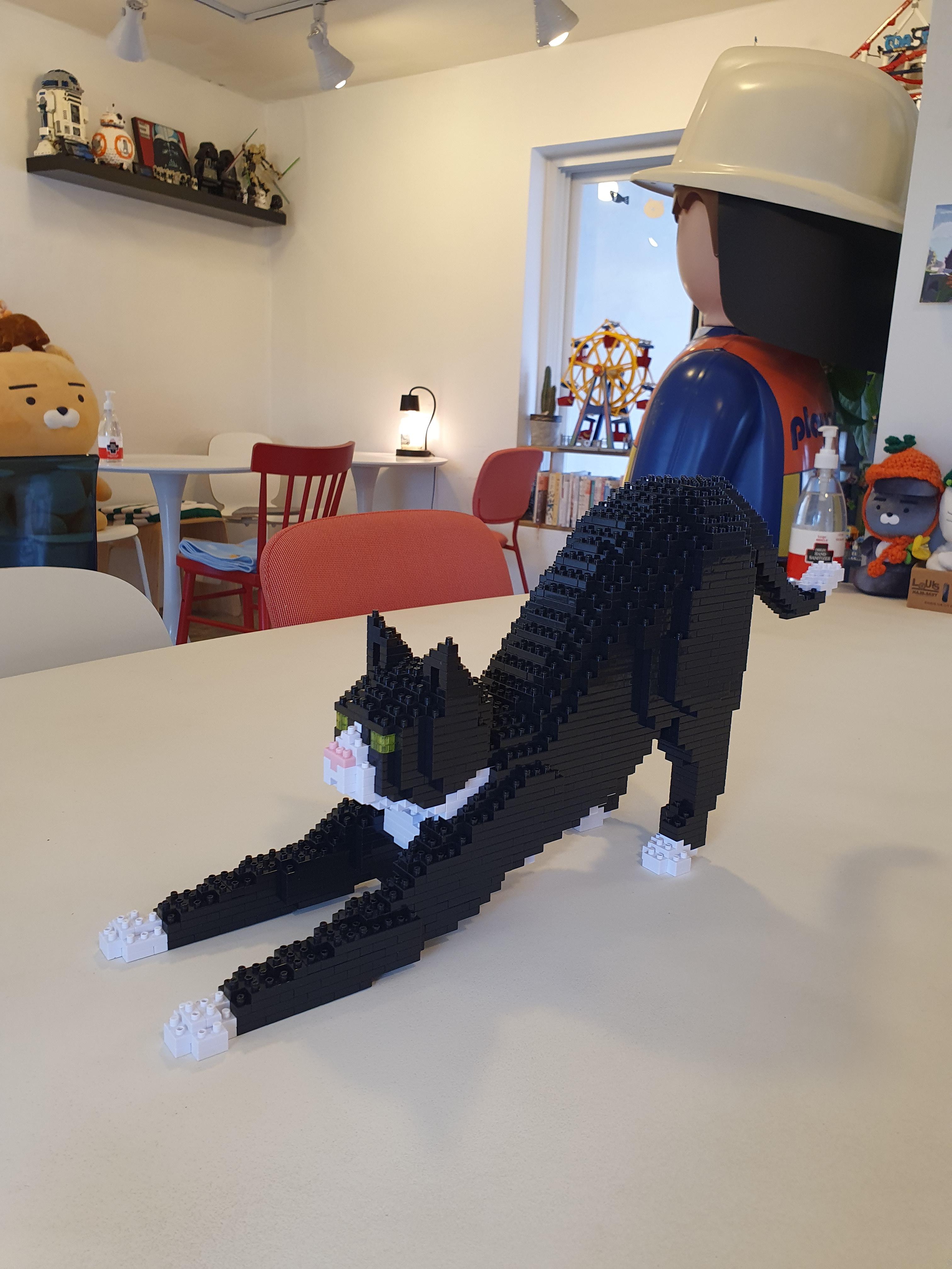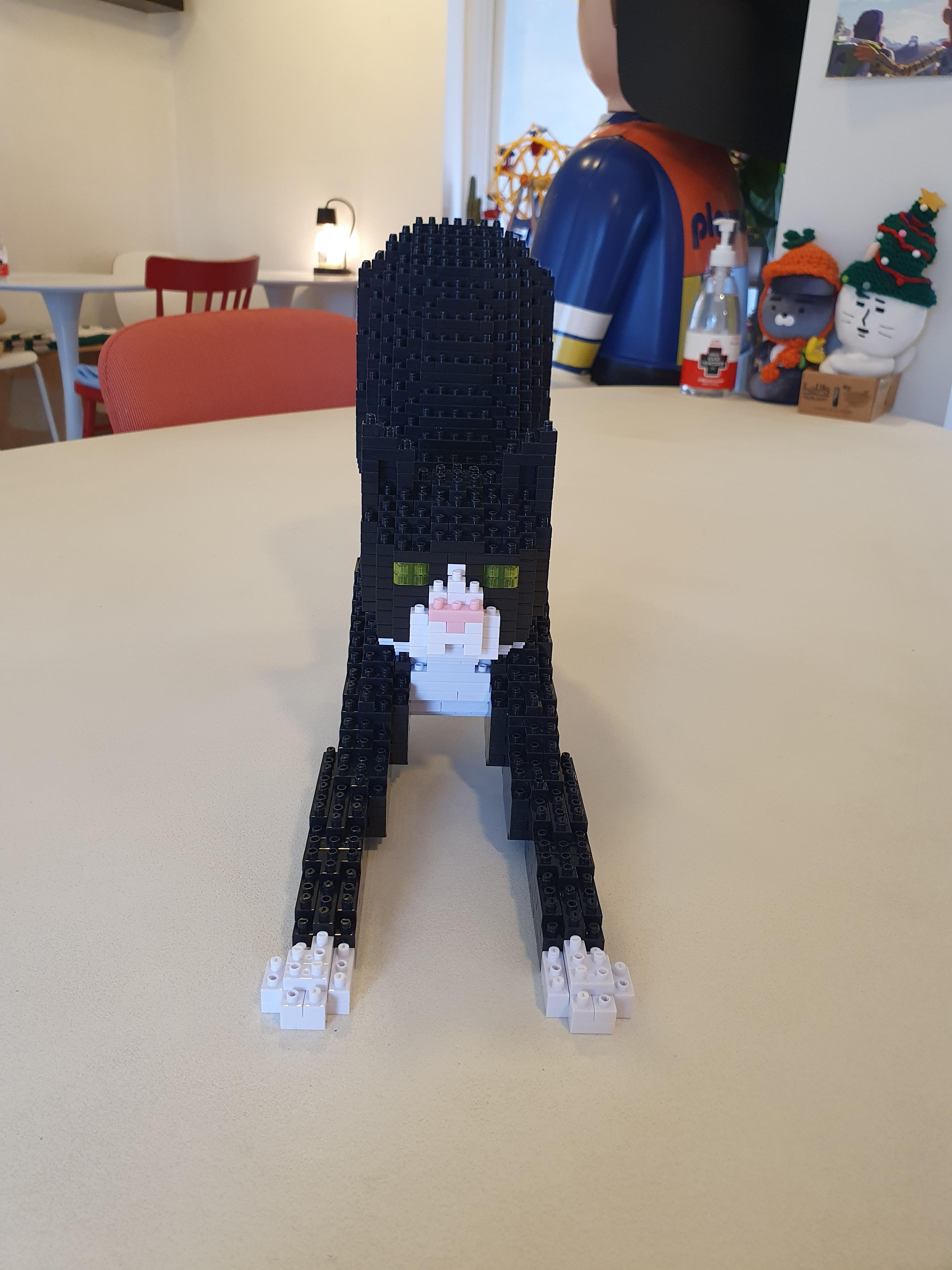 짜잔~!!! 연두색 눈 색과 핑크코까지 가지 오빠를 똑 닮은 고양이 블럭이 완성됐다.