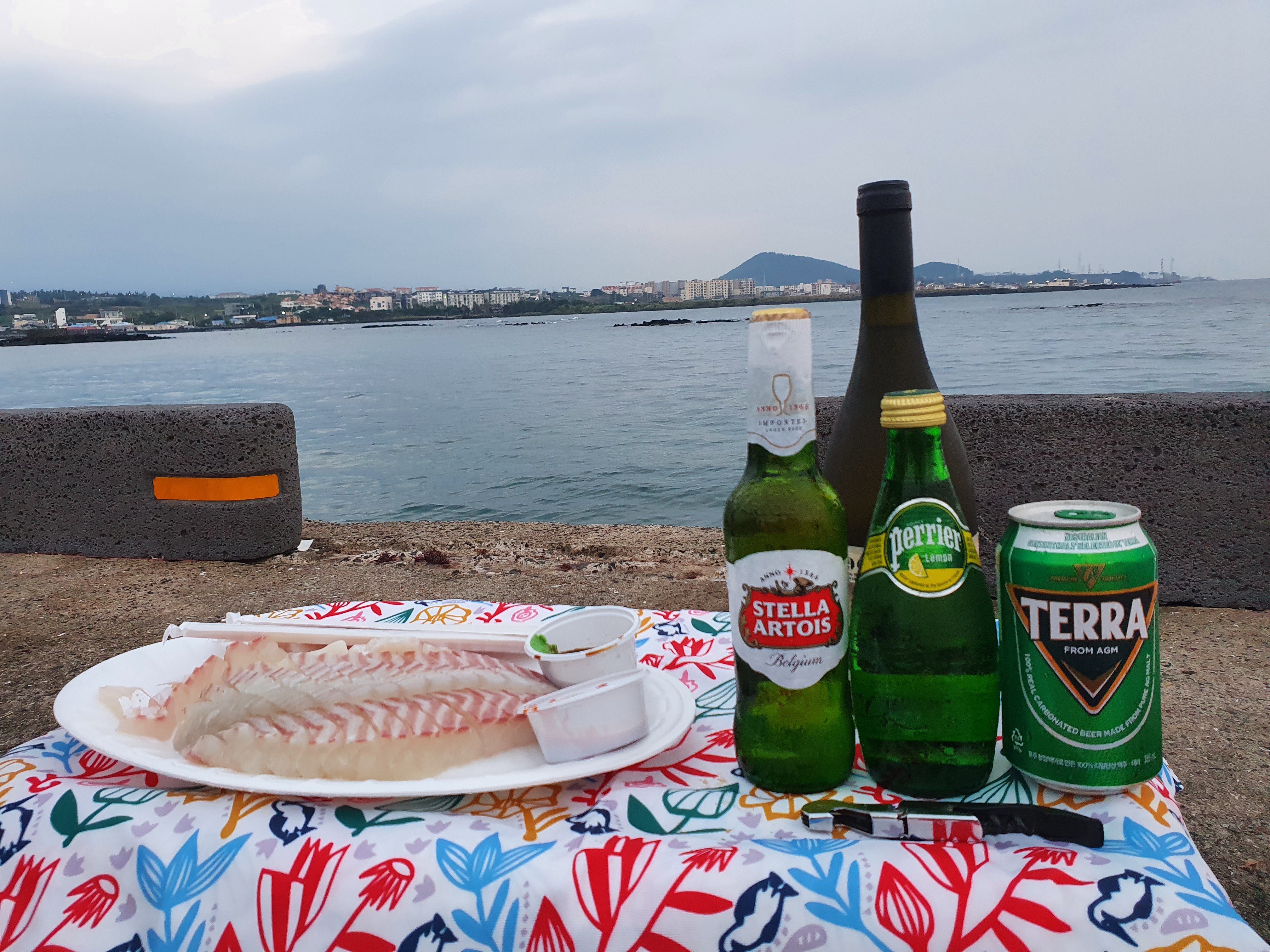 바닷가 바로 옆에 자리를 펴고 앉아