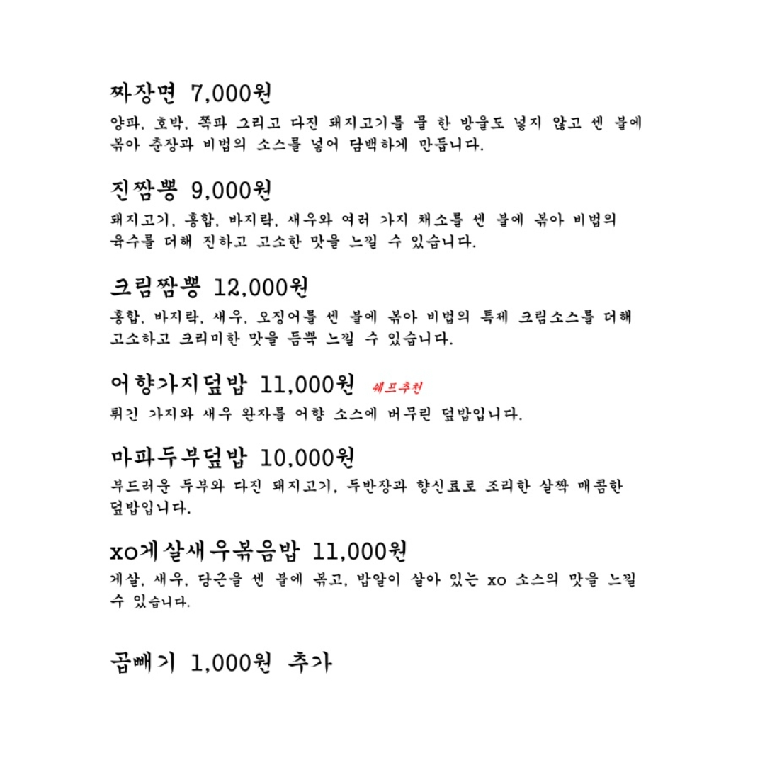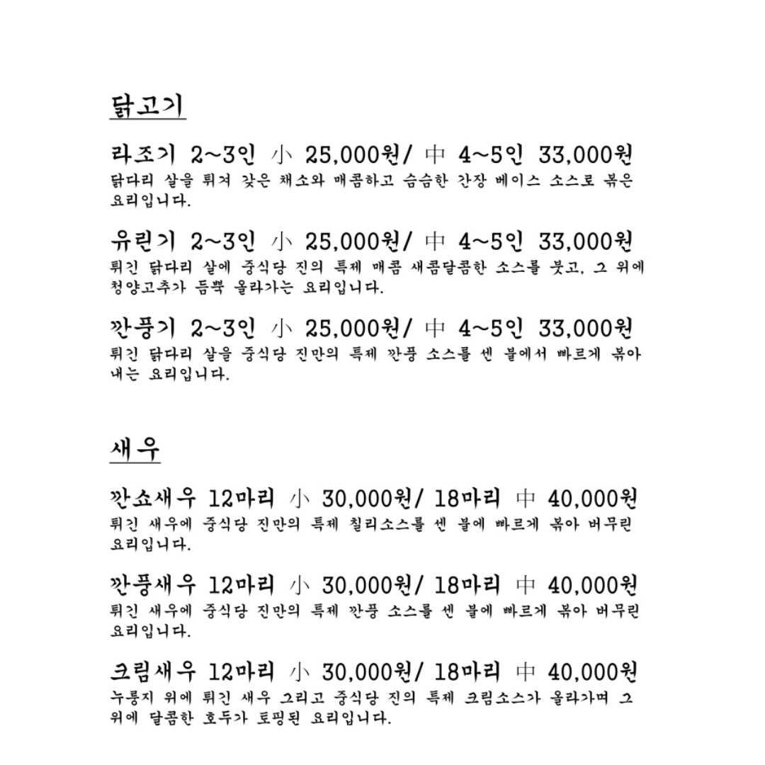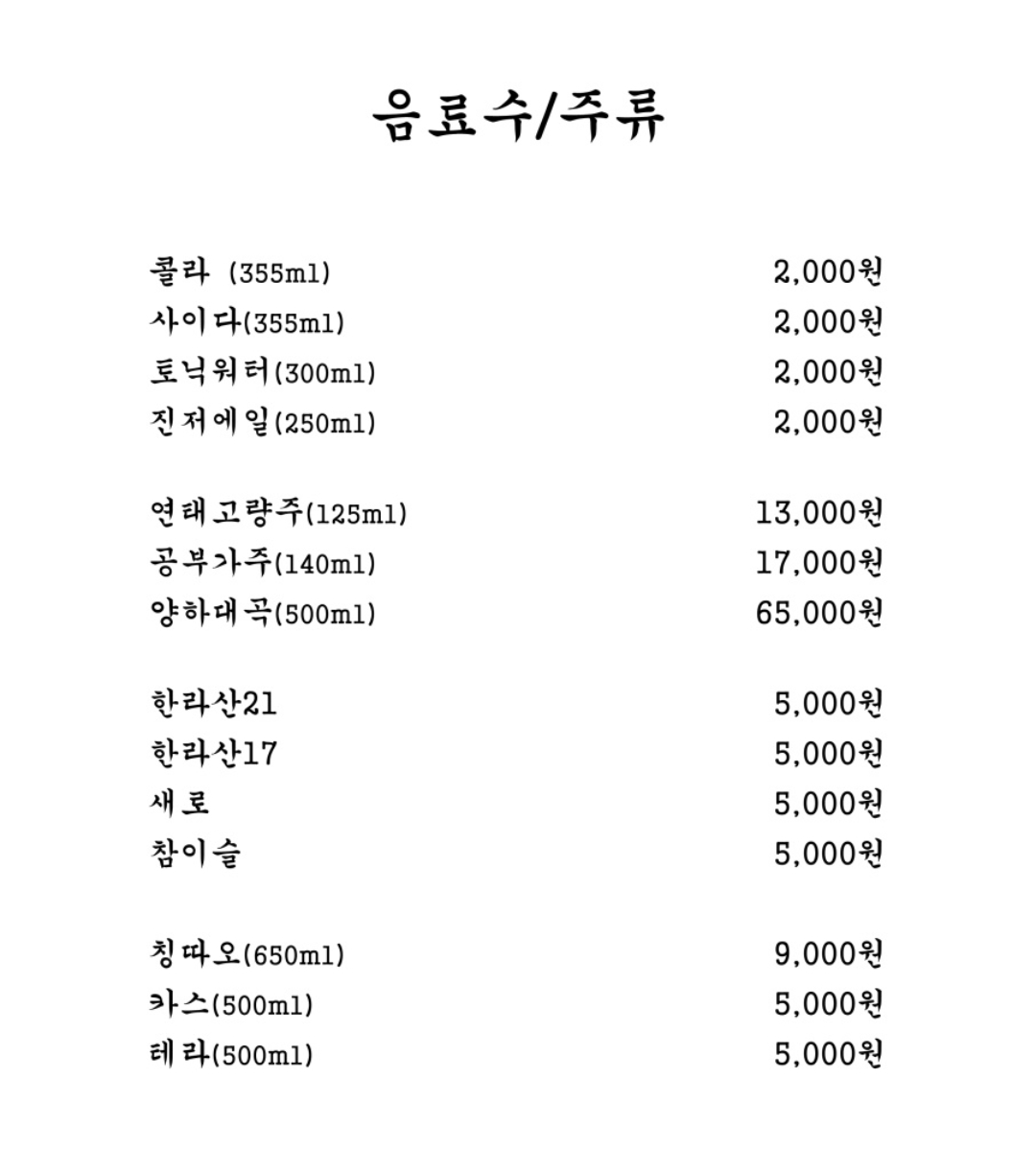 인터넷에 등록된 메뉴판을 가져왔는데, 현장에서는 주문이 불가한 메뉴도 있었던 것 같다.
