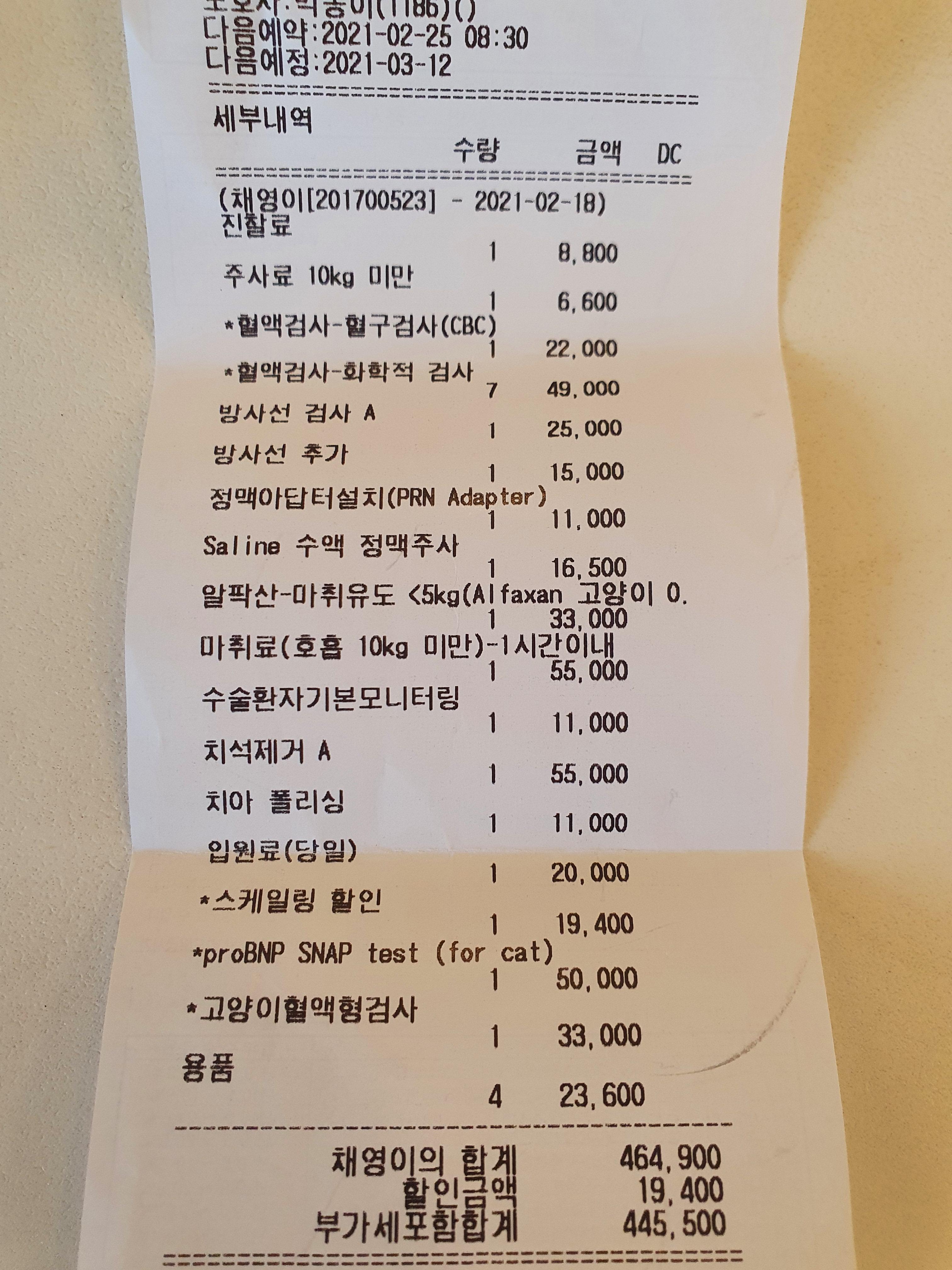 [고양이건강검진]20살 고양이 건강검진 항목 및 비용 후기