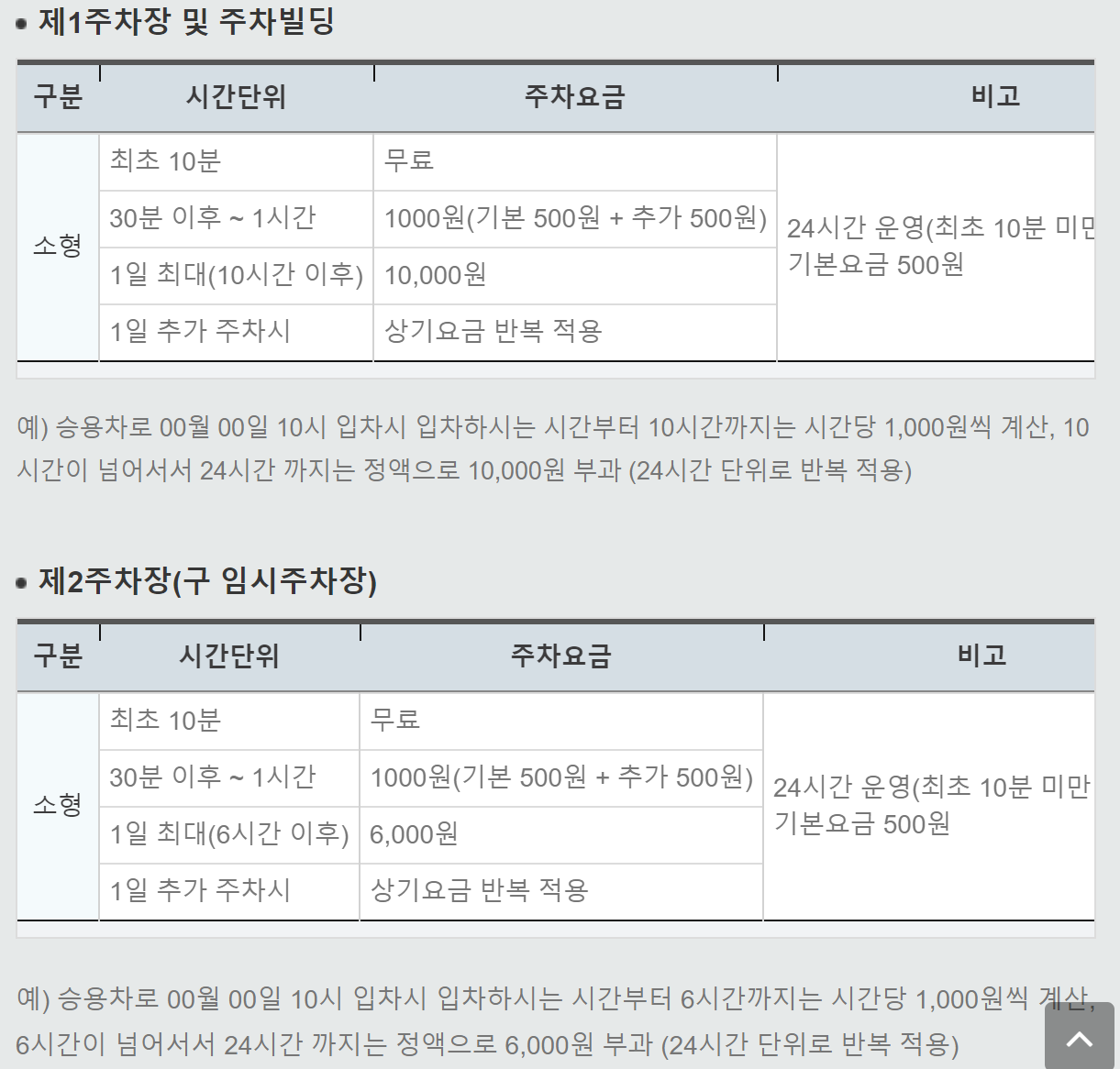 이틀이상 이용시 주차비를