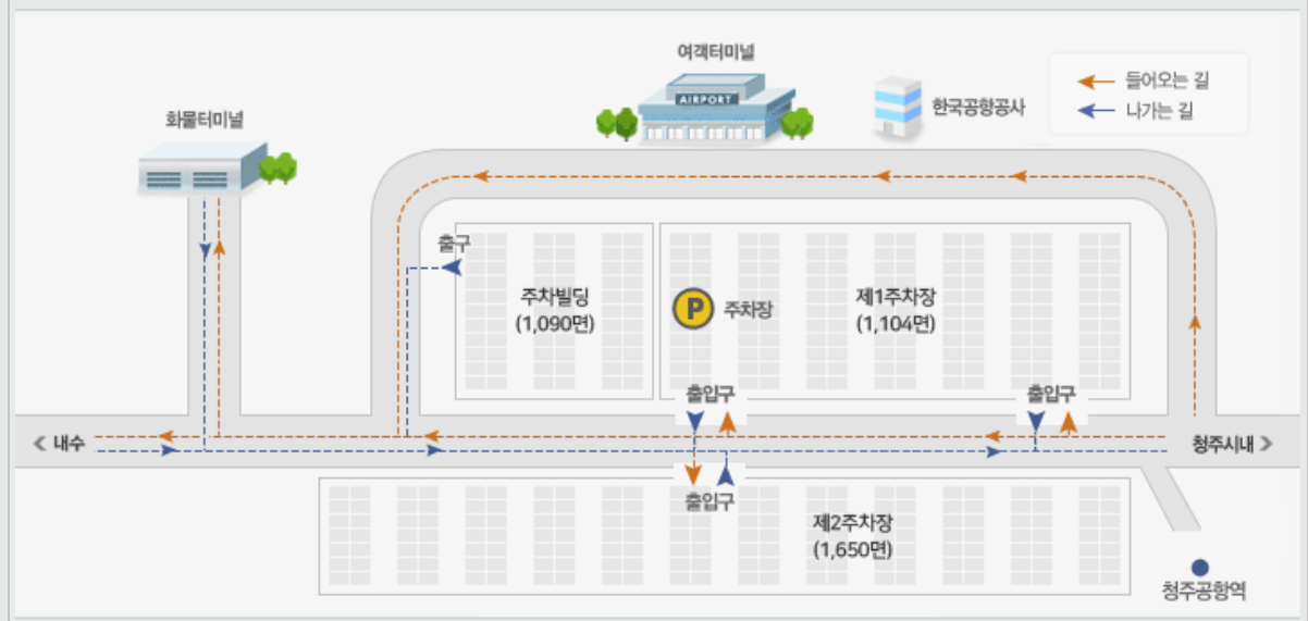 청주공항에는 크게 2개의 주차장이 있다.