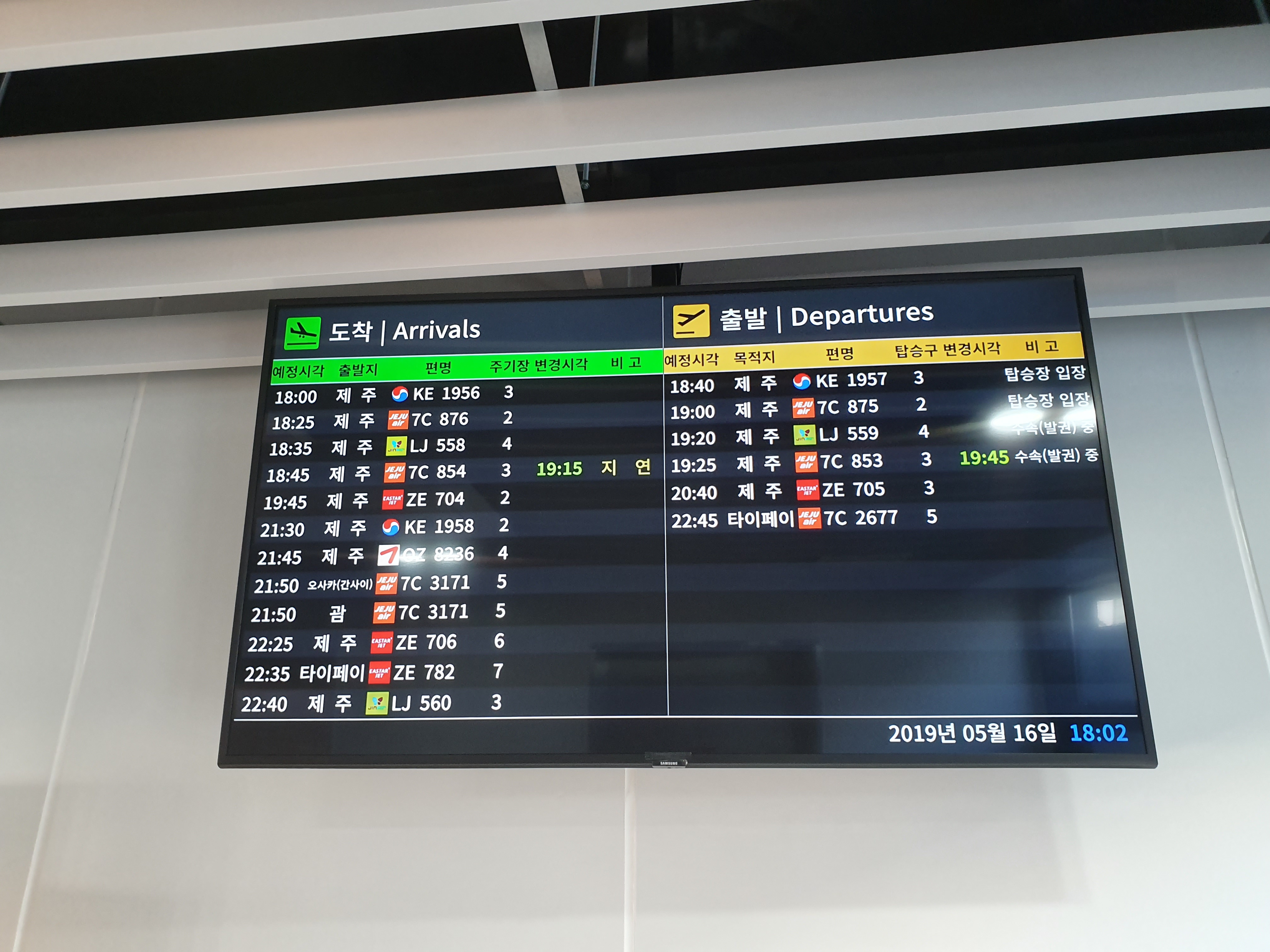 탑승구 정보와 지연 여부 등