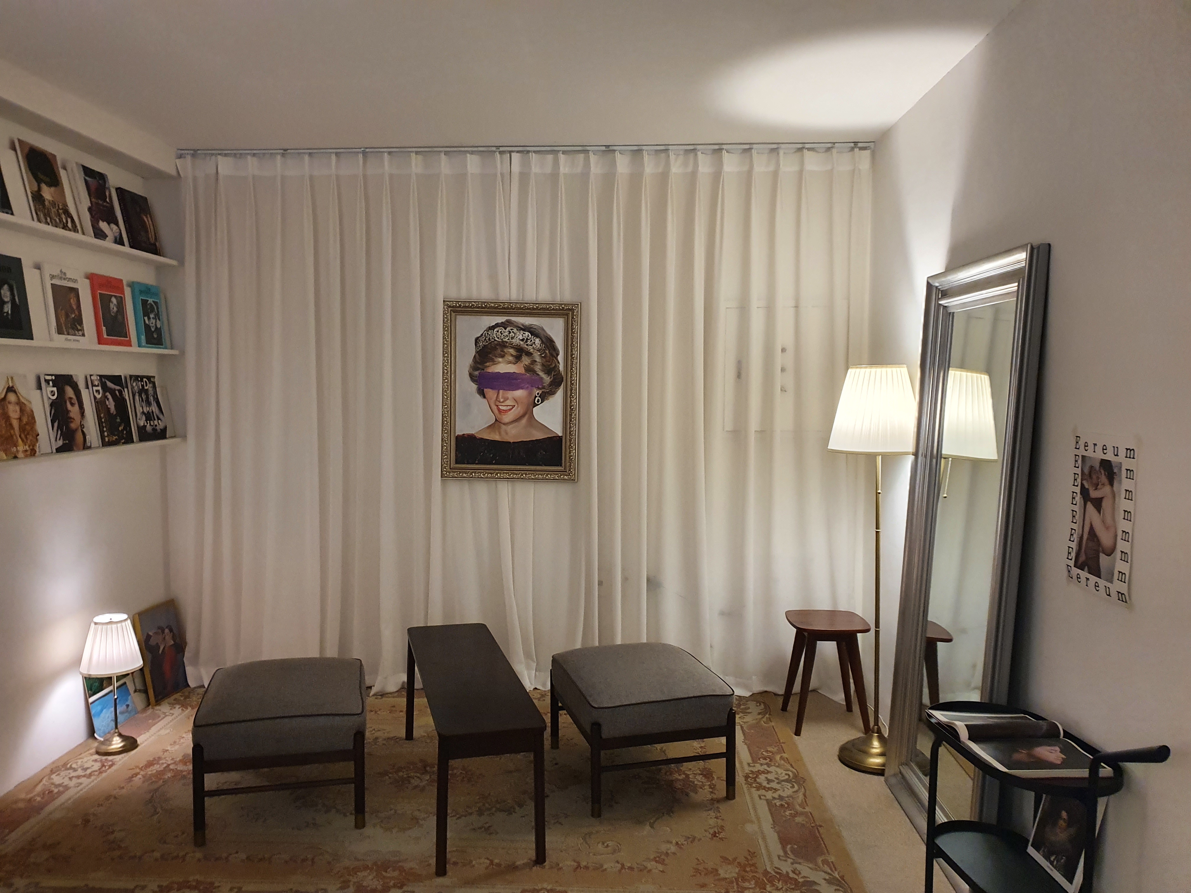 독특한 사진과 흰 천이 주가 되는