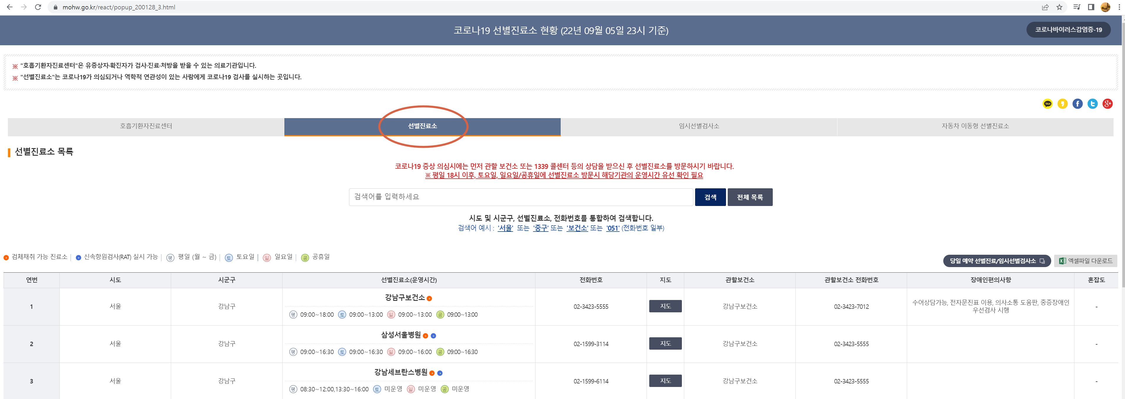 보통 보건소가 9시부터 13시까지 운영하니 이 시간에 맞춰서 선별진료소를 운영하는 보건소로 가자.