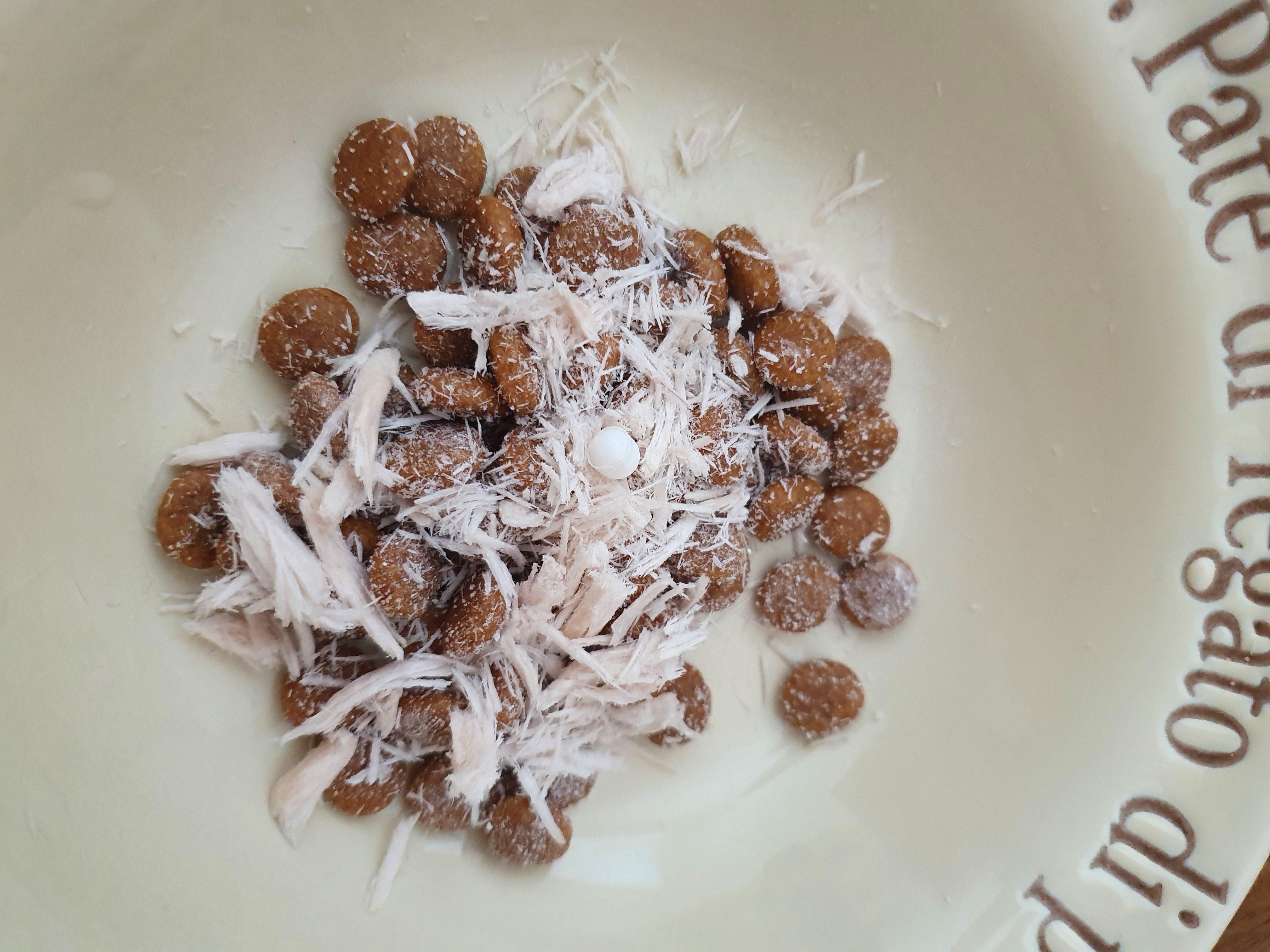 사료인척 트릿과 함께 밥그릇에 넣어보았지만