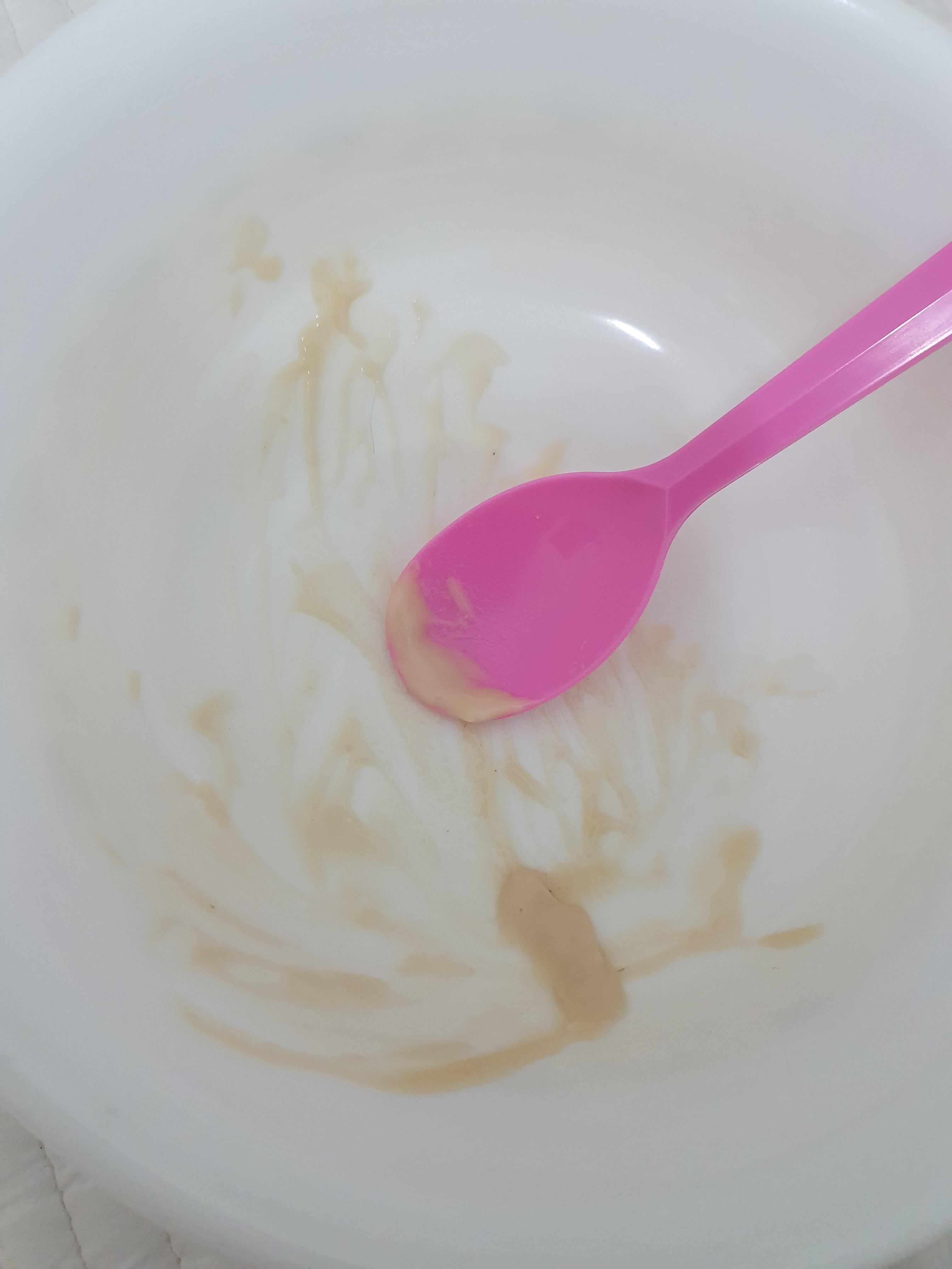 스푼으로 떠서 어르고 달래며 겨우 한그릇 다 먹이기에 성공!
