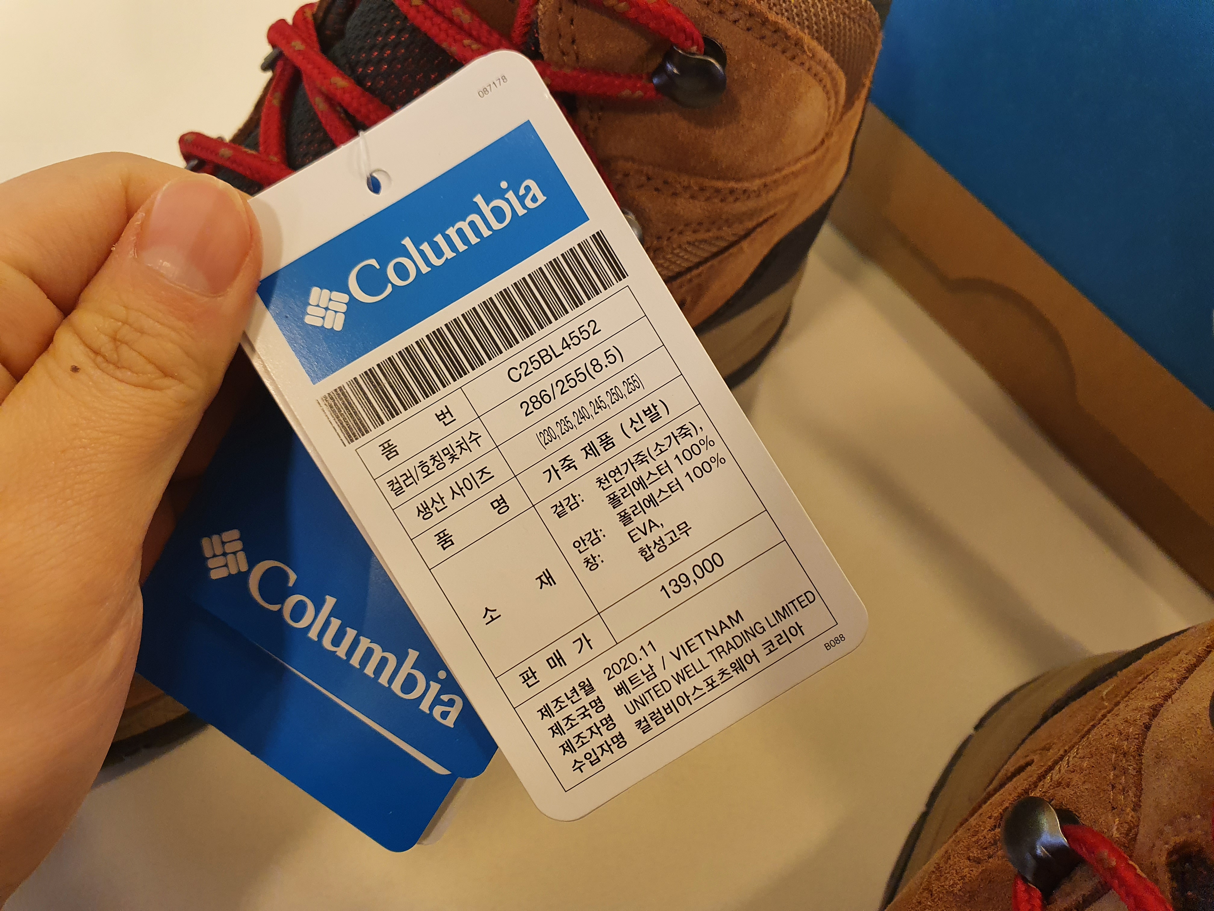 겉감은 소가죽과 폴리에스터로 되어있고