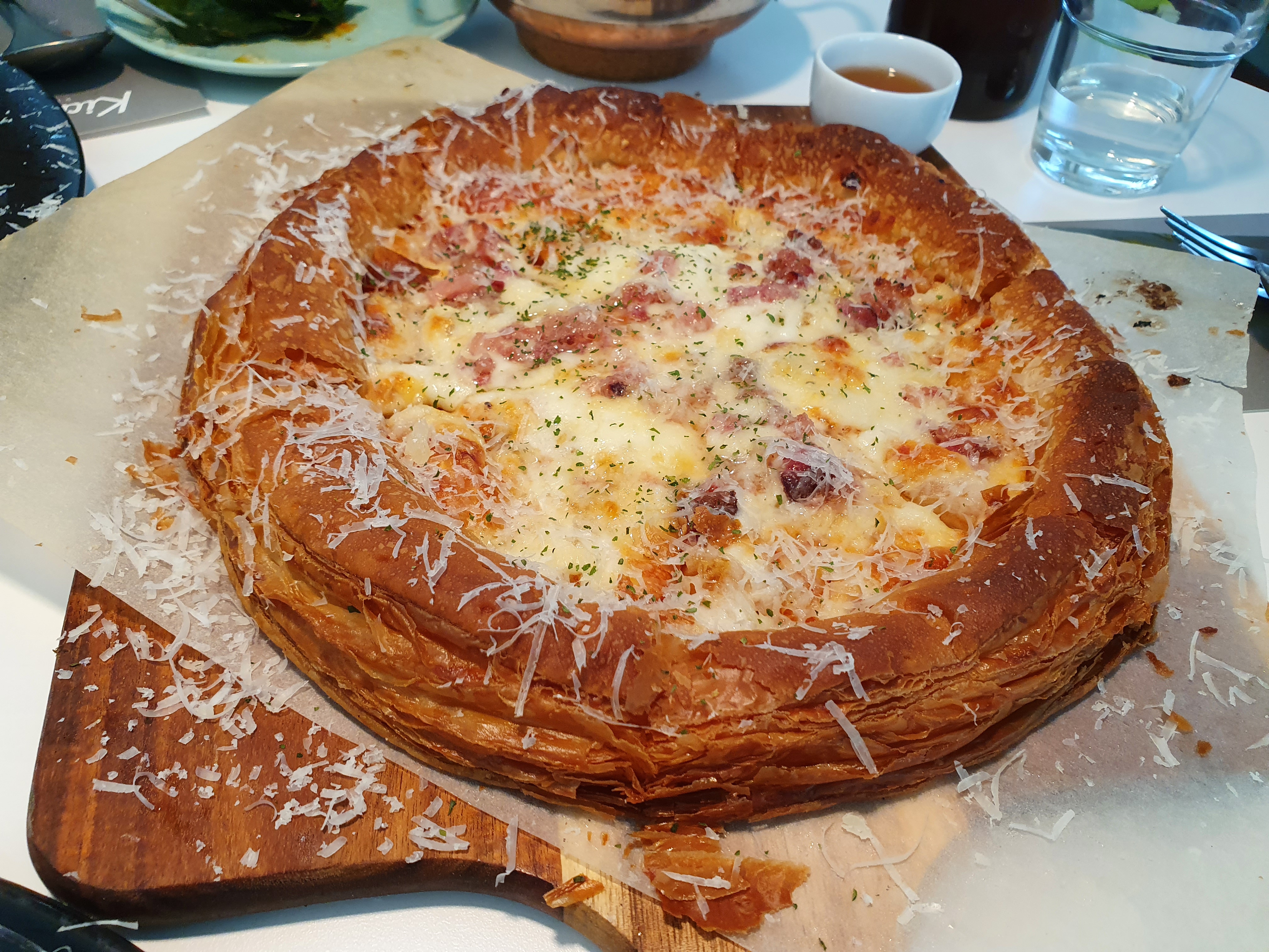 겹겹의 페스츄리에 피자 토핑을 얹은