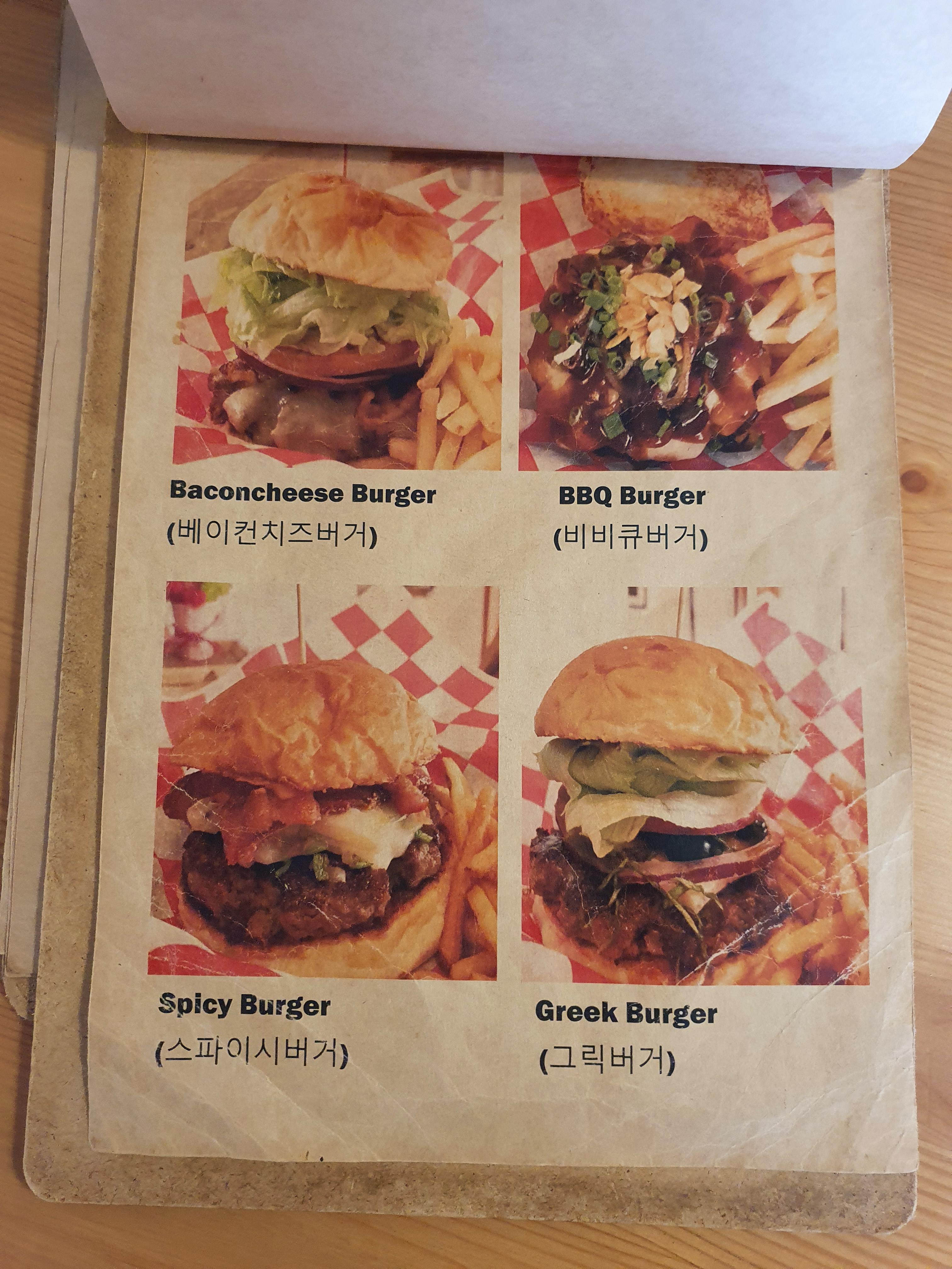 베이컨 치즈버거, 비비큐 버거, 스파이시 버거, 그릭버거 버거의 종류는 단 네가지! 하지만 메뉴가 많다고 맛있는 건 아니니까!