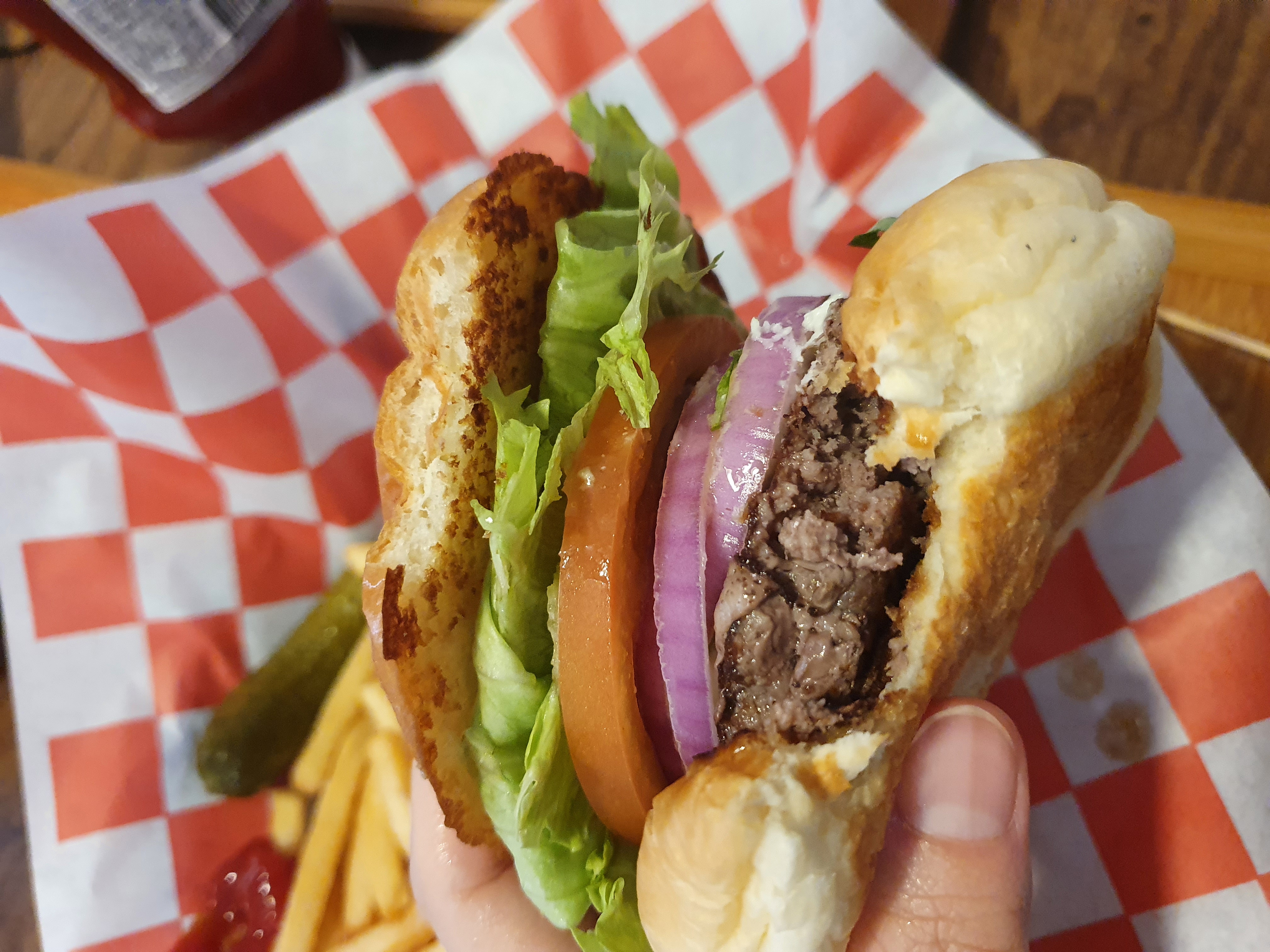 주문 즉시 조리되기 때문에 패티가 구워지는 고소한 향을 맡고 있다보면 햄버거가 짠 하고 눈 앞에 나타난다.