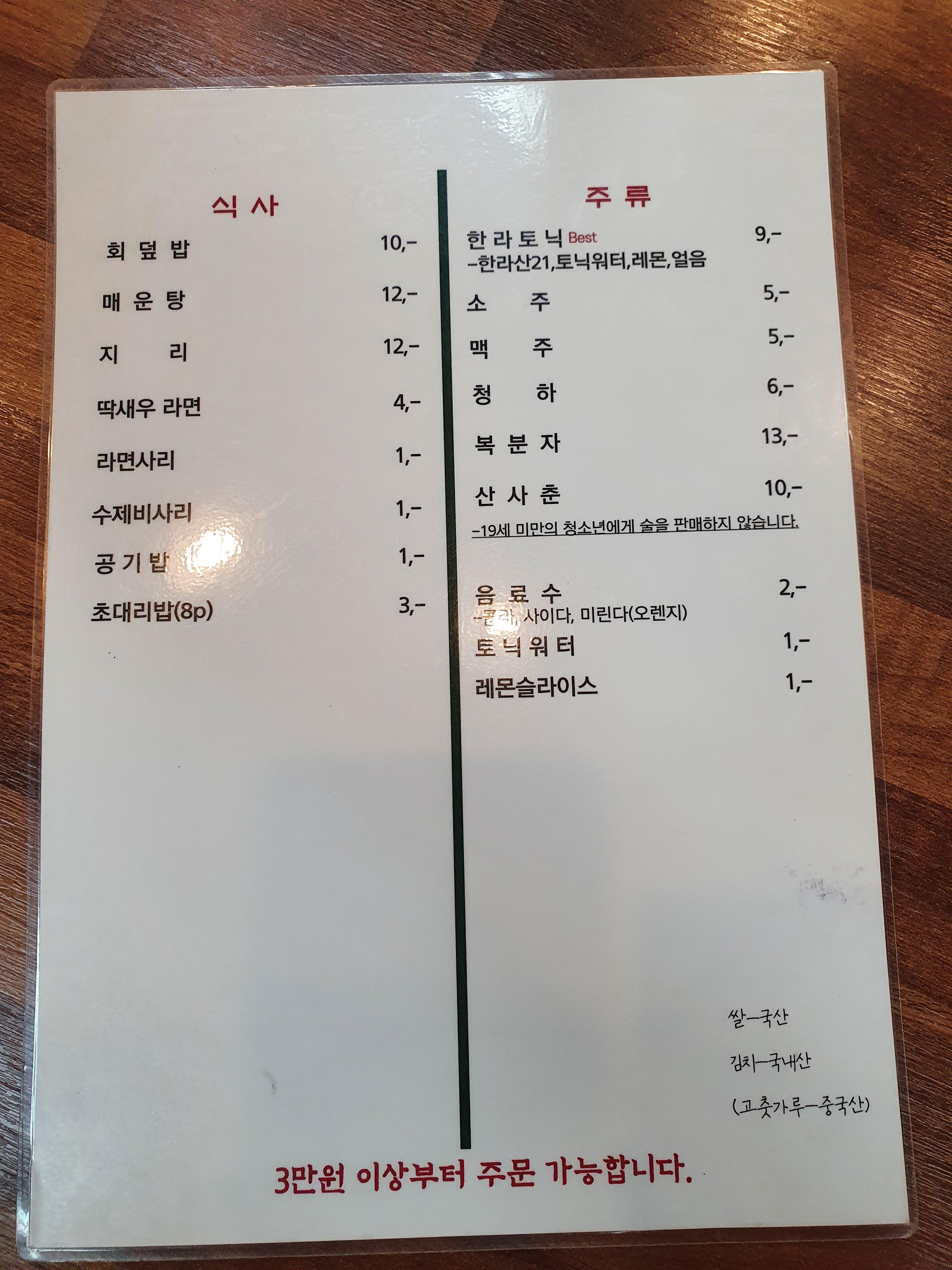 - 모듬회를 먹으면 매운탕은 서비스로 나온다