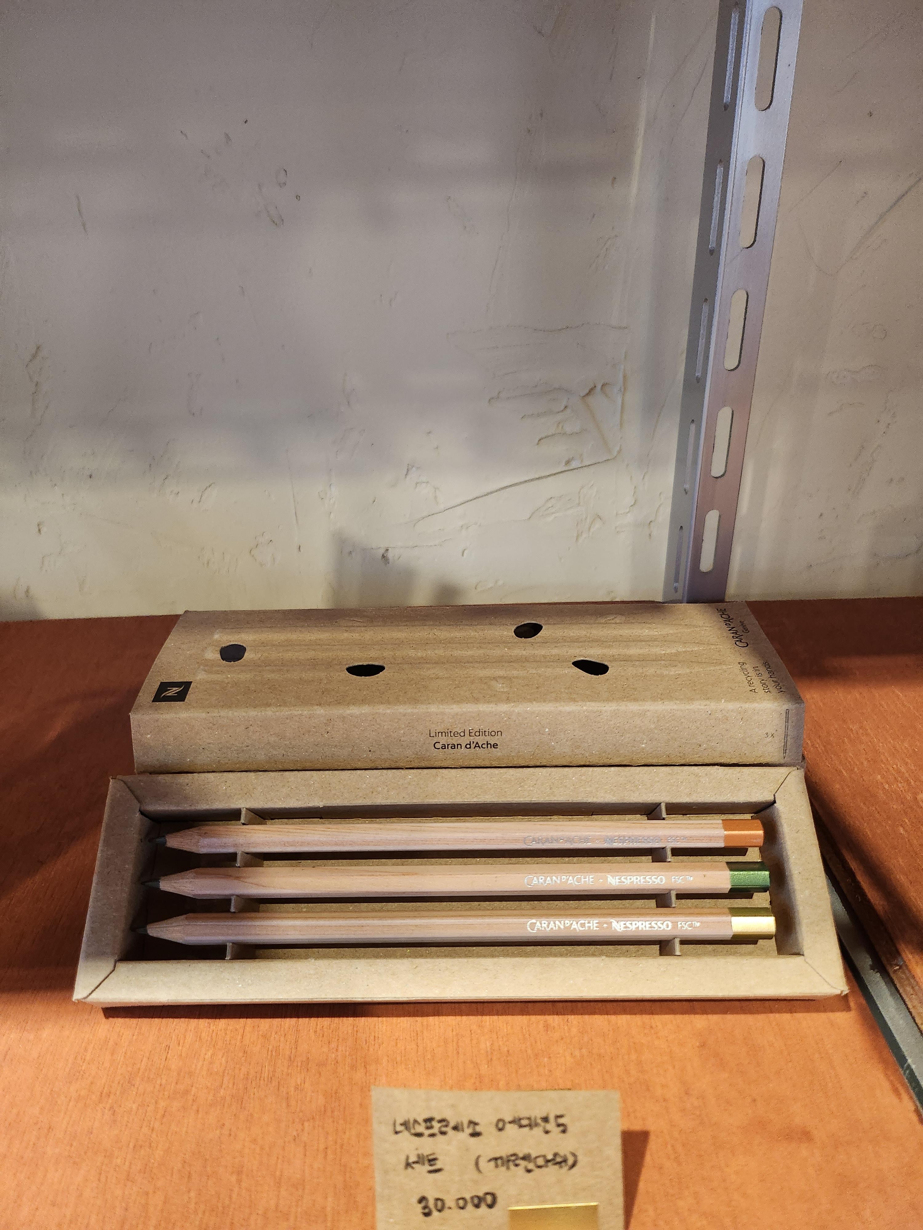 스위스 제네바에서 탄생한 고급 필기구 브랜드인 까렌다쉬와 네스프레소의 콜라보 연필도 판매중이었는데, 리미티드 제품이라 가격이 많이 비싸지 않을까? 싶었는데 인터넷보다 저렴하게 판매하고 있었다.