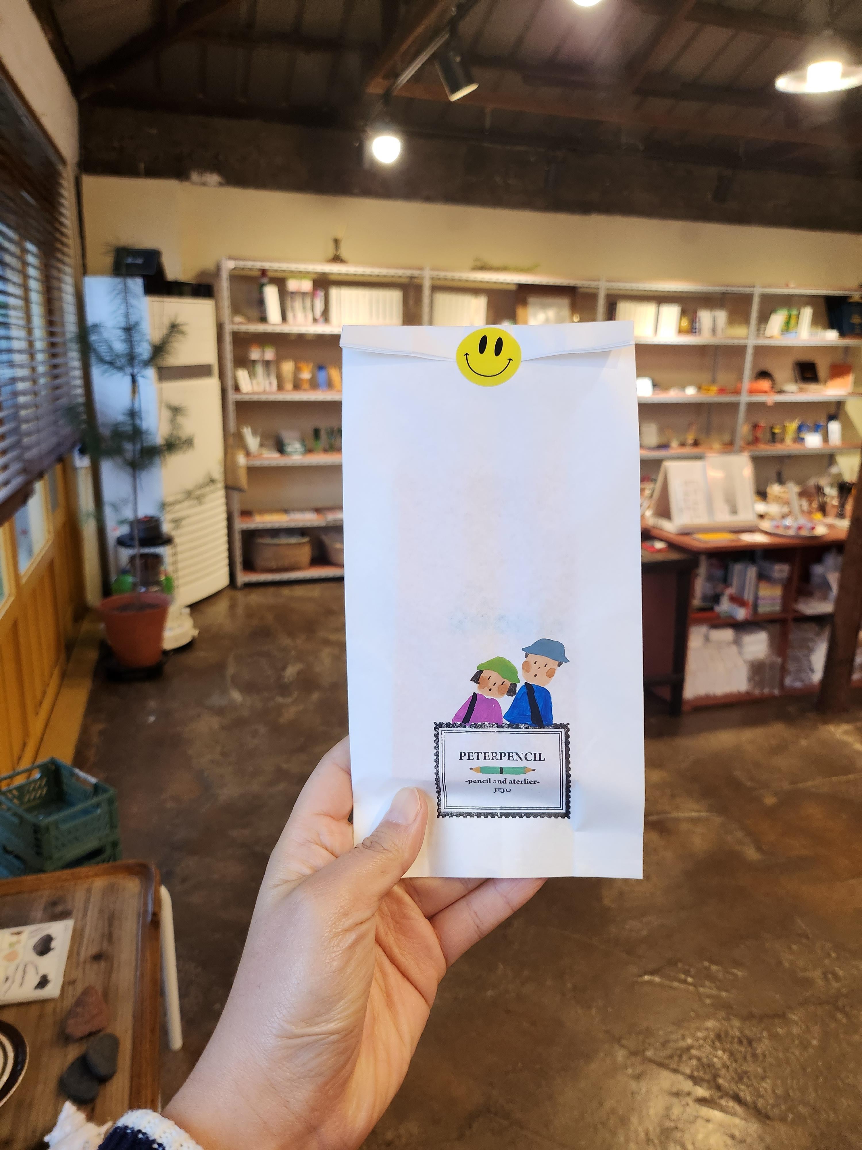 소소한 소품을 하나 구매하고, 보통은 쓸데없는 쓰레기가 나오는게 싫어서 봉투를 받지 않는데, 피터펜슬의 봉투는 너무 귀여워서 거절할 수가 없었다.