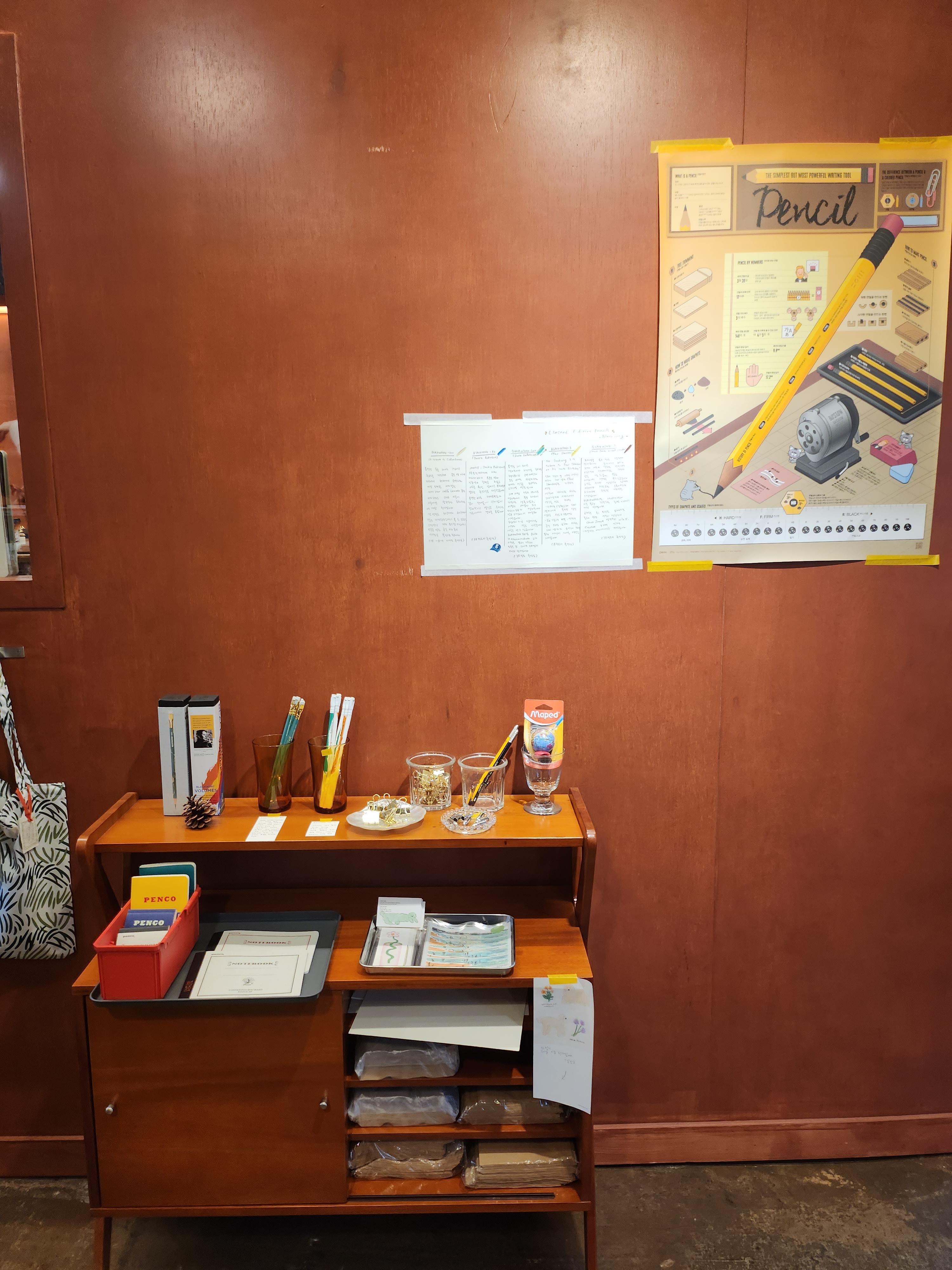 다양한 연필들 샘플이 있어서 직접 사용해보고 내가 원하는 제품을 고를 수 있어서 매우 좋았고, 연필가게이지만 그 외에도 다양한 문구류들이 진열되어있었다.