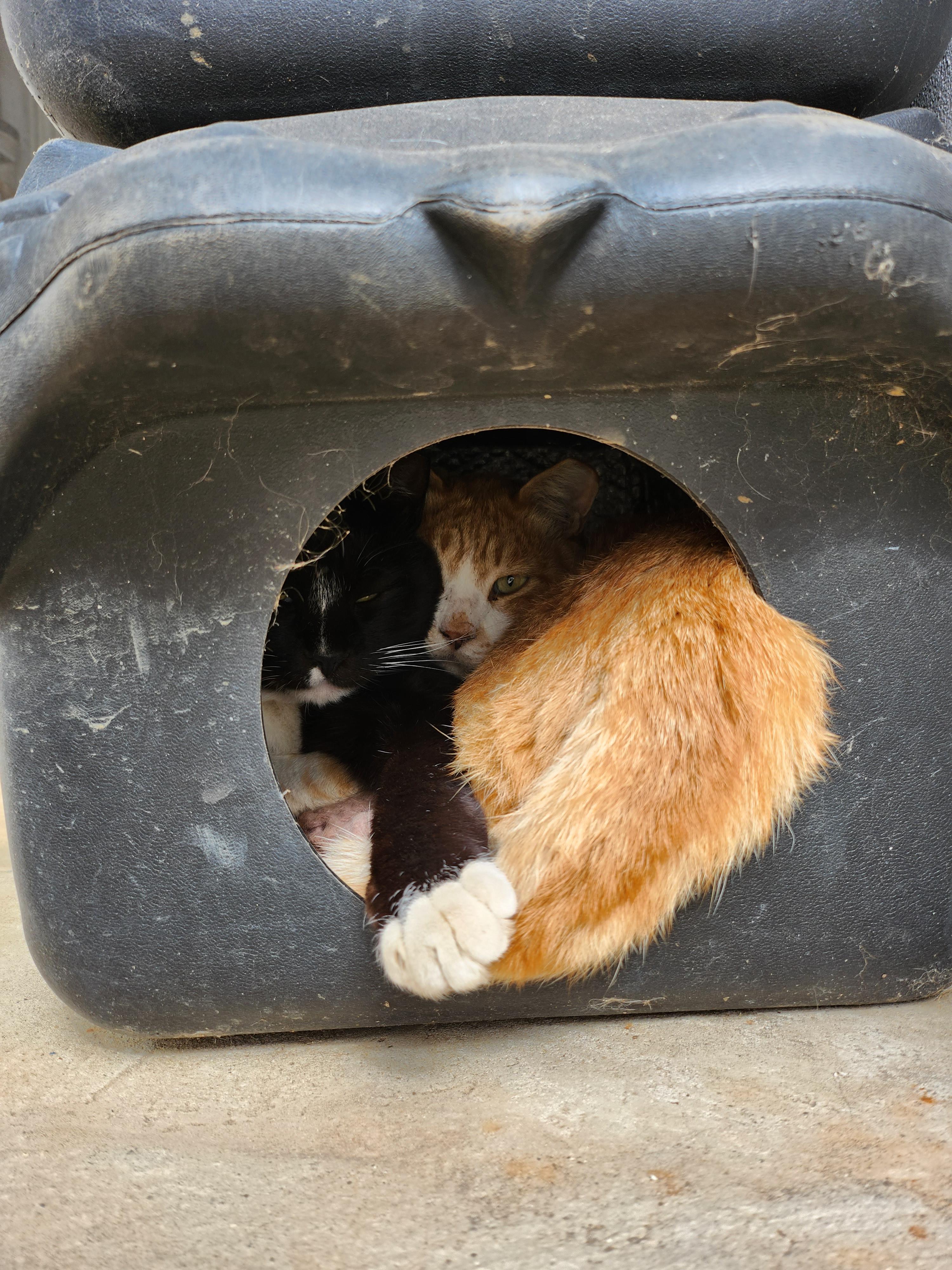 치즈 무늬 고양이들 속 유일한 턱시도인