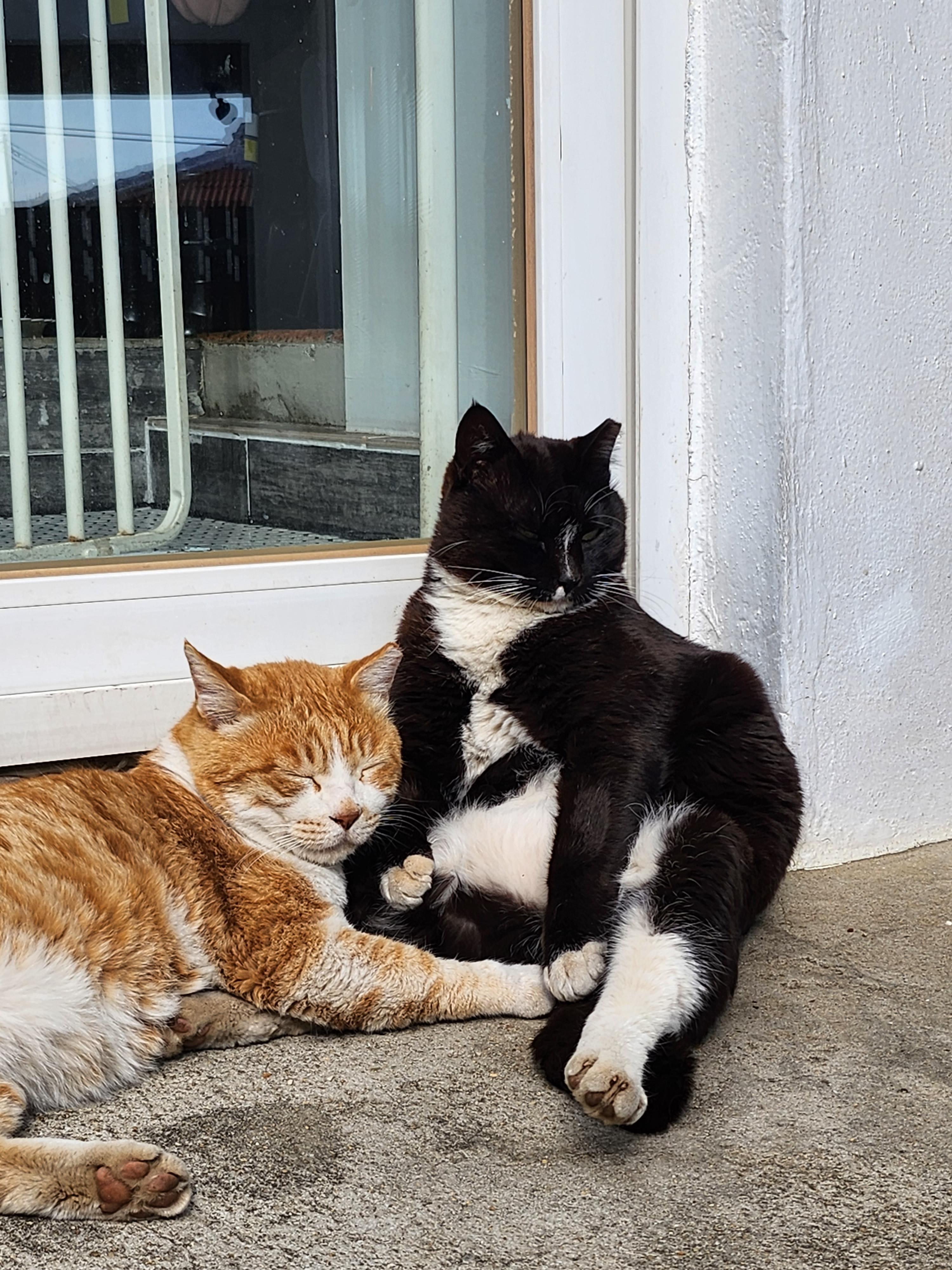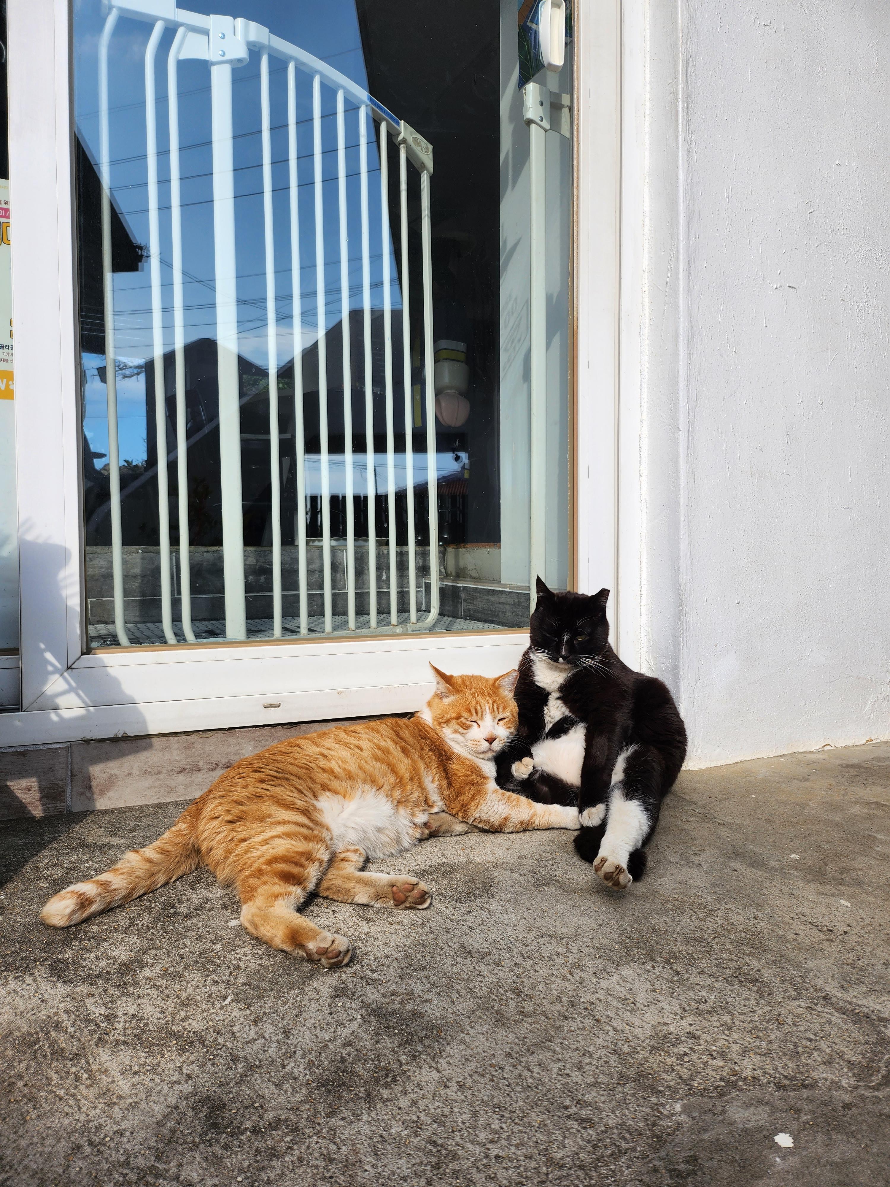 평균나이 5살의 동네 고양이 치고는 조금 높은 연령대이지만 서로 비슷한 또래여서인지 가끔은 투닥거리며 또 가끔은 서로 의지하며 평화로운 나날을 보내고 있어요.