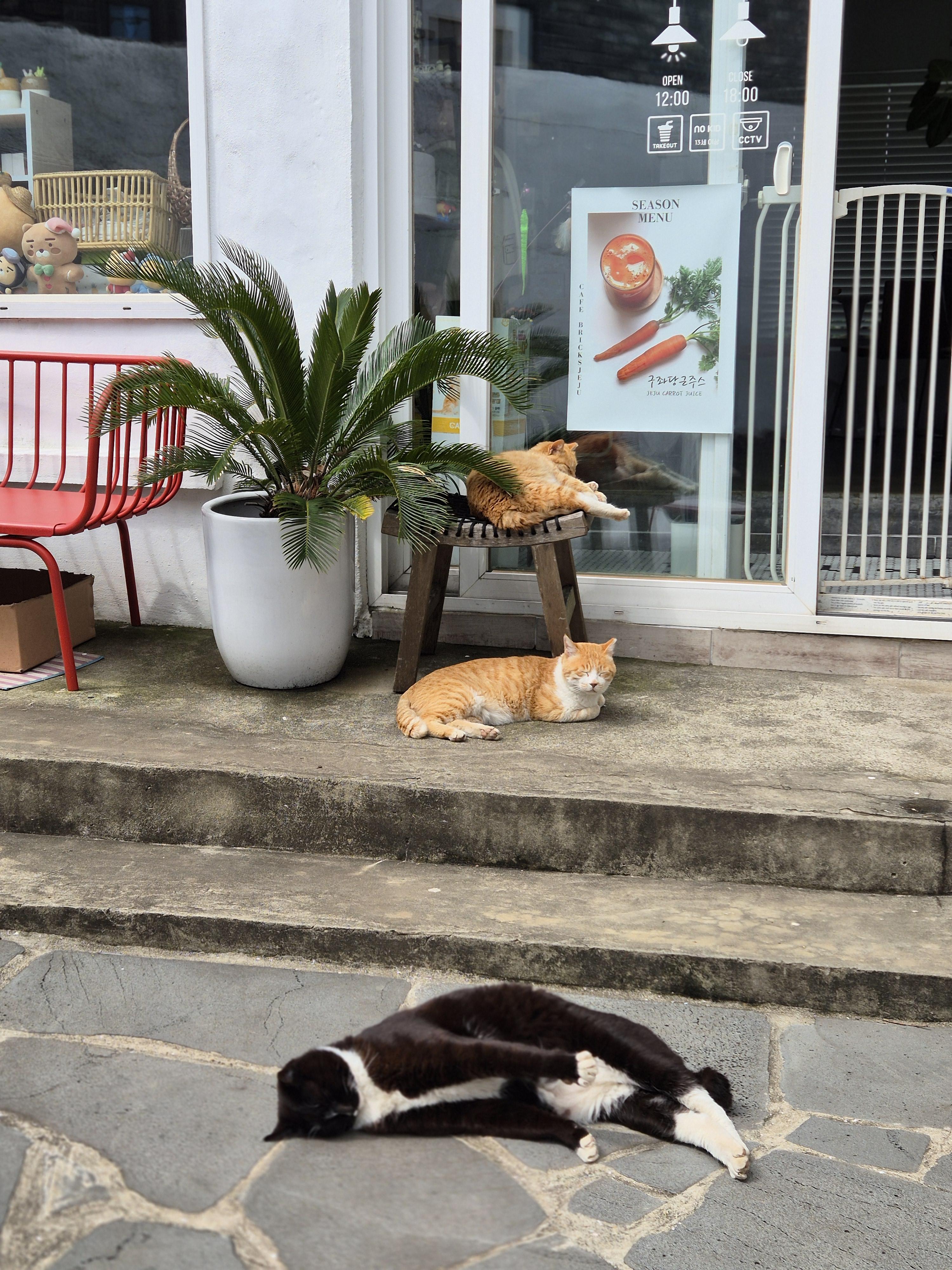 제주도는 일주일넘게 마치 고사리 장마처럼 비가 내리고 있다. 이렇게까지 길고 지겹게 비가 내리다니.. 게다가 어제부터는 기온도 떨어져서 마당 고양이들이 괜찮을지 걱정이되서, 카페 마감