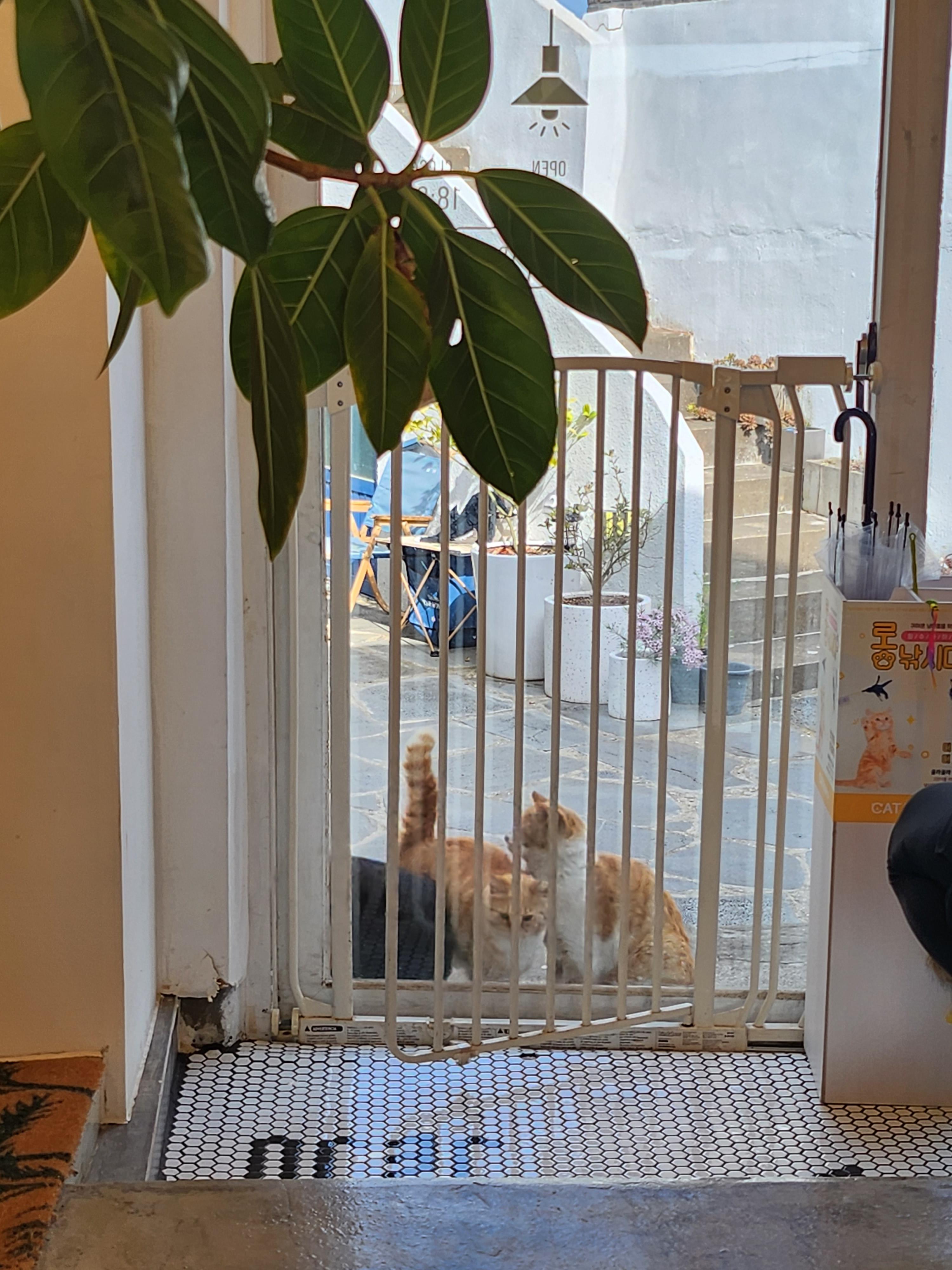 오늘도 어김없이 카페 문이 열리기도 전에 줄 서는 집에 찾아온 고양이 삼총사 필탄너(필통씨, 탄광이, 너구리)