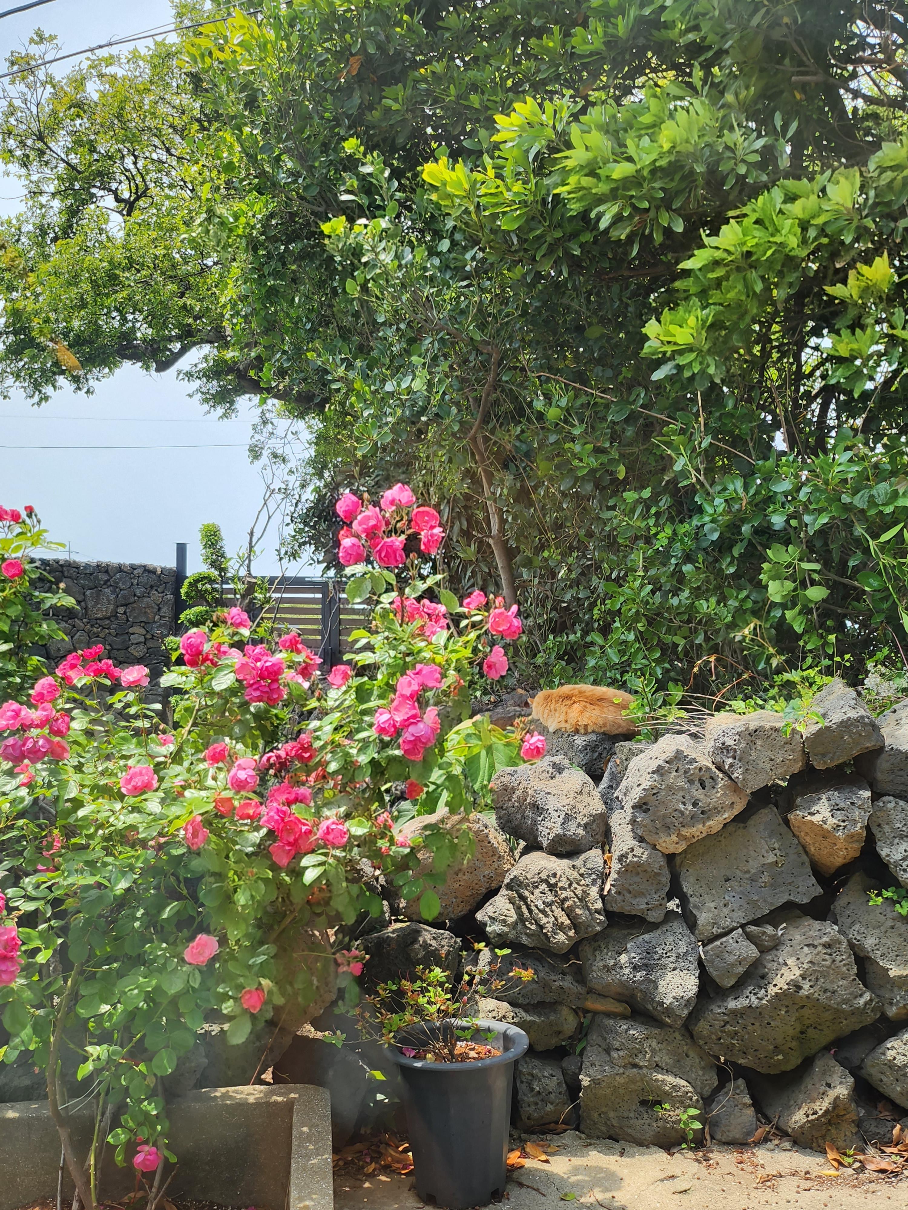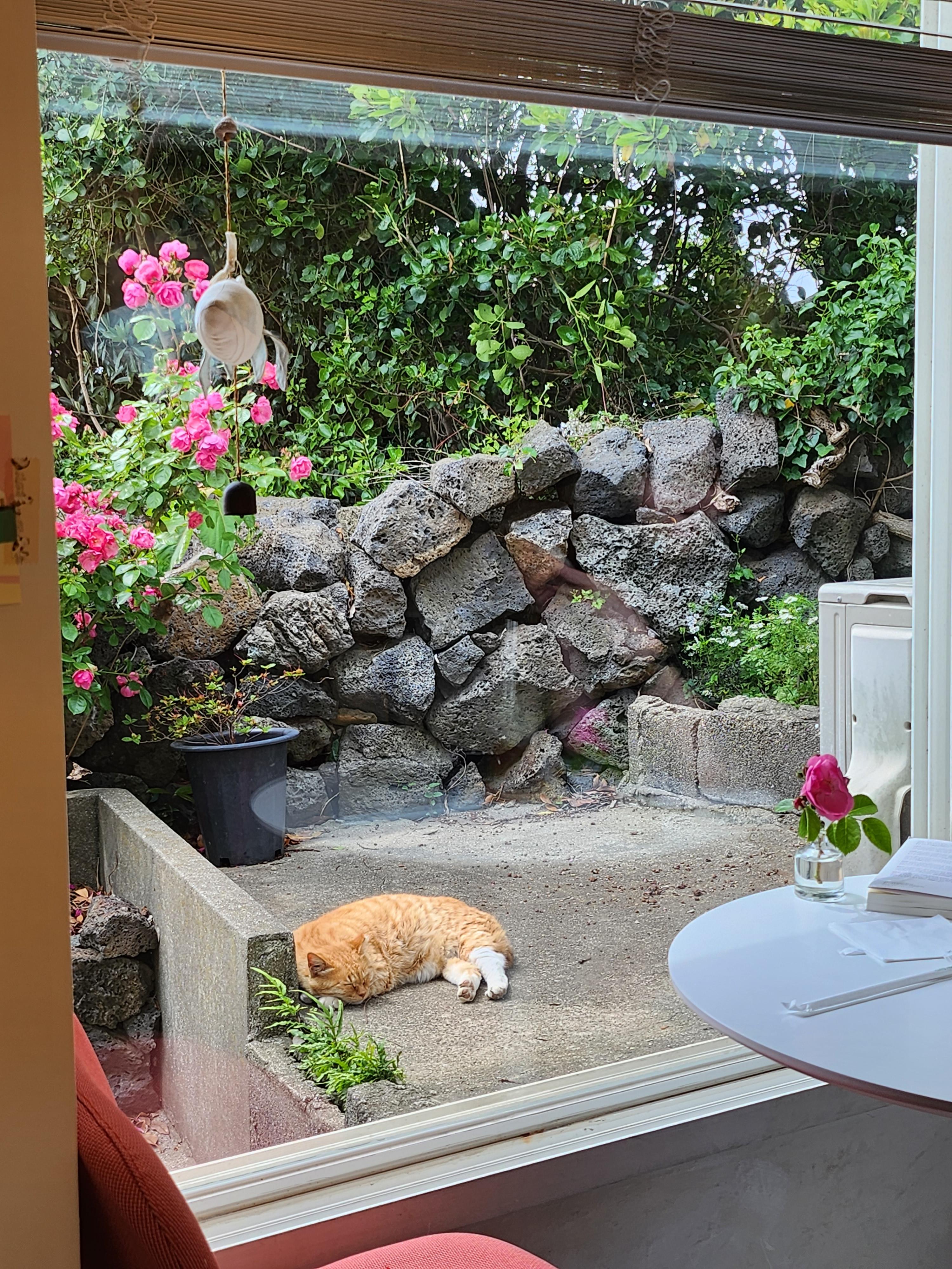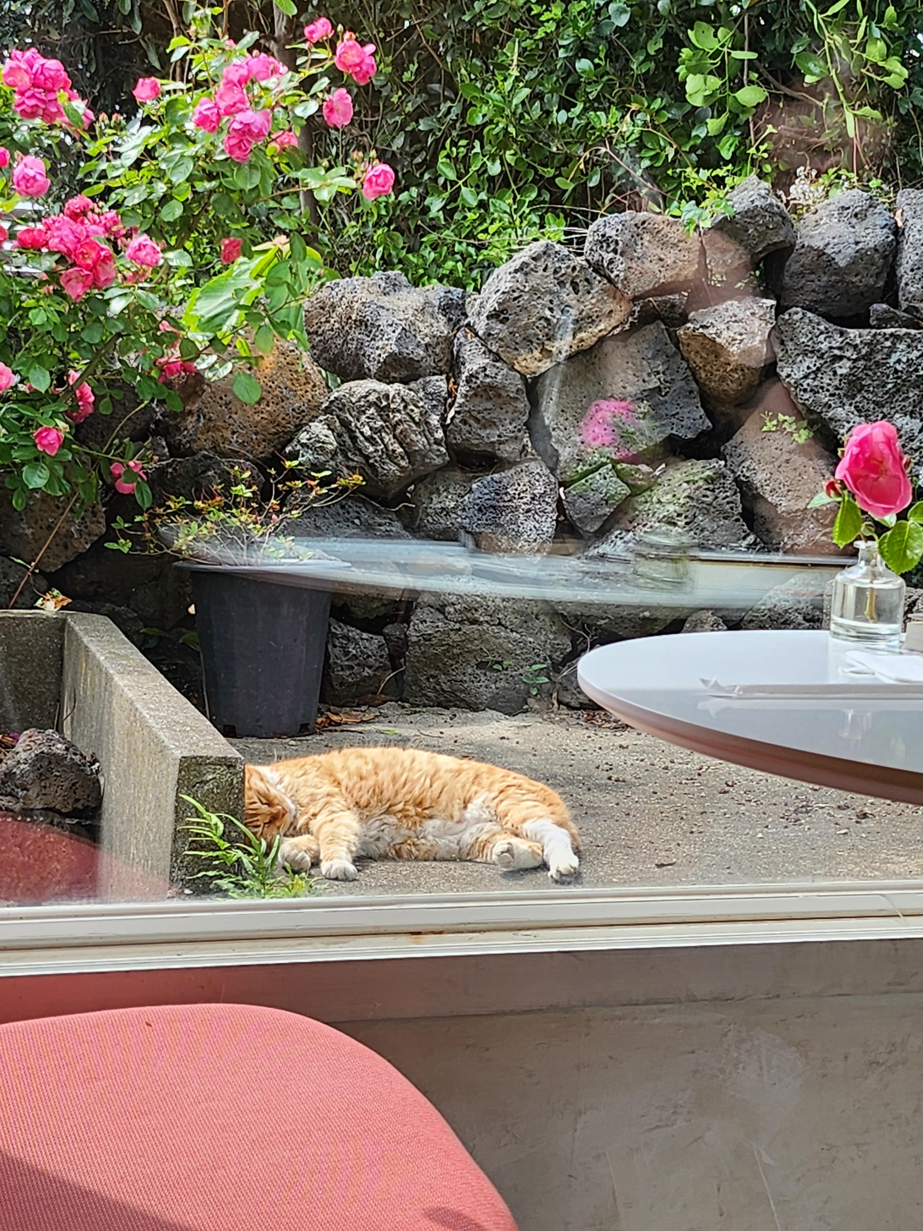 예쁜 5월의 장미꽃만큼이나 아름다운 고양이들도 돌담에서 느긋하게 잠을 청하는데,