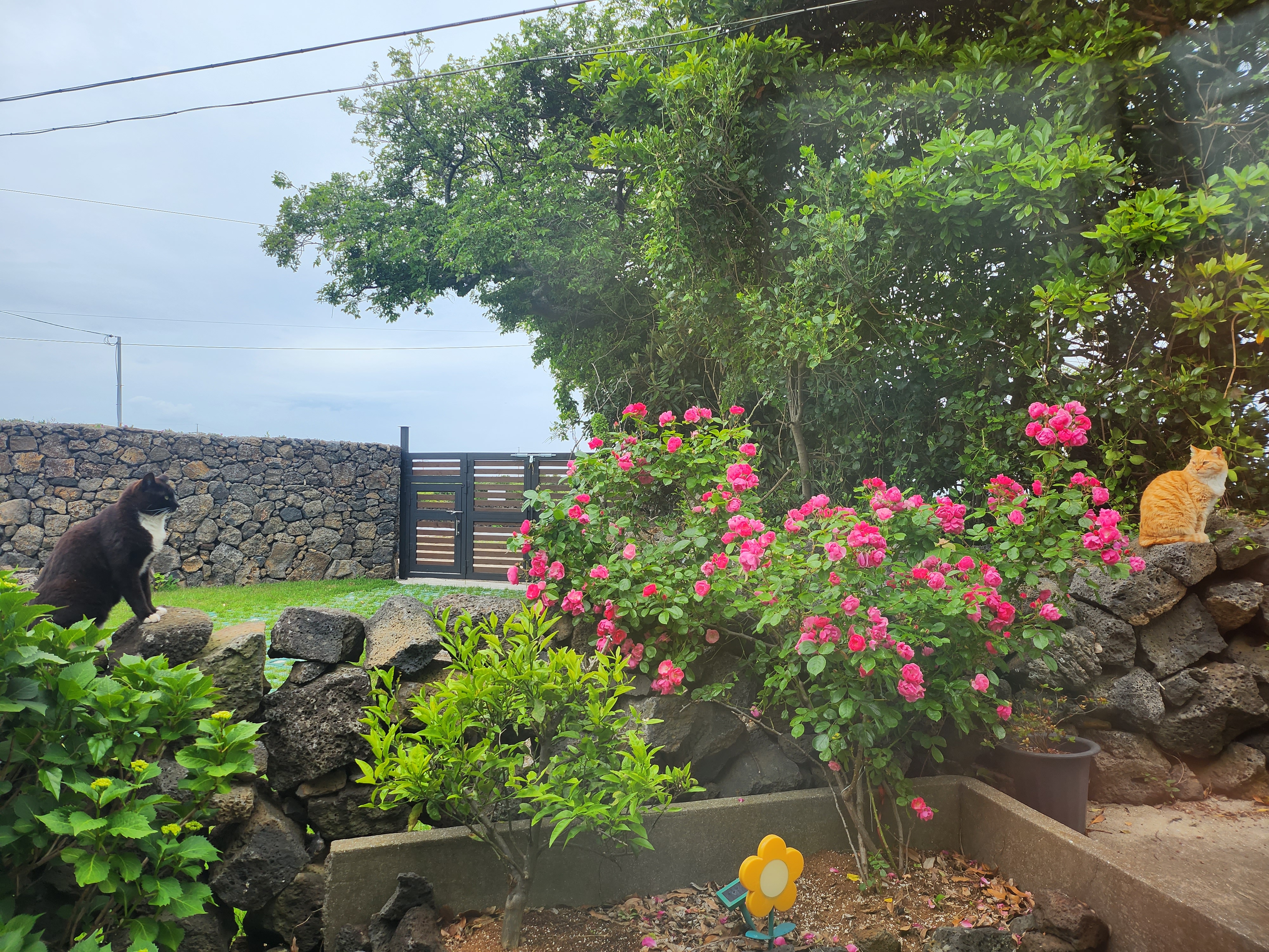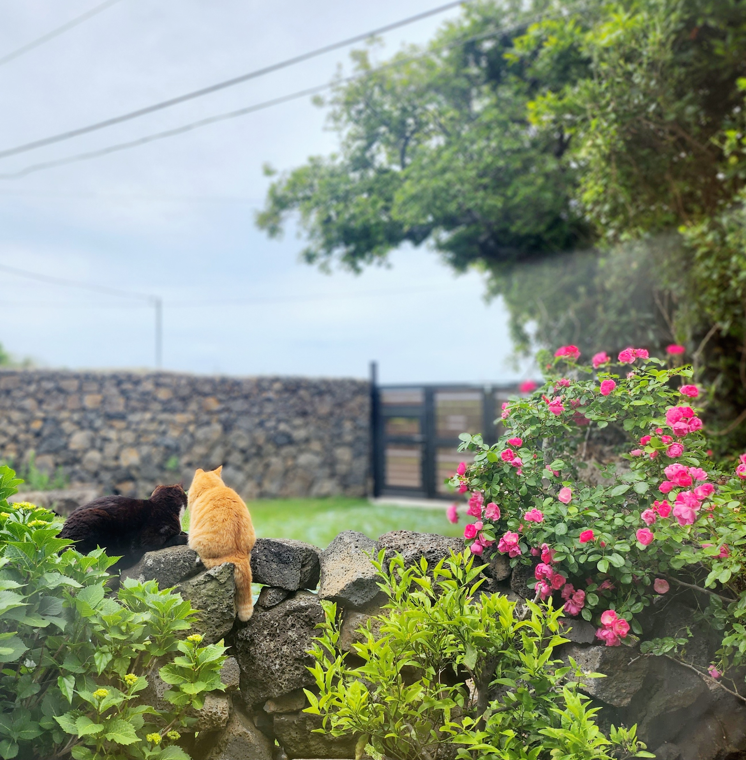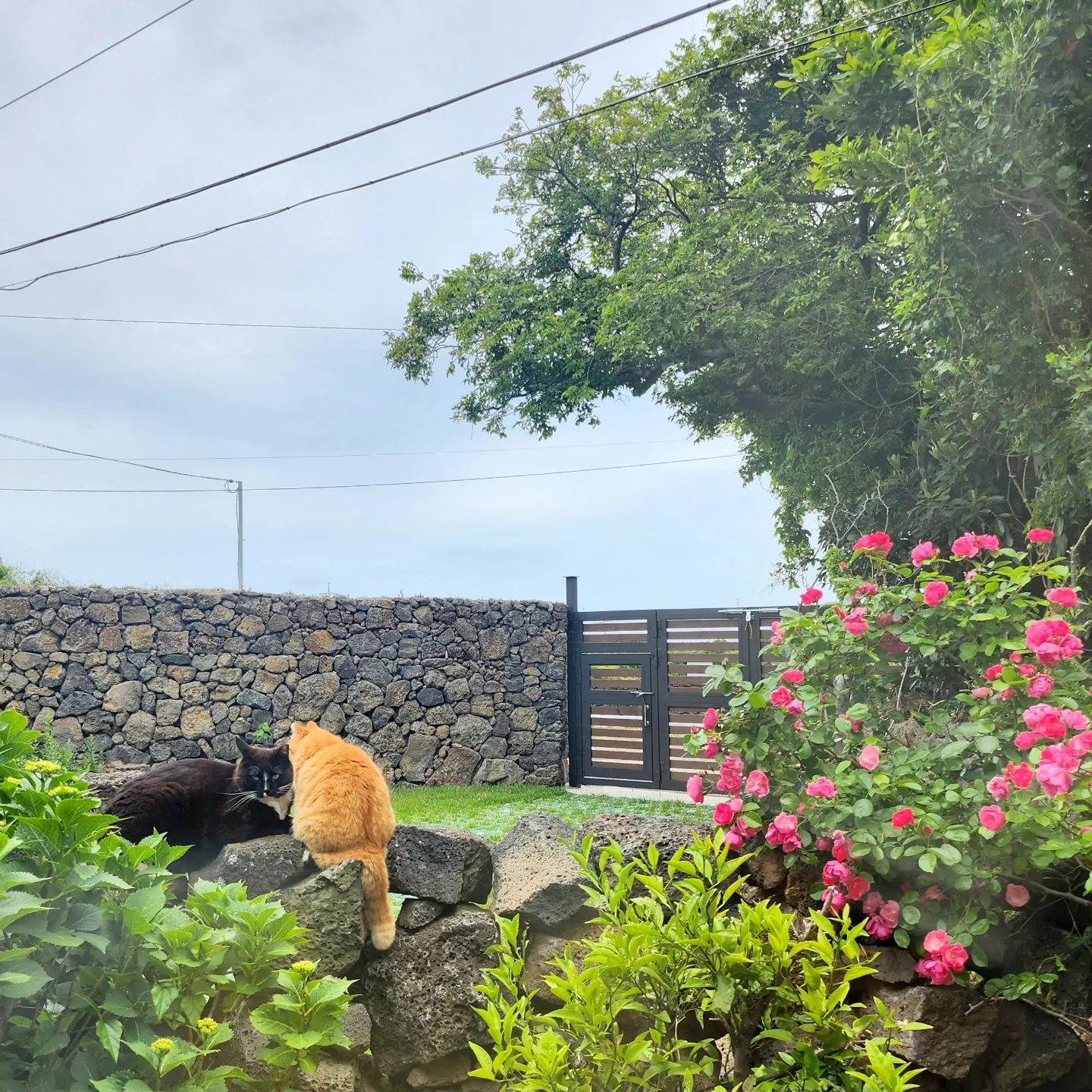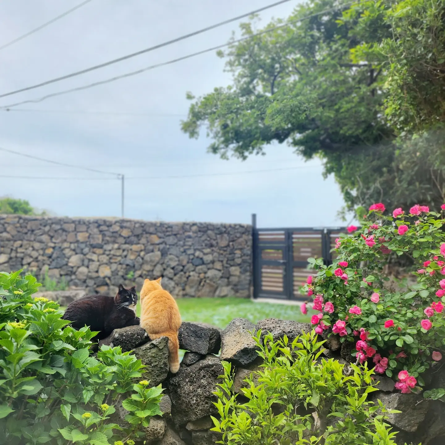 예쁜 5월의 장미꽃만큼이나 아름다운 고양이들도 돌담에서 느긋하게 잠을 청하는데,