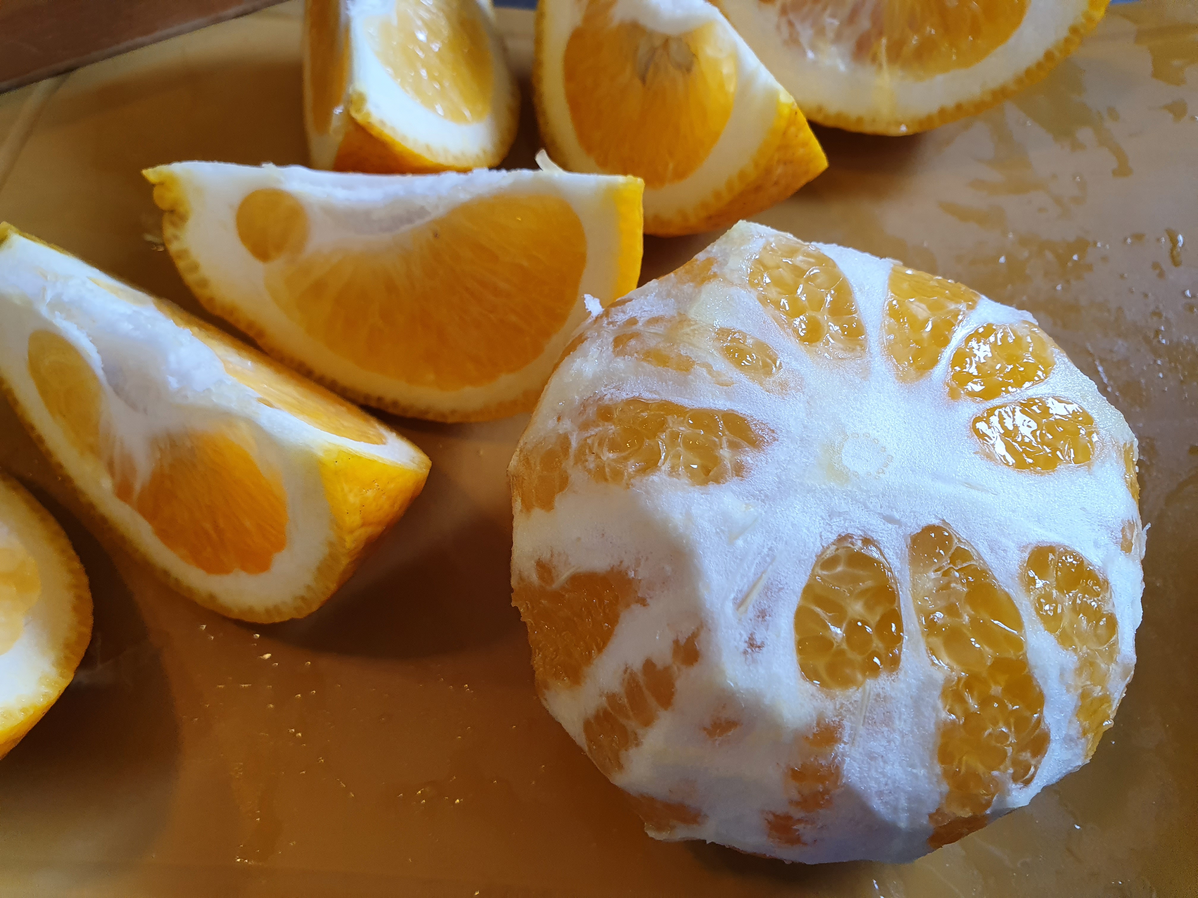 겉 껍질을 오렌지 손질하듯이 벗겨낸 후
