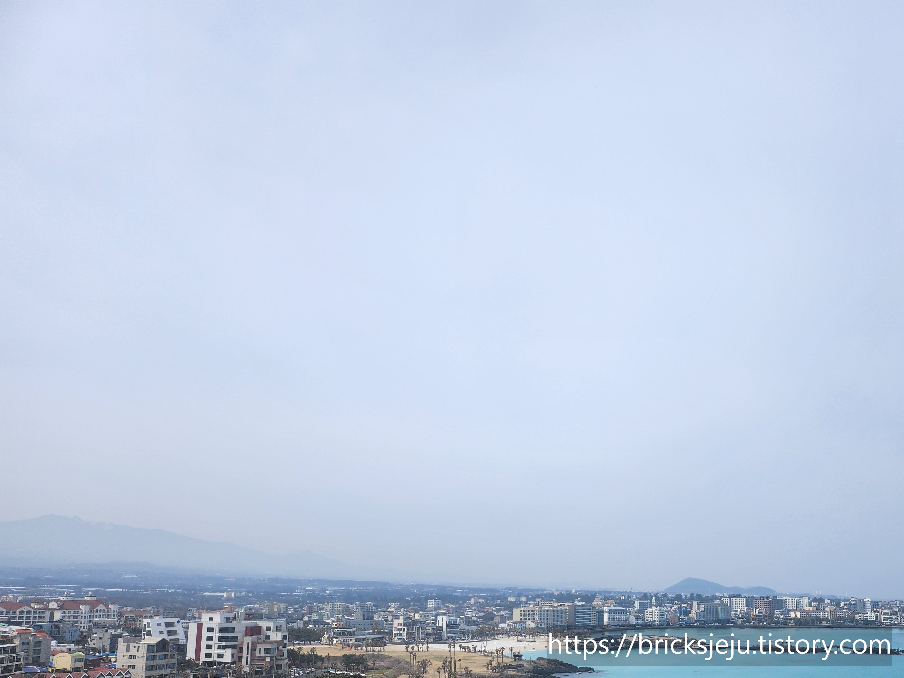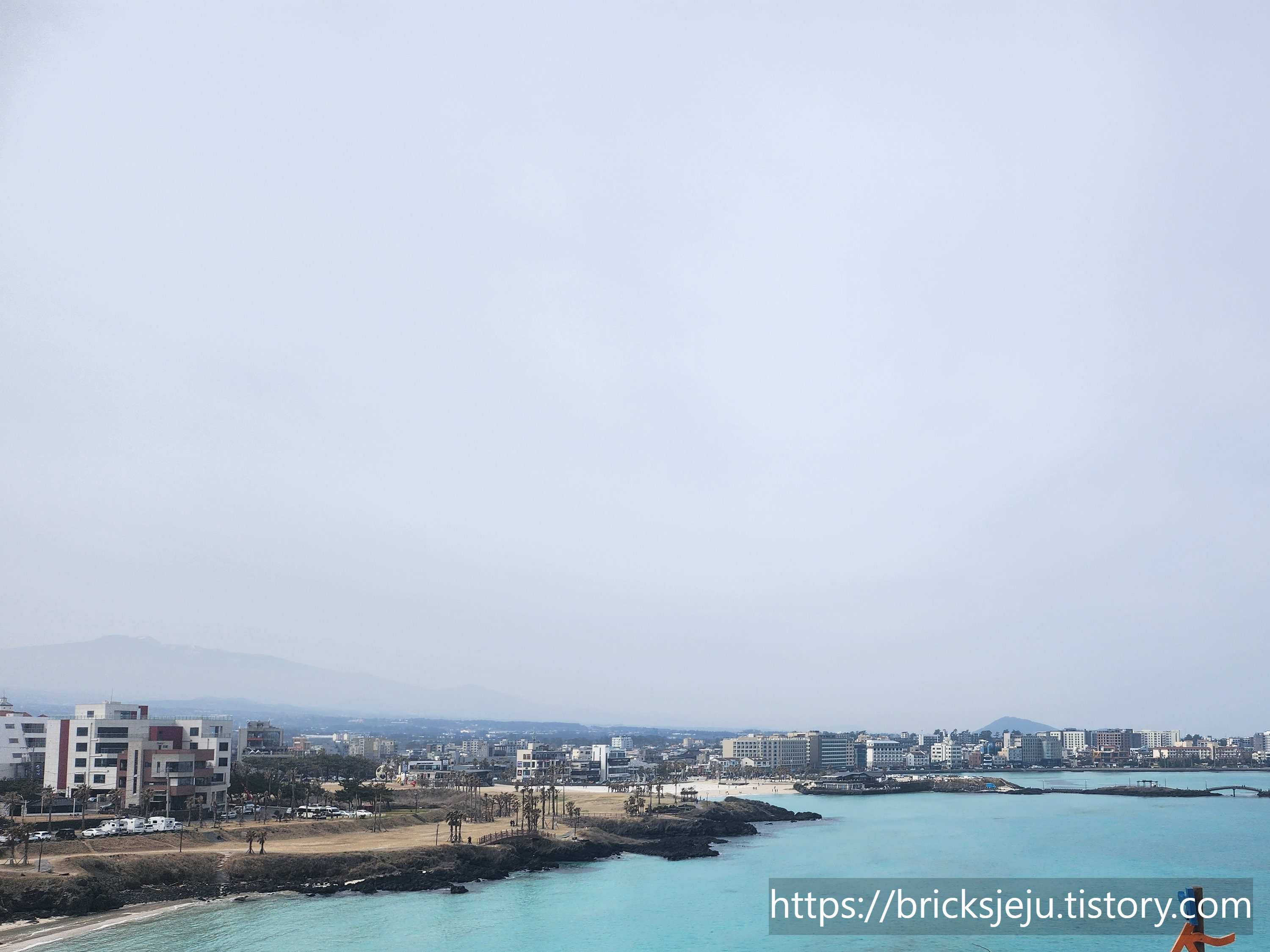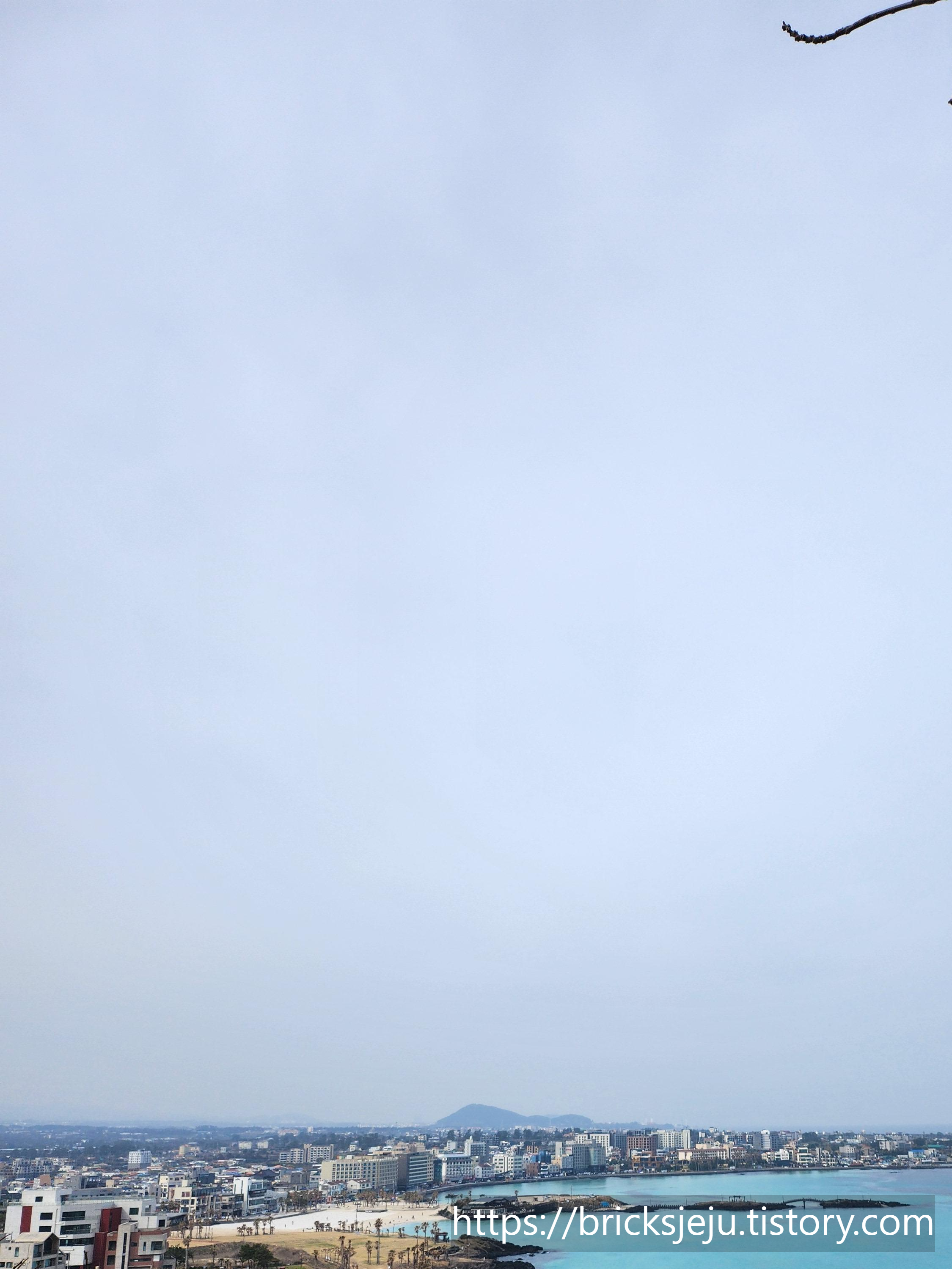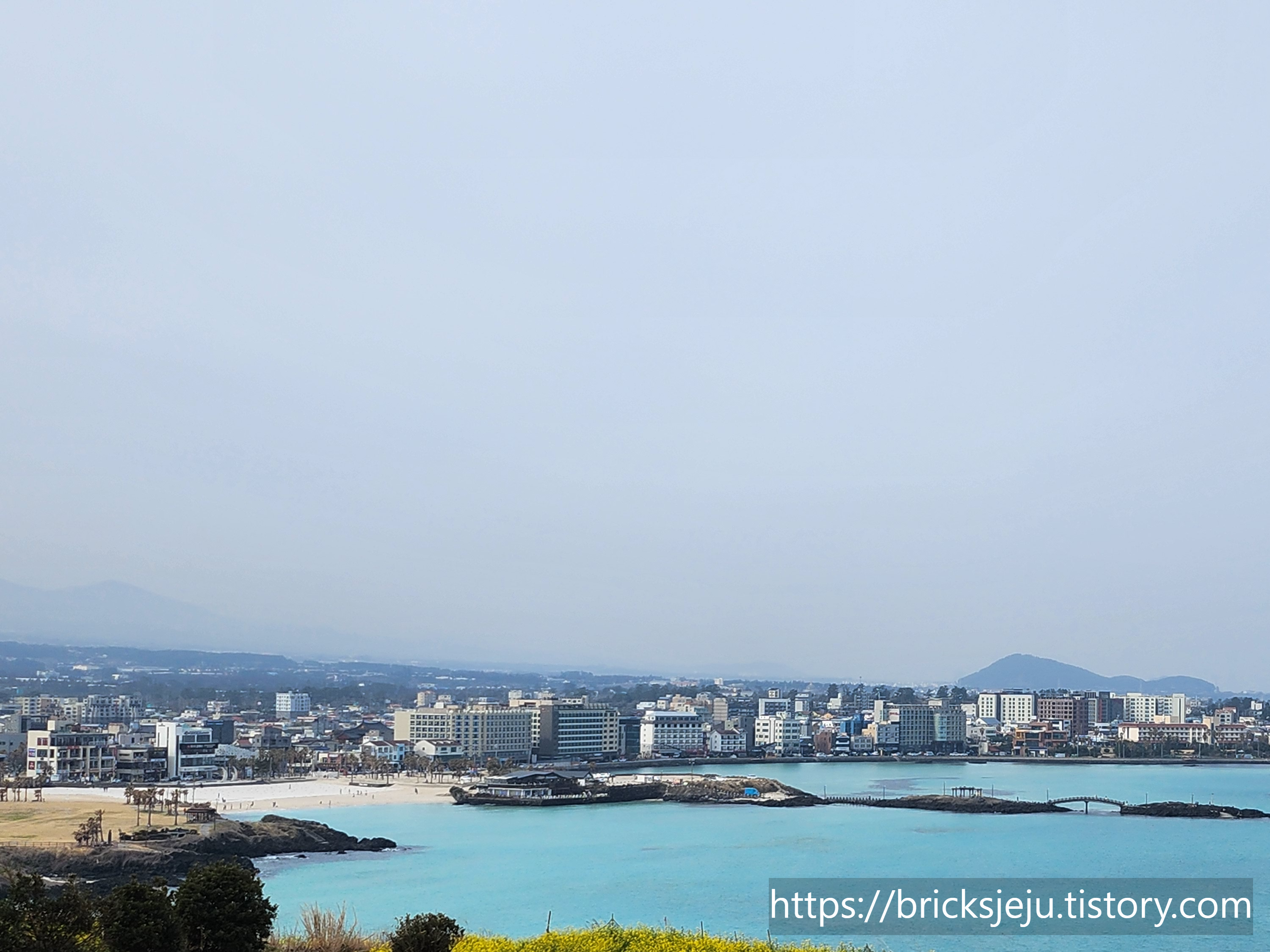 왼편에 멀리 한라산과 에메럴드빛 함덕해수욕장의 물빛까지, 아무것도 안하고 풍경만 바라보고 있어도 힐링되고 마음이 편안해지는 것 같습니다.