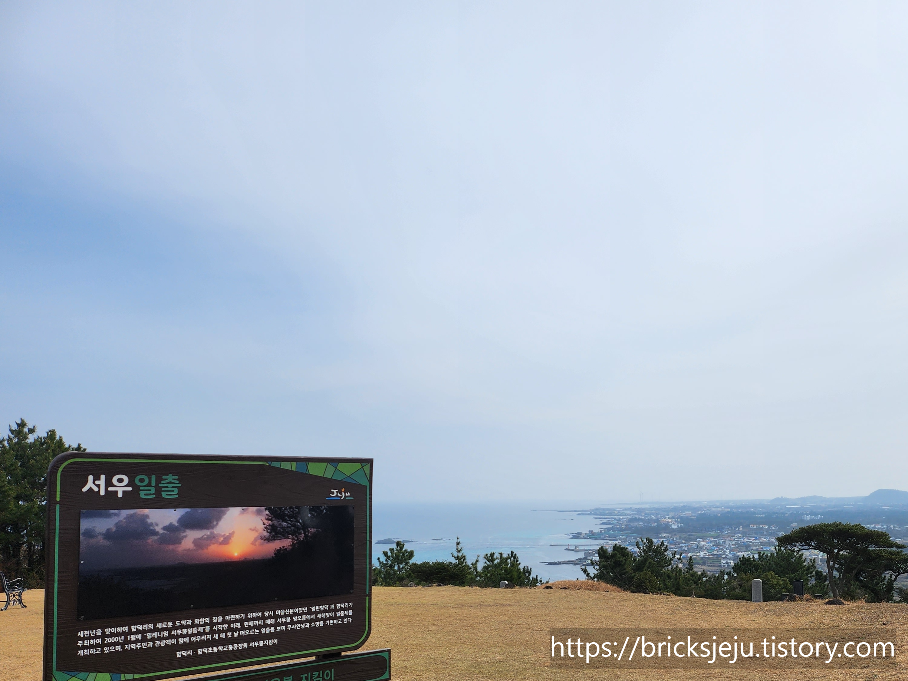함덕 서우봉은 일출 포인트이기도 해서 새해에는 이곳에서 일출을 보려는 사람들이 모여들기도 합니다. 이곳에서는 제주도의 동쪽을 볼 수 있는데요 벤치도 있으니 잠깐 땀을 식히며 쉬어가기에도 좋습니다.