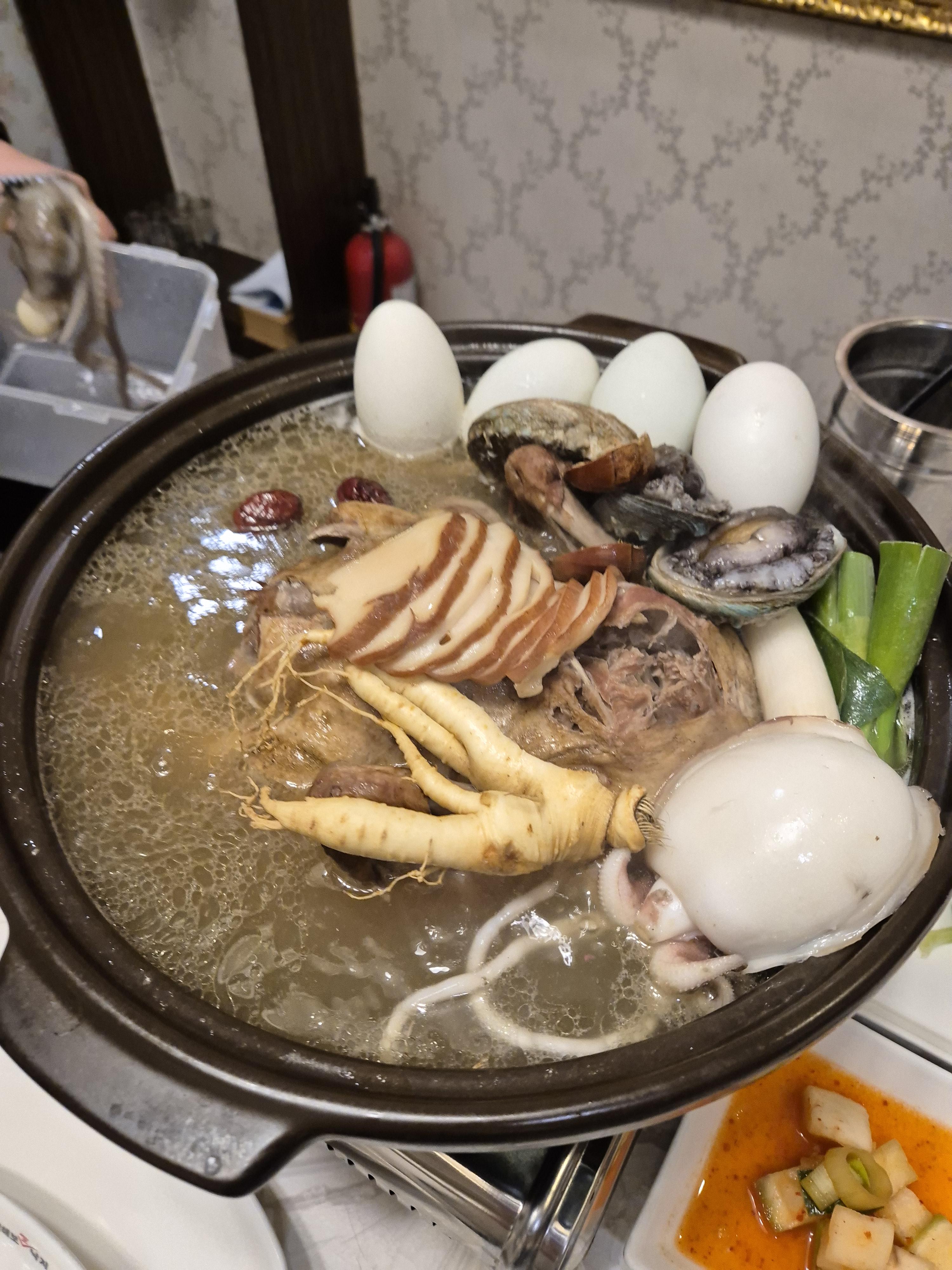 커다란 인삼과 전복 보이시나요?!! 푸욱 고아서 부드럽게 발리는 오리고기와 진한 국물까지 기력 회복이 한방에 될 것 같은 맛이었습니다.